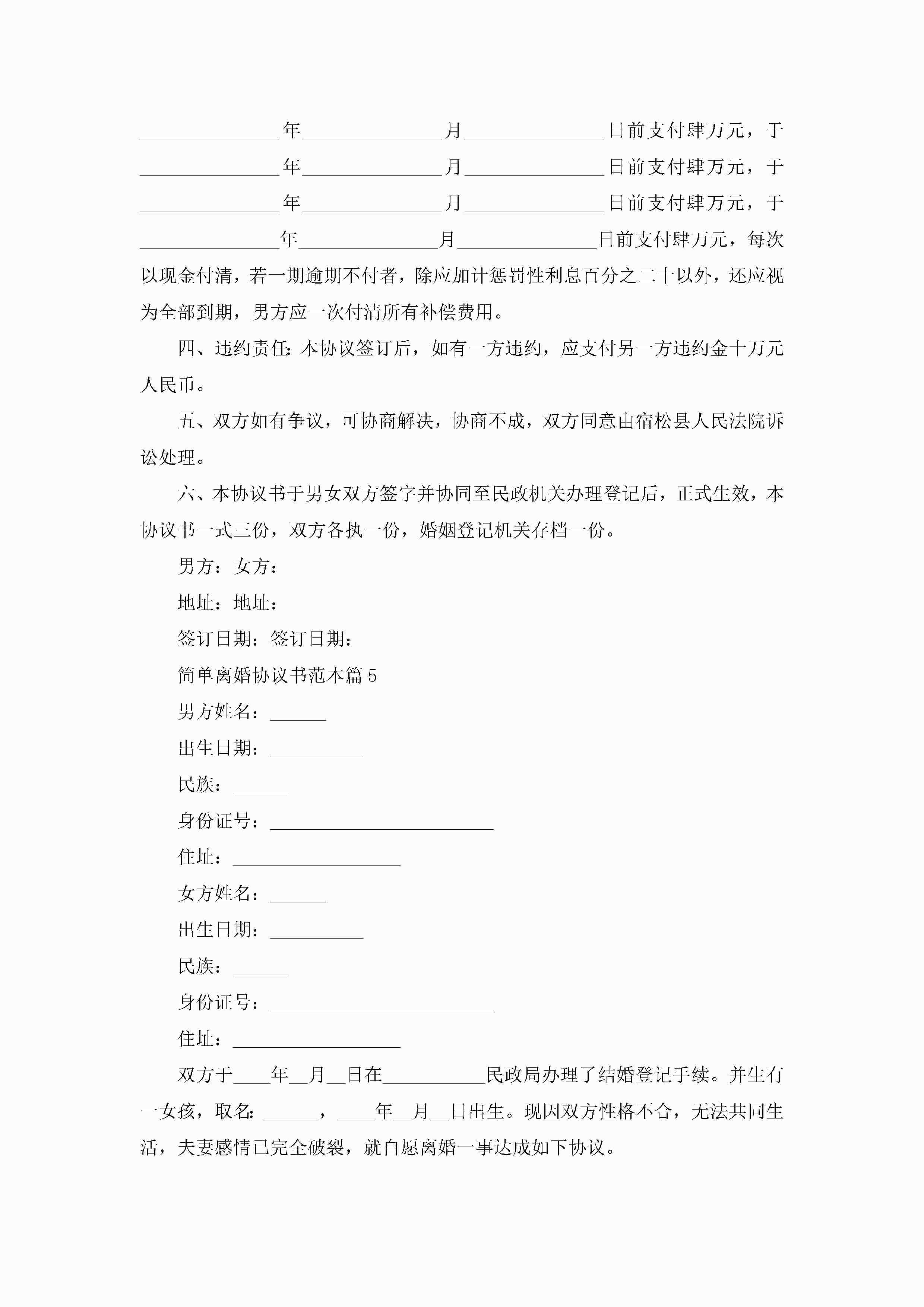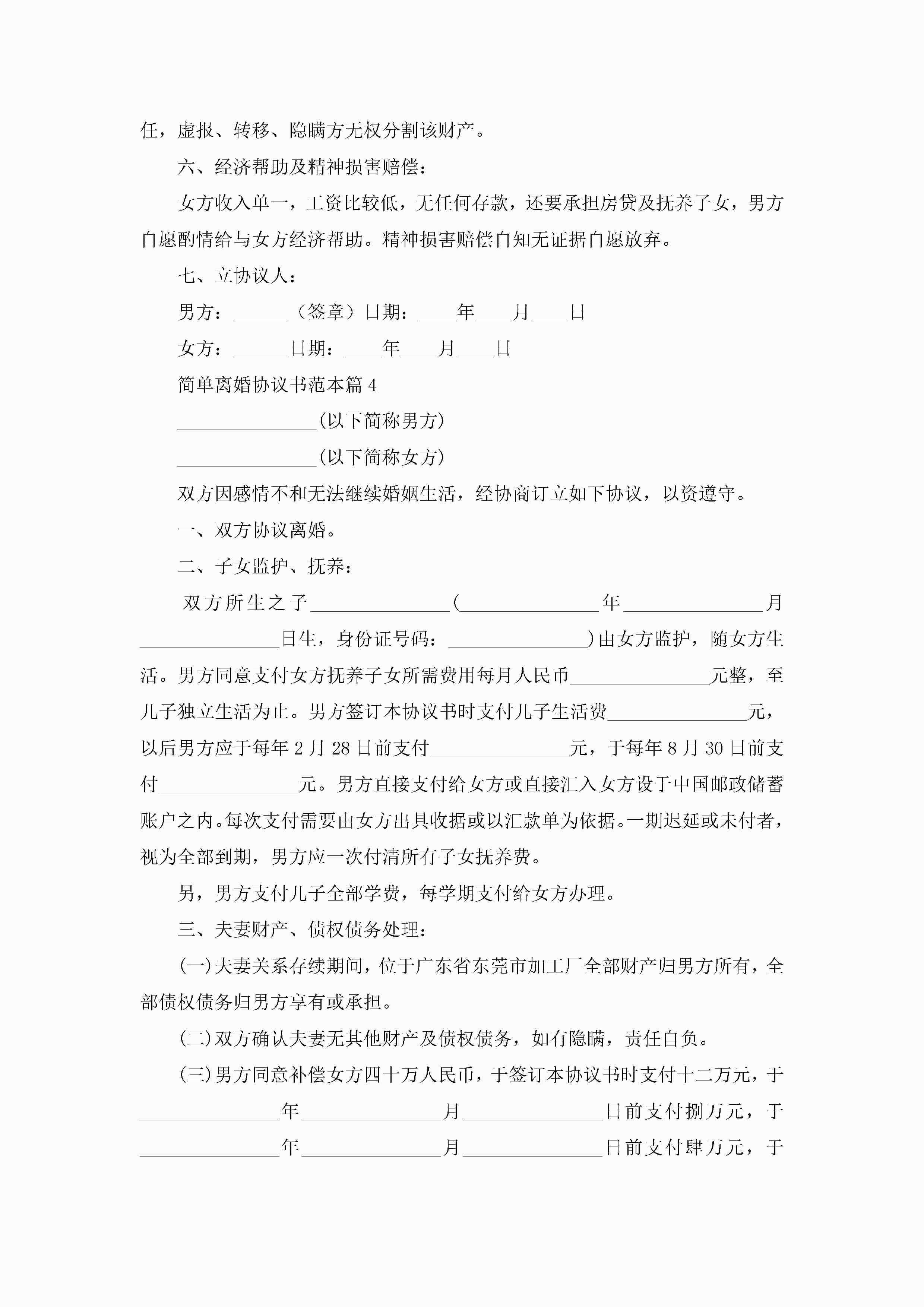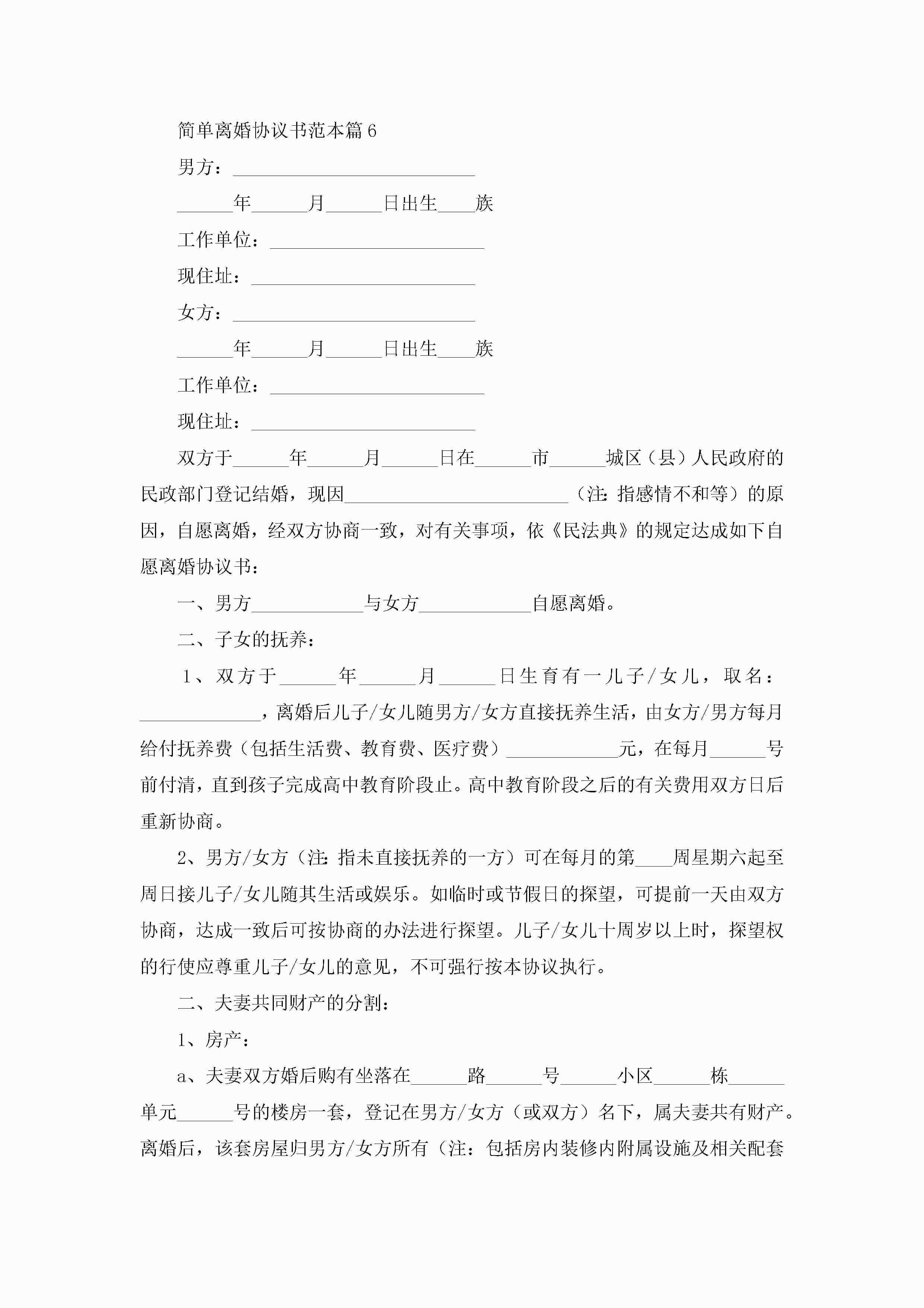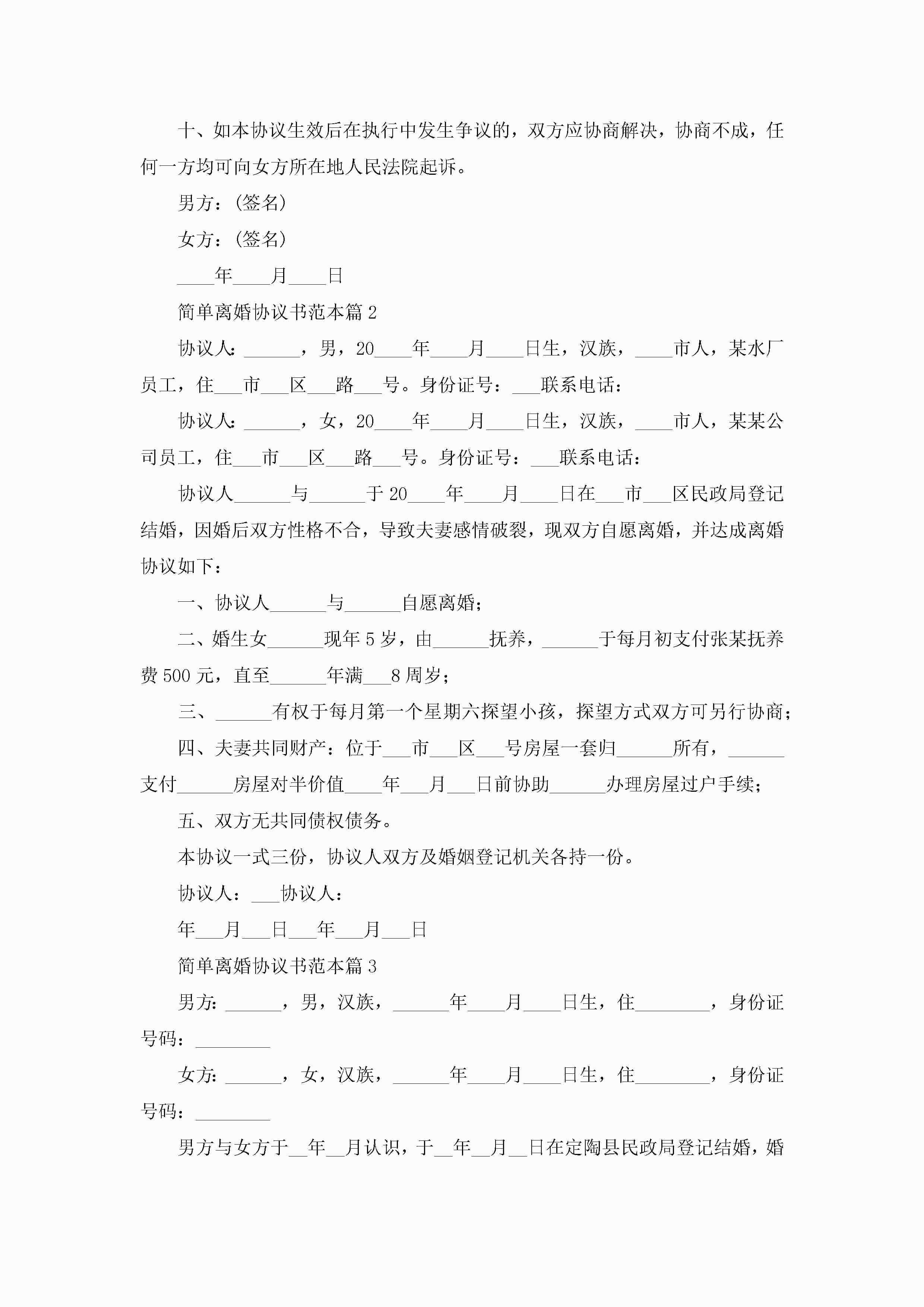 简单离婚协议书范本(14篇)jugei3月22日 12:38更新关注208 简单离婚协议书范本(14篇)此内容为付费资源,请付费后查看¥10.9 单篇文档限时特惠¥15个人会员开通企业会员开通立即下载无需登陆!可直接快捷下载单个模板付费资源© 版权声明THE ENDWord模板# 实用文档# 实用模板# 信函模板# 协议书 如有问题,可点击最底部“联系我们”联系客服 分享QQ空间微博QQ好友海报分享复制链接收藏