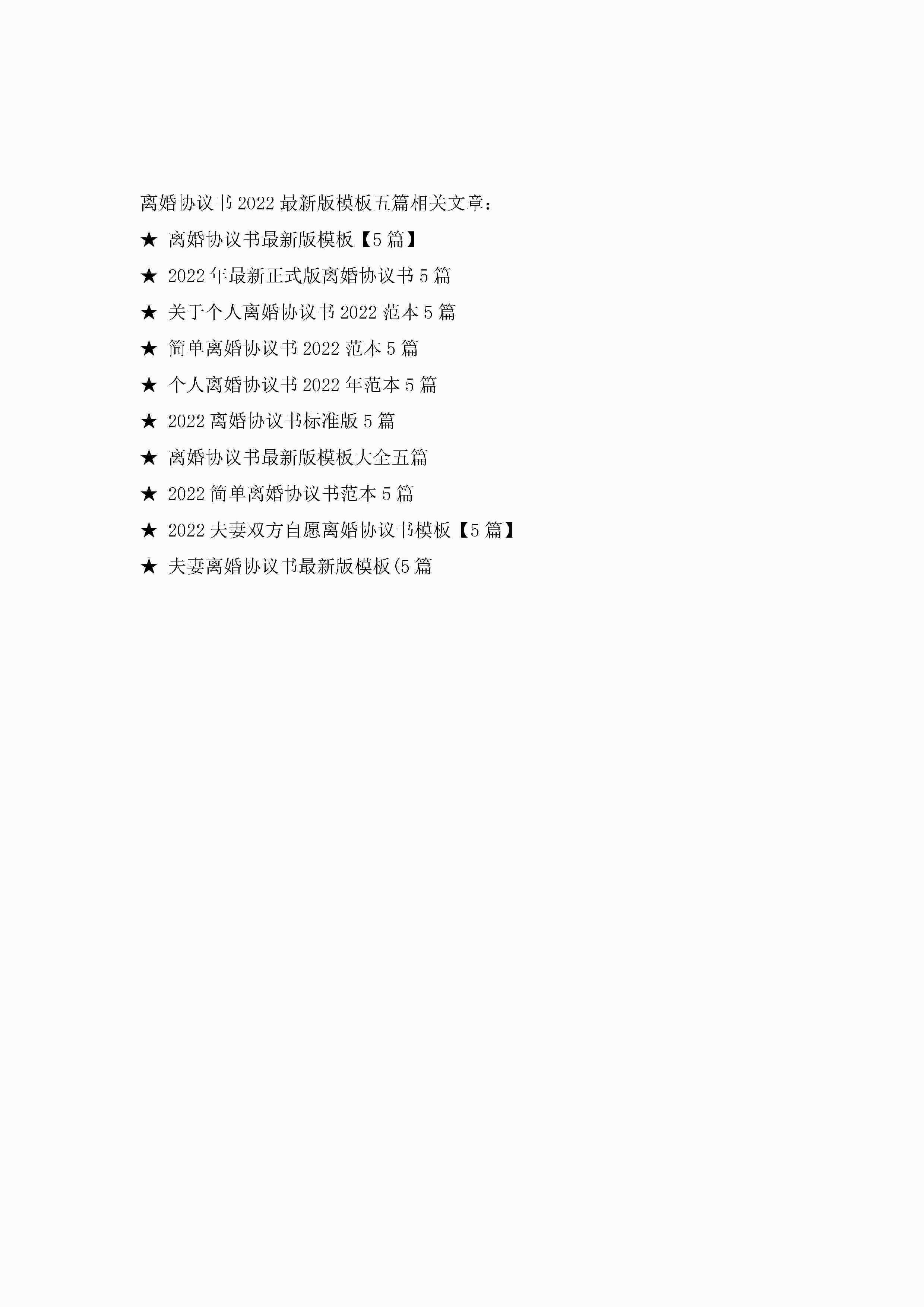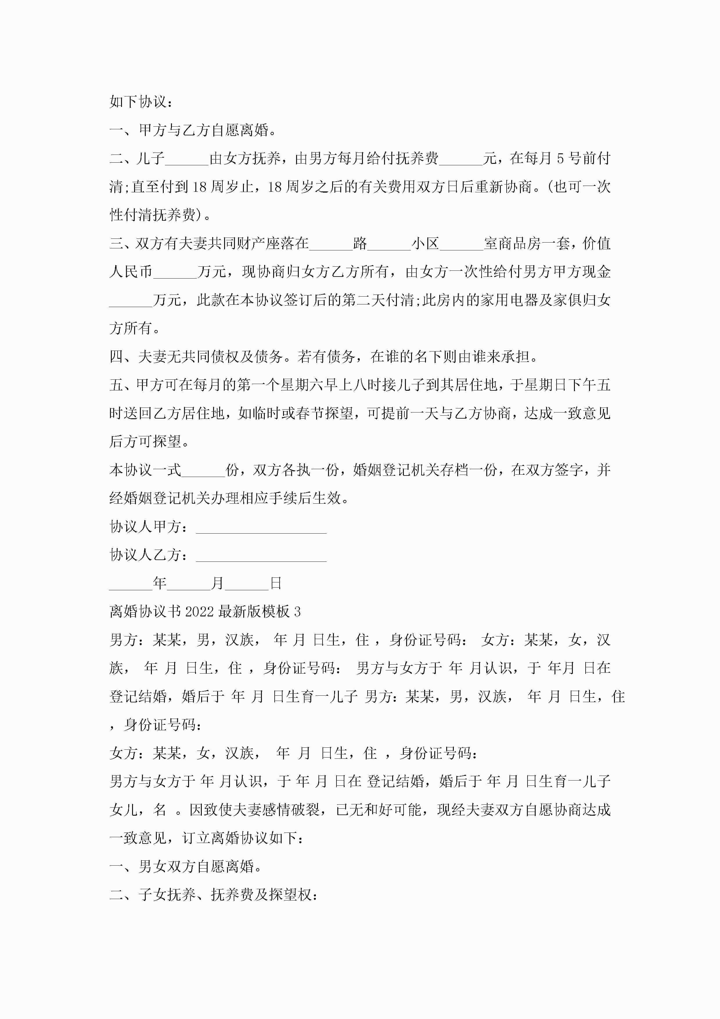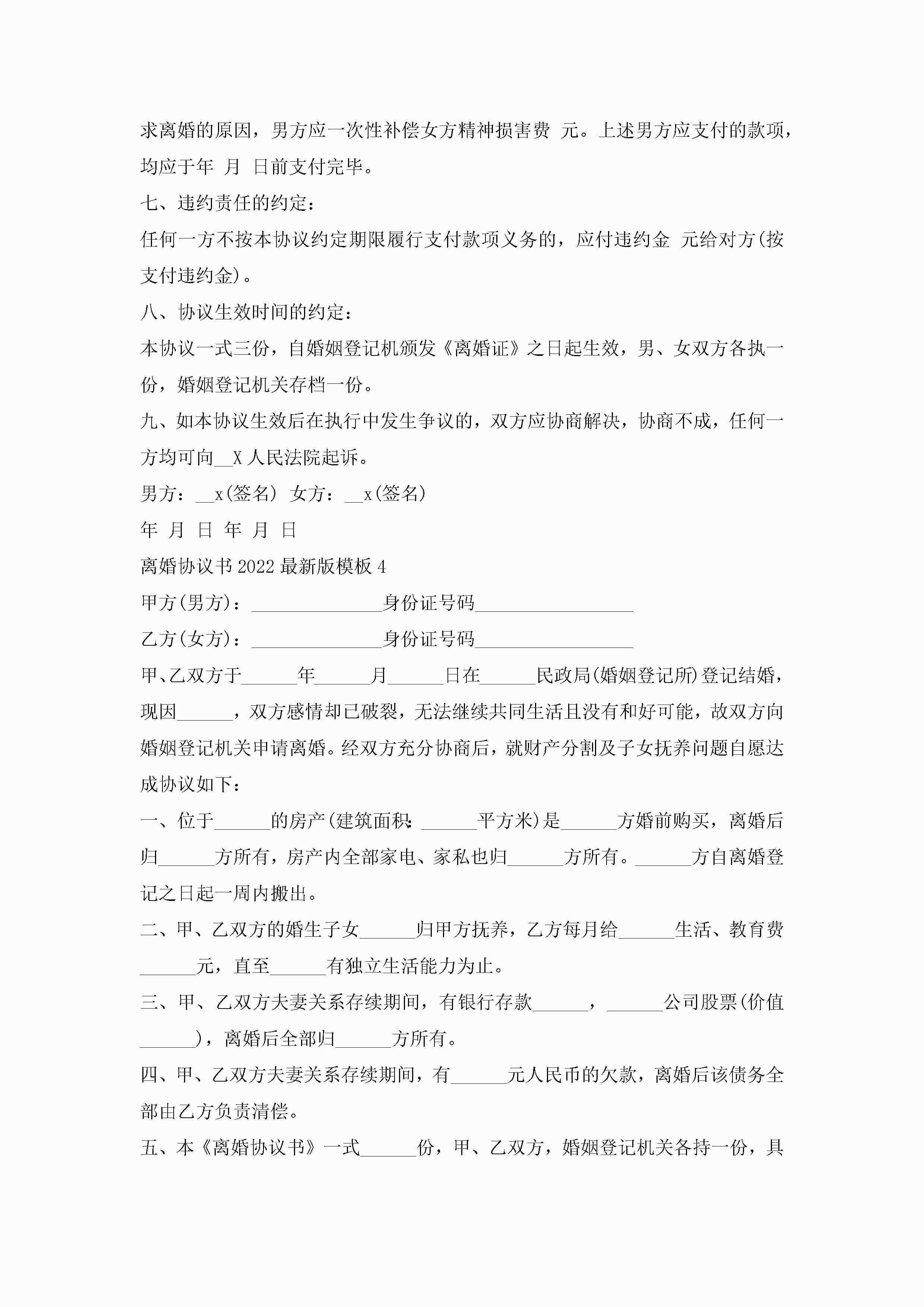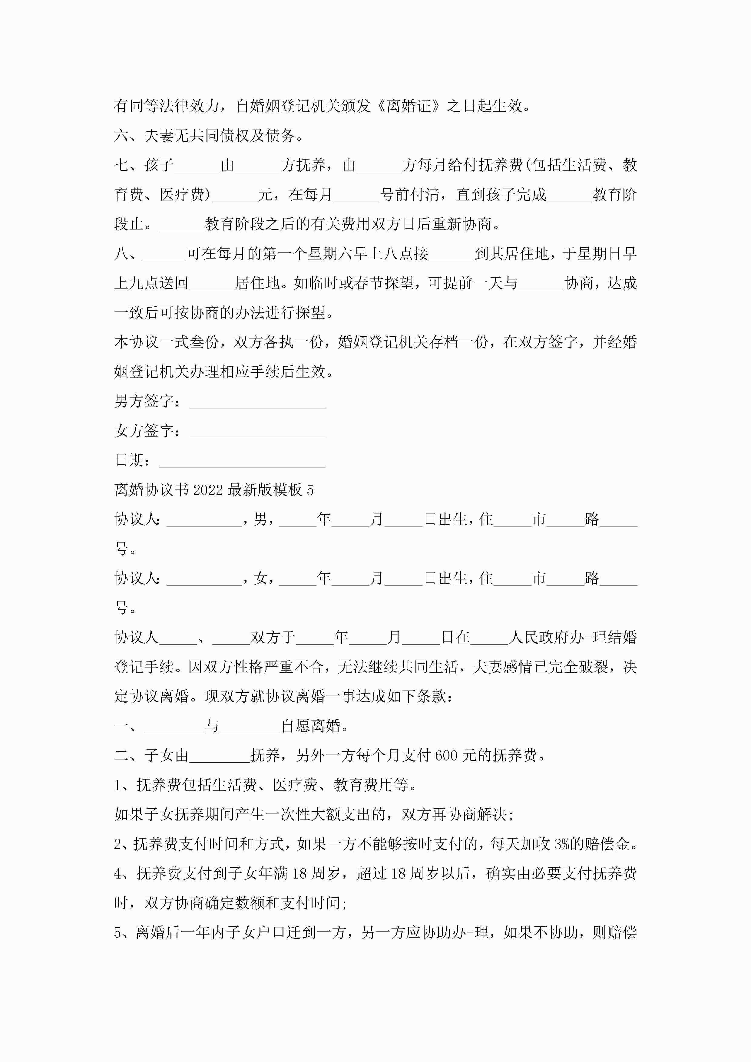 离婚协议书2022最新版模板大全五篇jugei3月22日 12:38更新关注201 离婚协议书2022最新版模板大全五篇此内容为付费资源,请付费后查看¥10.9 单篇文档限时特惠¥15个人会员开通企业会员开通立即下载无需登陆!可直接快捷下载单个模板付费资源© 版权声明THE ENDWord模板# 实用文档# 实用模板# 信函模板# 协议书 如有问题,可点击最底部“联系我们”联系客服 分享QQ空间微博QQ好友海报分享复制链接收藏