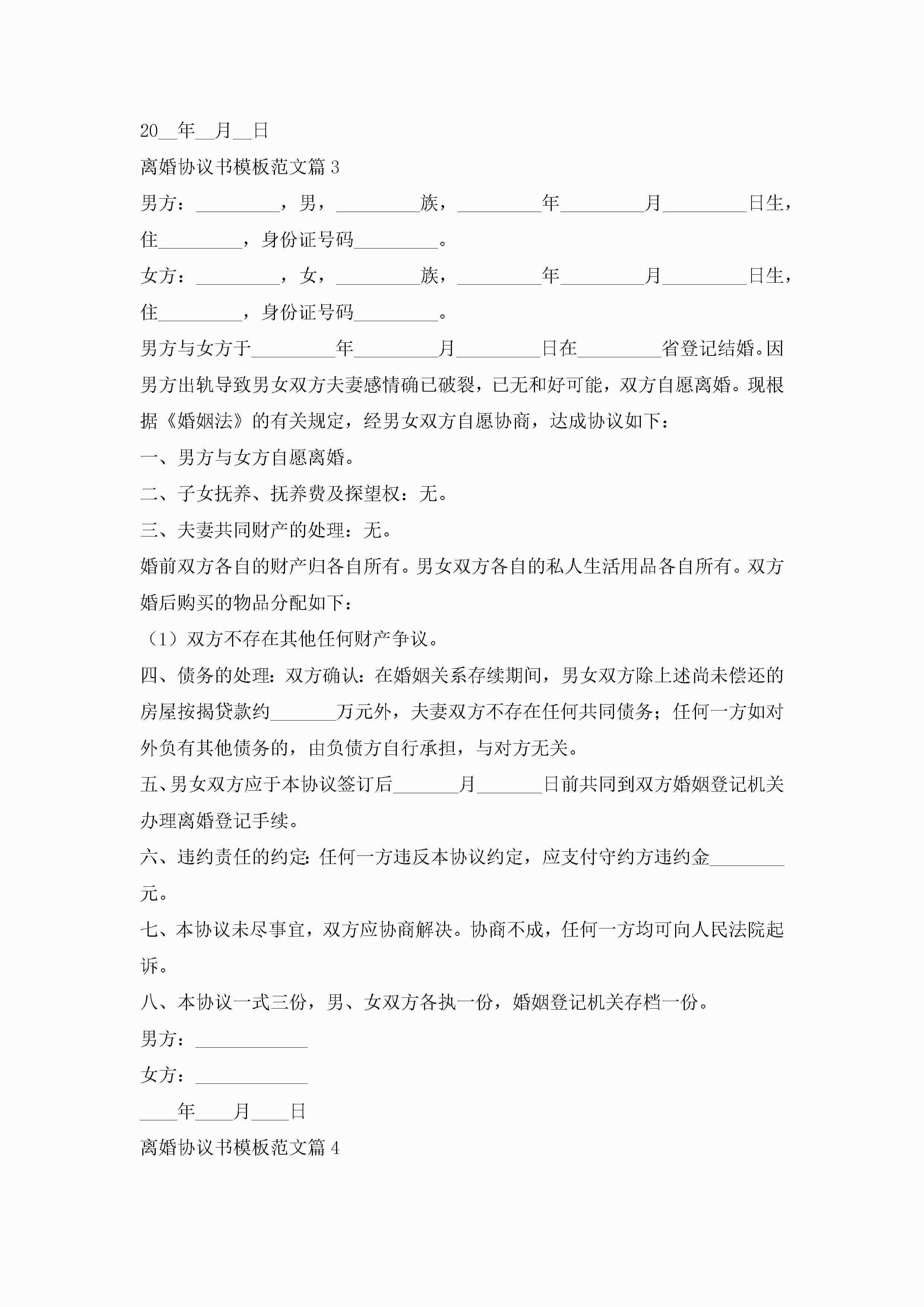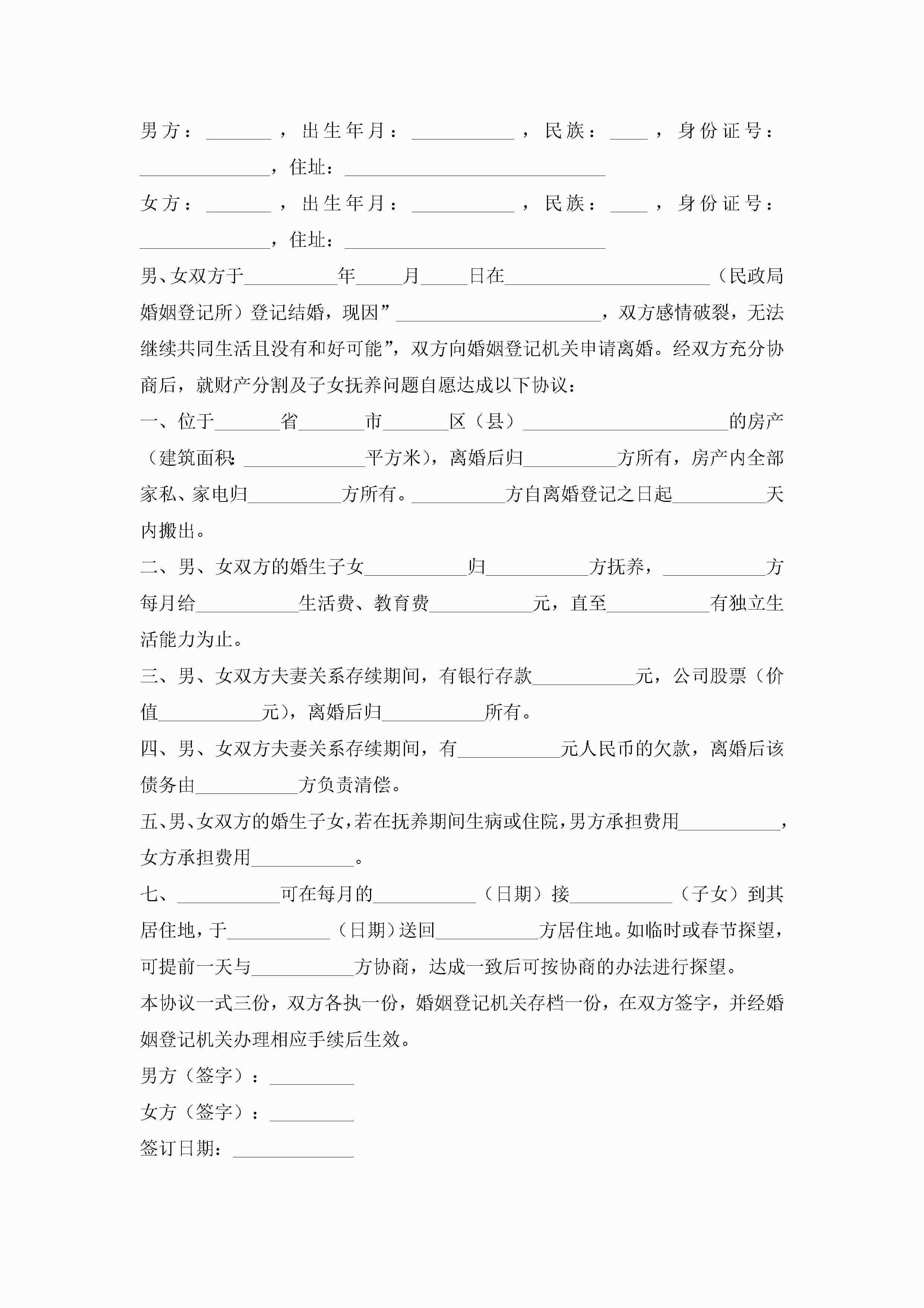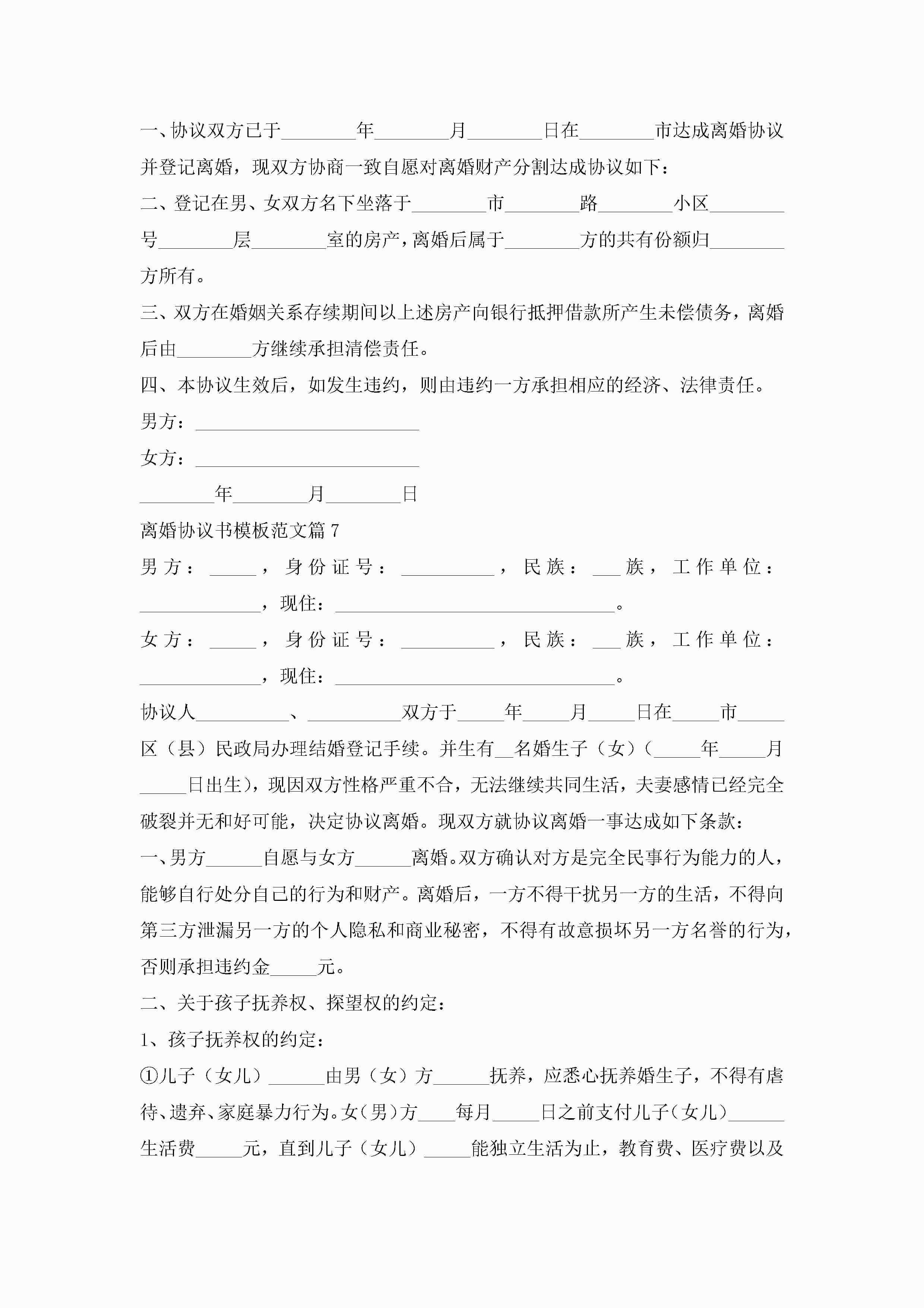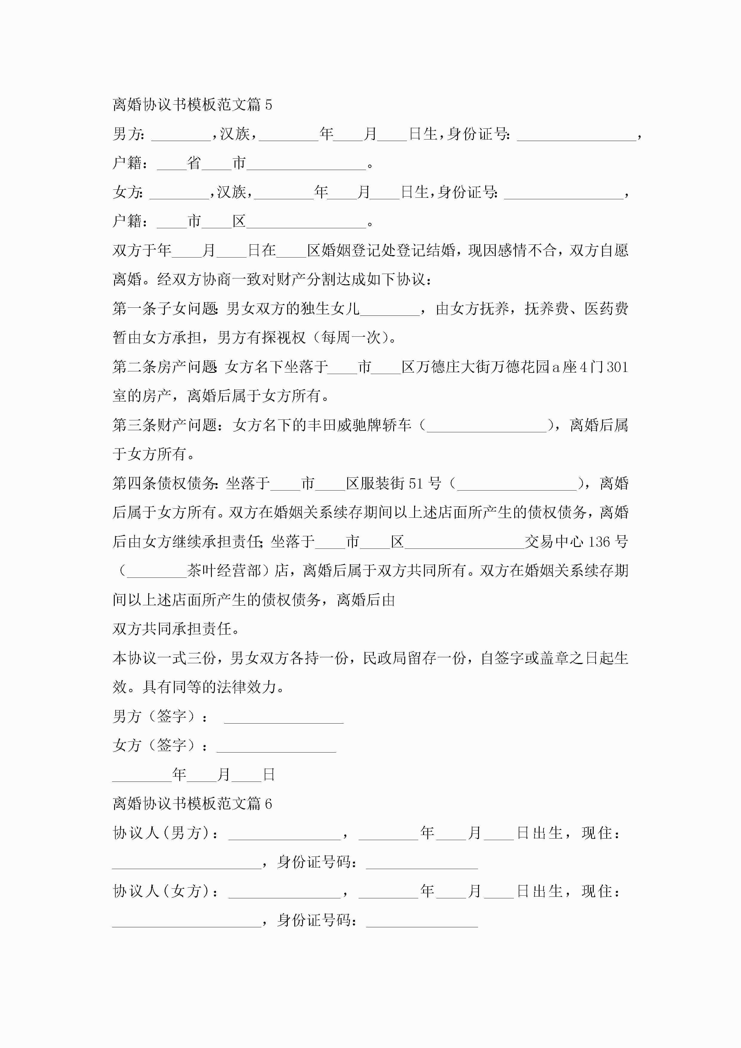 离婚协议书模板范文2023(七篇)jugei3月22日 12:38更新关注213 离婚协议书模板范文2023(七篇)此内容为付费资源,请付费后查看¥10.9 单篇文档限时特惠¥15个人会员开通企业会员开通立即下载无需登陆!可直接快捷下载单个模板付费资源© 版权声明THE ENDWord模板# 实用文档# 实用模板# 信函模板# 协议书# 离婚协议书模板范文 如有问题,可点击最底部“联系我们”联系客服 分享QQ空间微博QQ好友海报分享复制链接收藏