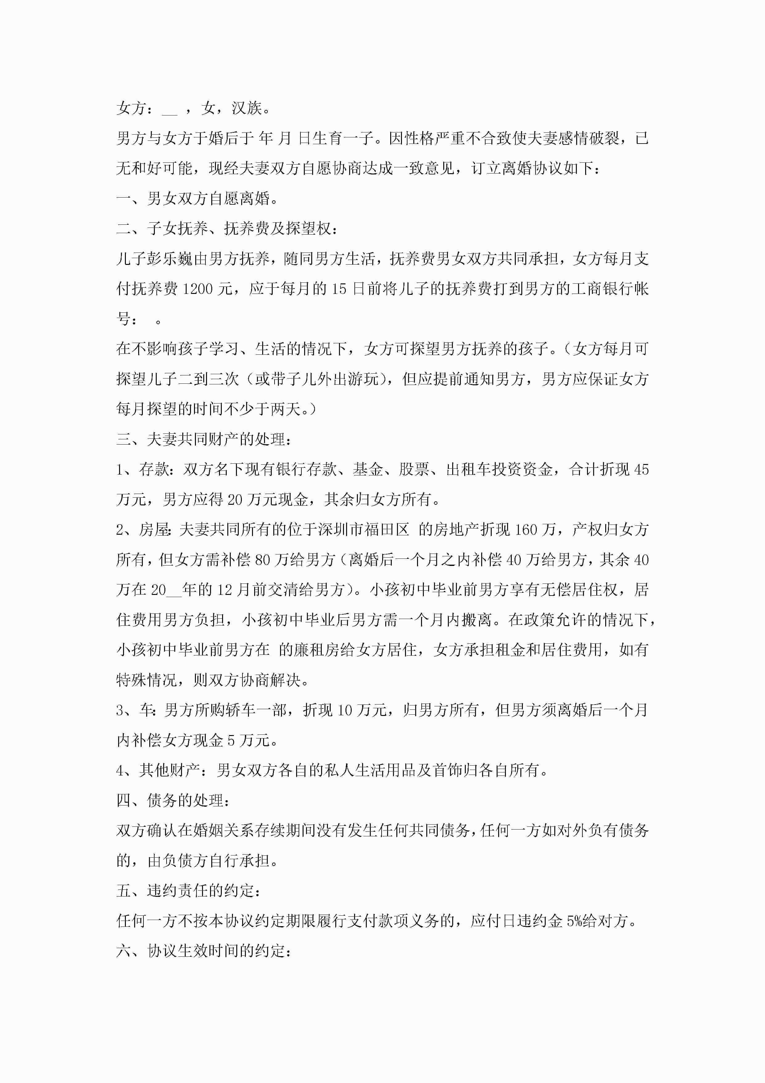 双方离婚协议书模板5篇jugei3月22日 12:38更新关注222 双方离婚协议书模板5篇此内容为付费资源,请付费后查看¥10.9 单篇文档限时特惠¥15个人会员开通企业会员开通立即下载无需登陆!可直接快捷下载单个模板付费资源© 版权声明THE ENDWord模板# 实用文档# 实用模板# 信函模板# 协议书# 双方离婚协议书模板 如有问题,可点击最底部“联系我们”联系客服 分享QQ空间微博QQ好友海报分享复制链接收藏