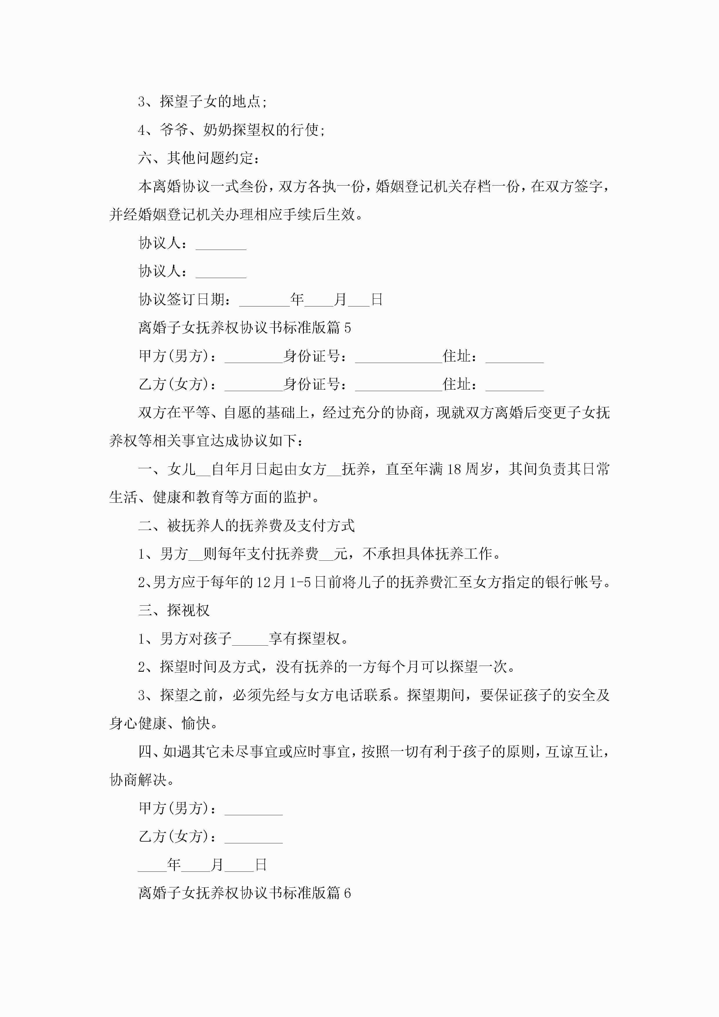 离婚子女抚养权协议书标准版(7篇)jugei3月22日 12:38更新关注267 离婚子女抚养权协议书标准版(7篇)此内容为付费资源,请付费后查看¥10.9 单篇文档限时特惠¥15个人会员开通企业会员开通立即下载无需登陆!可直接快捷下载单个模板付费资源© 版权声明THE ENDWord模板# 实用文档# 信函模板# 协议书# 离婚子女抚养权协议书标准版 如有问题,可点击最底部“联系我们”联系客服 分享QQ空间微博QQ好友海报分享复制链接收藏