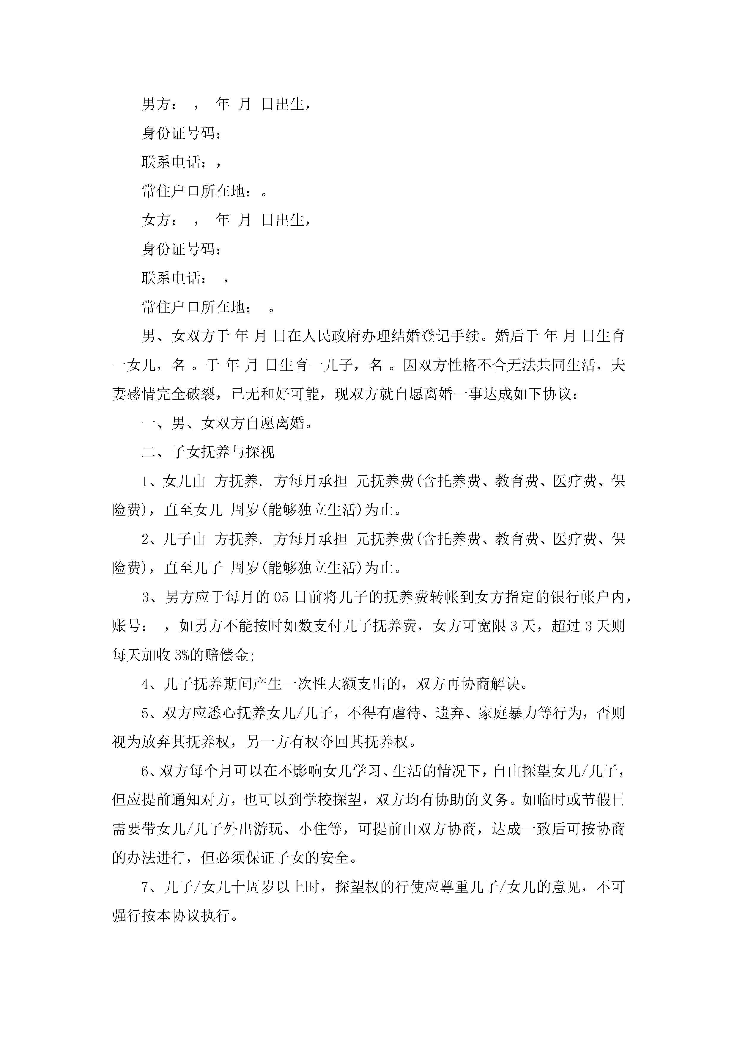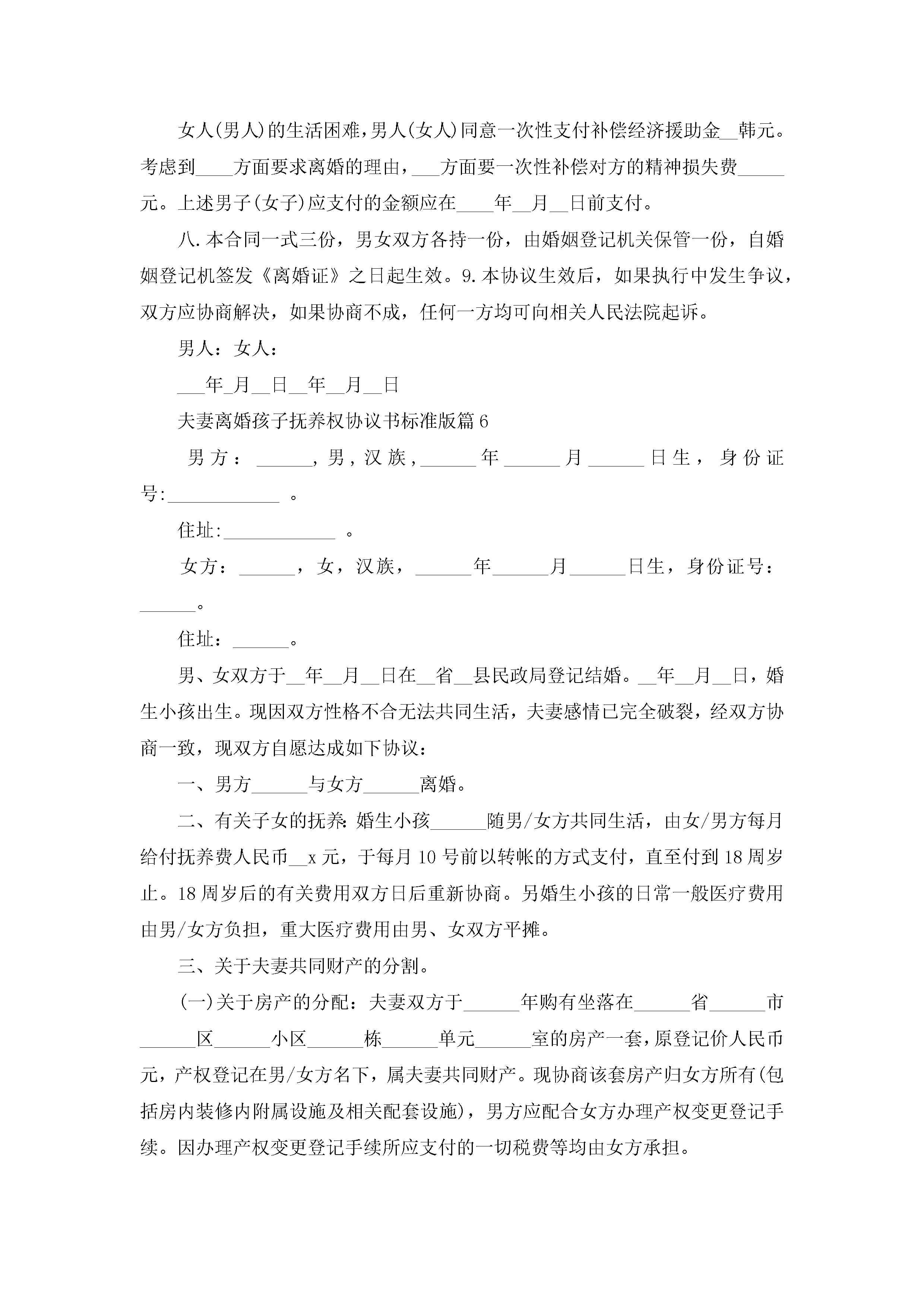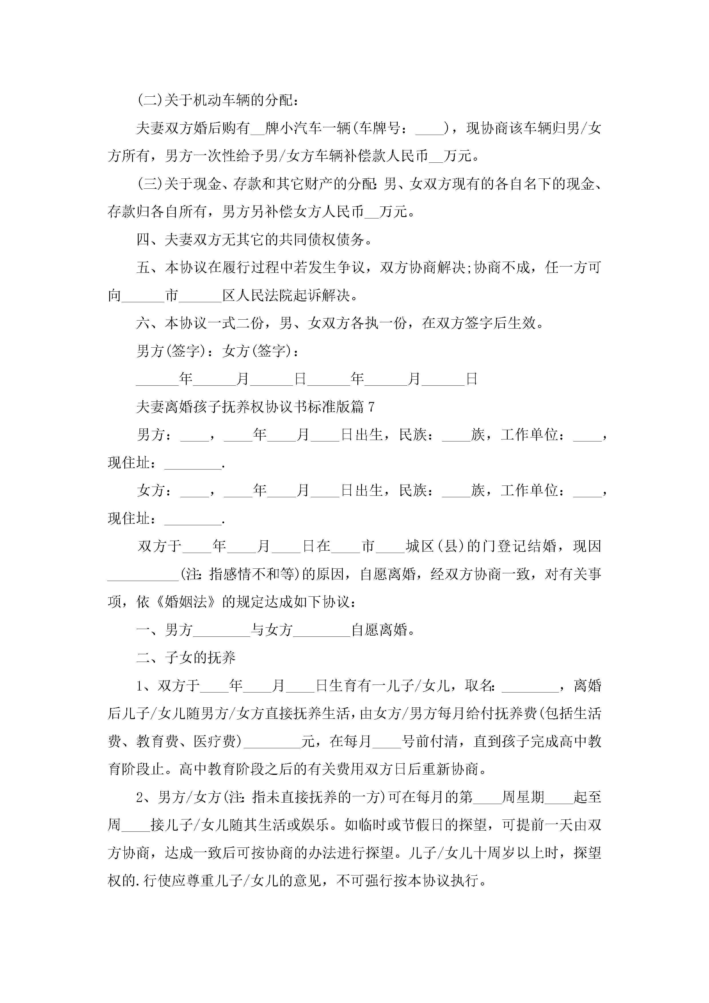关于夫妻离婚孩子抚养权协议书标准版(10篇)jugei3月22日 12:38更新关注231 关于夫妻离婚孩子抚养权协议书标准版(10篇)此内容为付费资源,请付费后查看¥10.9 单篇文档限时特惠¥15个人会员开通企业会员开通立即下载无需登陆!可直接快捷下载单个模板付费资源© 版权声明THE ENDWord模板# 实用文档# 信函模板# 协议书# 夫妻离婚孩子抚养权协议书标准版(10篇) 如有问题,可点击最底部“联系我们”联系客服 分享QQ空间微博QQ好友海报分享复制链接收藏