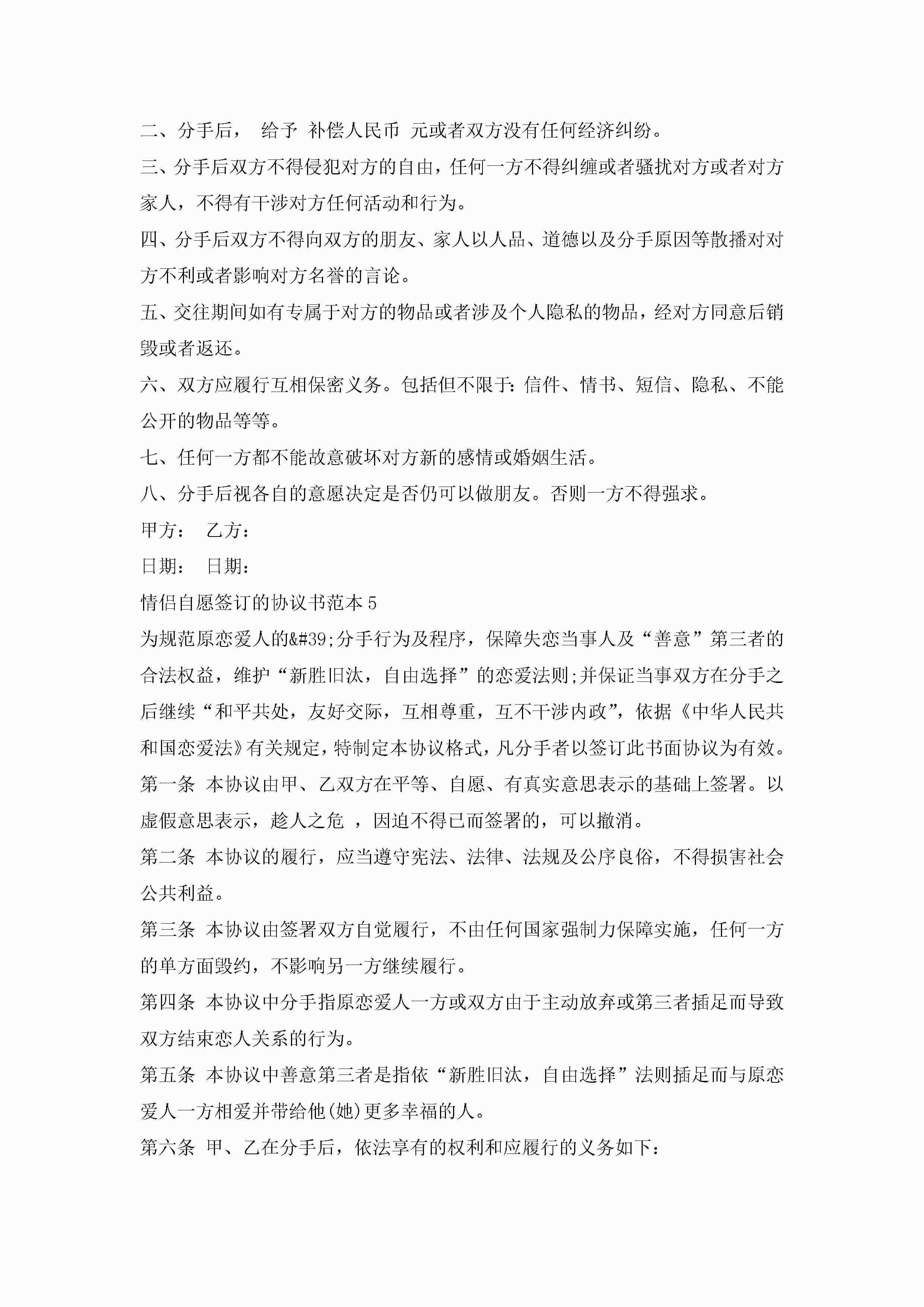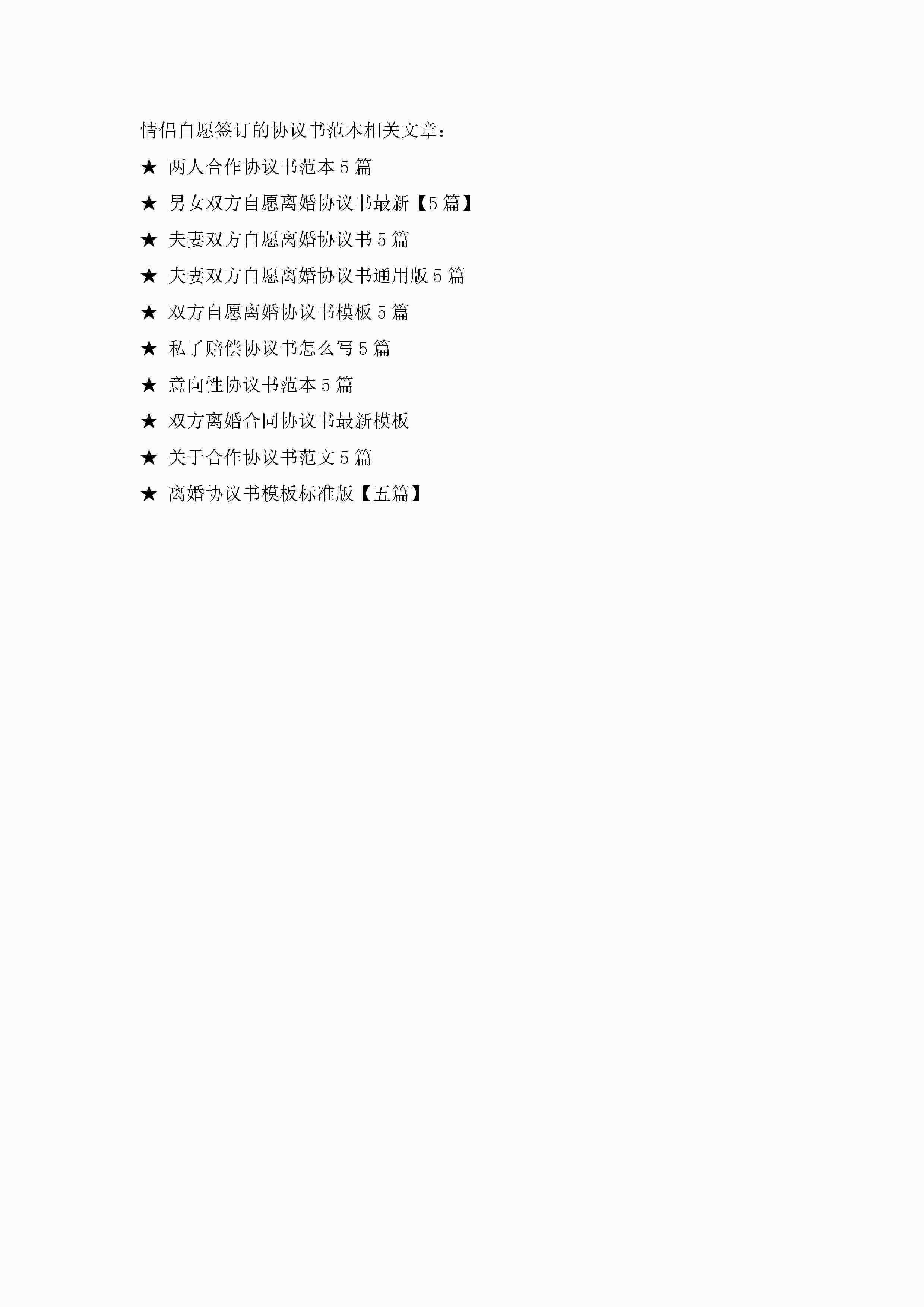 情侣自愿签订的协议书范本5篇jugei3月22日 12:38更新关注253 情侣自愿签订的协议书范本5篇此内容为付费资源,请付费后查看¥10.9 单篇文档限时特惠¥15个人会员开通企业会员开通立即下载无需登陆!可直接快捷下载单个模板付费资源© 版权声明THE ENDWord模板# 实用文档# 实用模板# 信函模板# 协议书 如有问题,可点击最底部“联系我们”联系客服 分享QQ空间微博QQ好友海报分享复制链接收藏