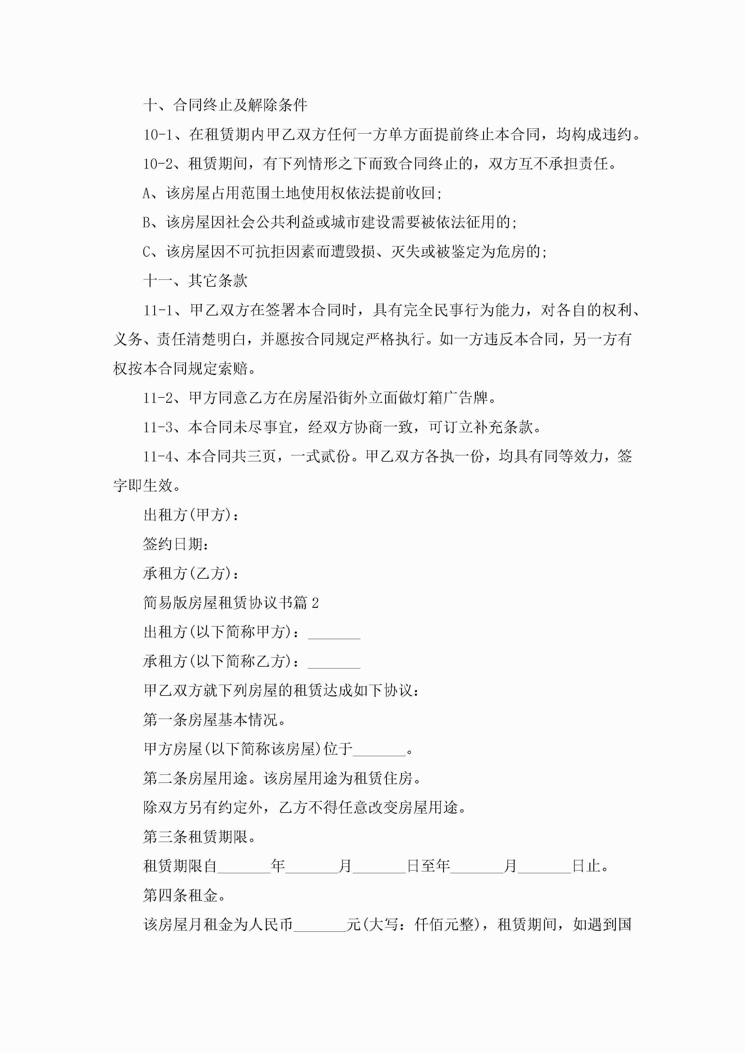 简易版房屋租赁协议书5篇jugei3月22日 12:38更新关注266 简易版房屋租赁协议书5篇此内容为付费资源,请付费后查看¥10.9 单篇文档限时特惠¥15个人会员开通企业会员开通立即下载无需登陆!可直接快捷下载单个模板付费资源© 版权声明THE ENDWord模板# 实用文档# 信函模板# 协议书# 简易版房屋租赁协议书 如有问题,可点击最底部“联系我们”联系客服 分享QQ空间微博QQ好友海报分享复制链接收藏