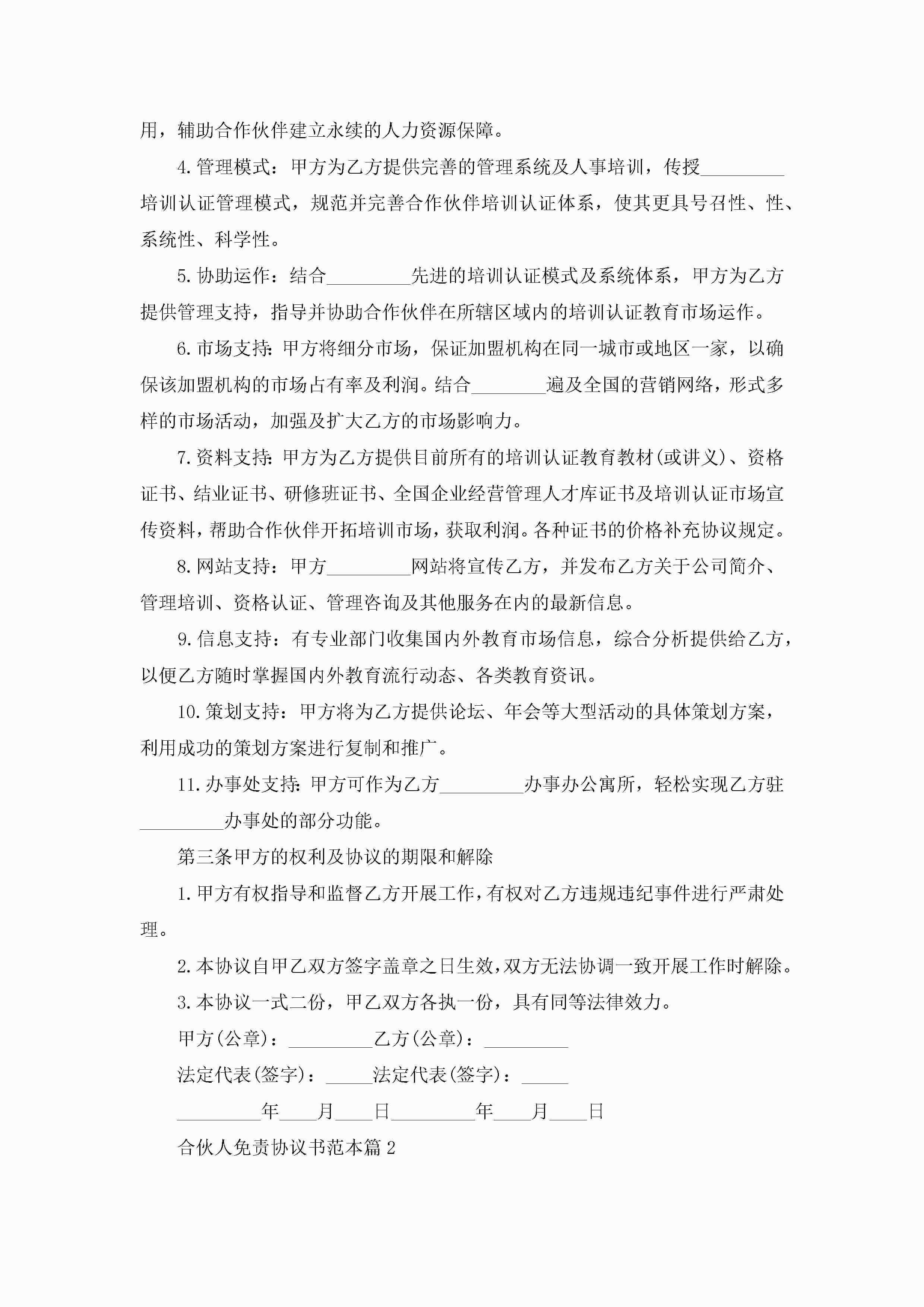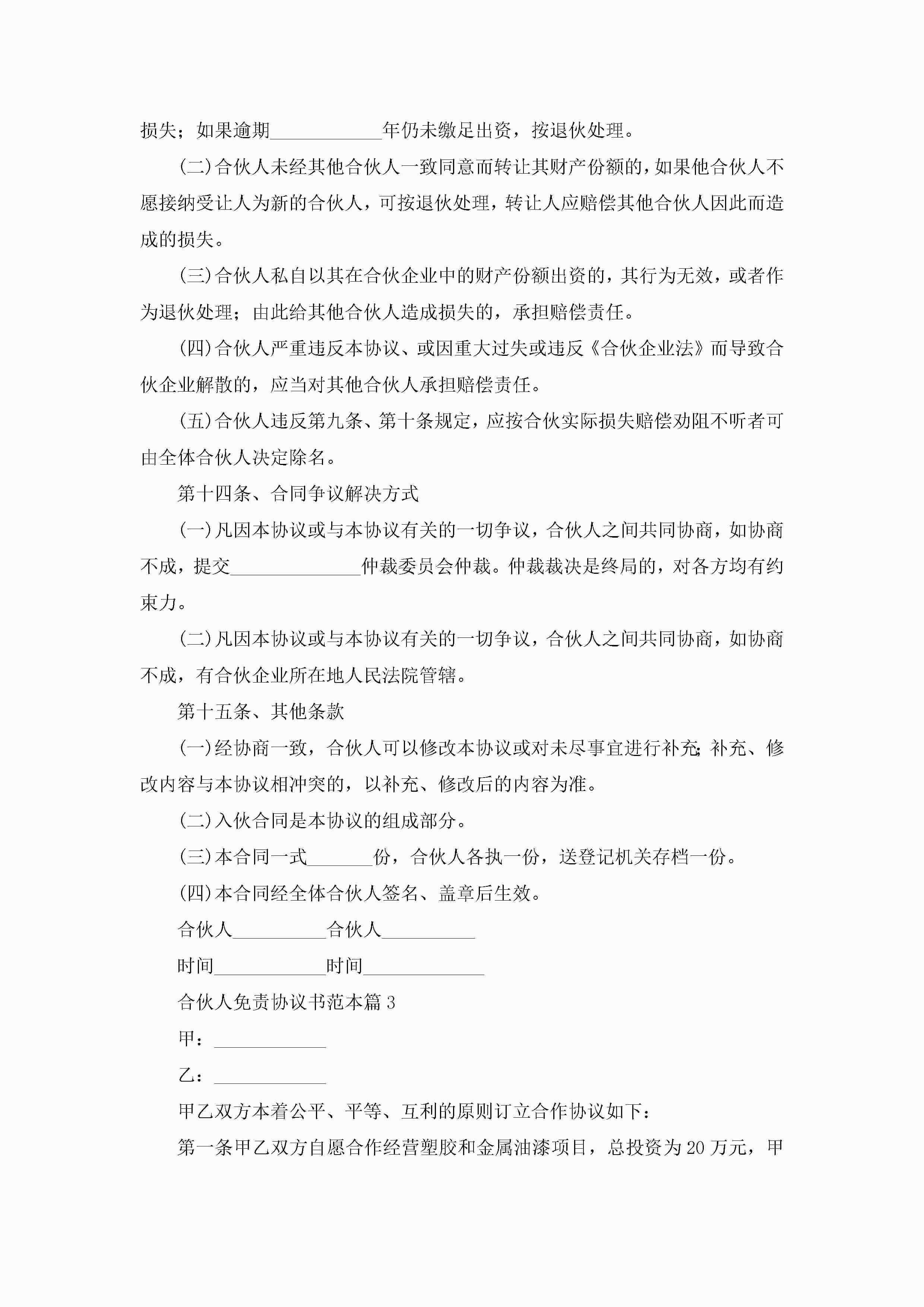合伙人免责协议书范本5篇jugei3月22日 12:39更新关注195 合伙人免责协议书范本5篇此内容为付费资源,请付费后查看¥10.9 单篇文档限时特惠¥15个人会员开通企业会员开通立即下载无需登陆!可直接快捷下载单个模板付费资源© 版权声明THE ENDWord模板# 实用文档# 信函模板# 协议书# 合伙人免责协议书范本 如有问题,可点击最底部“联系我们”联系客服 分享QQ空间微博QQ好友海报分享复制链接收藏