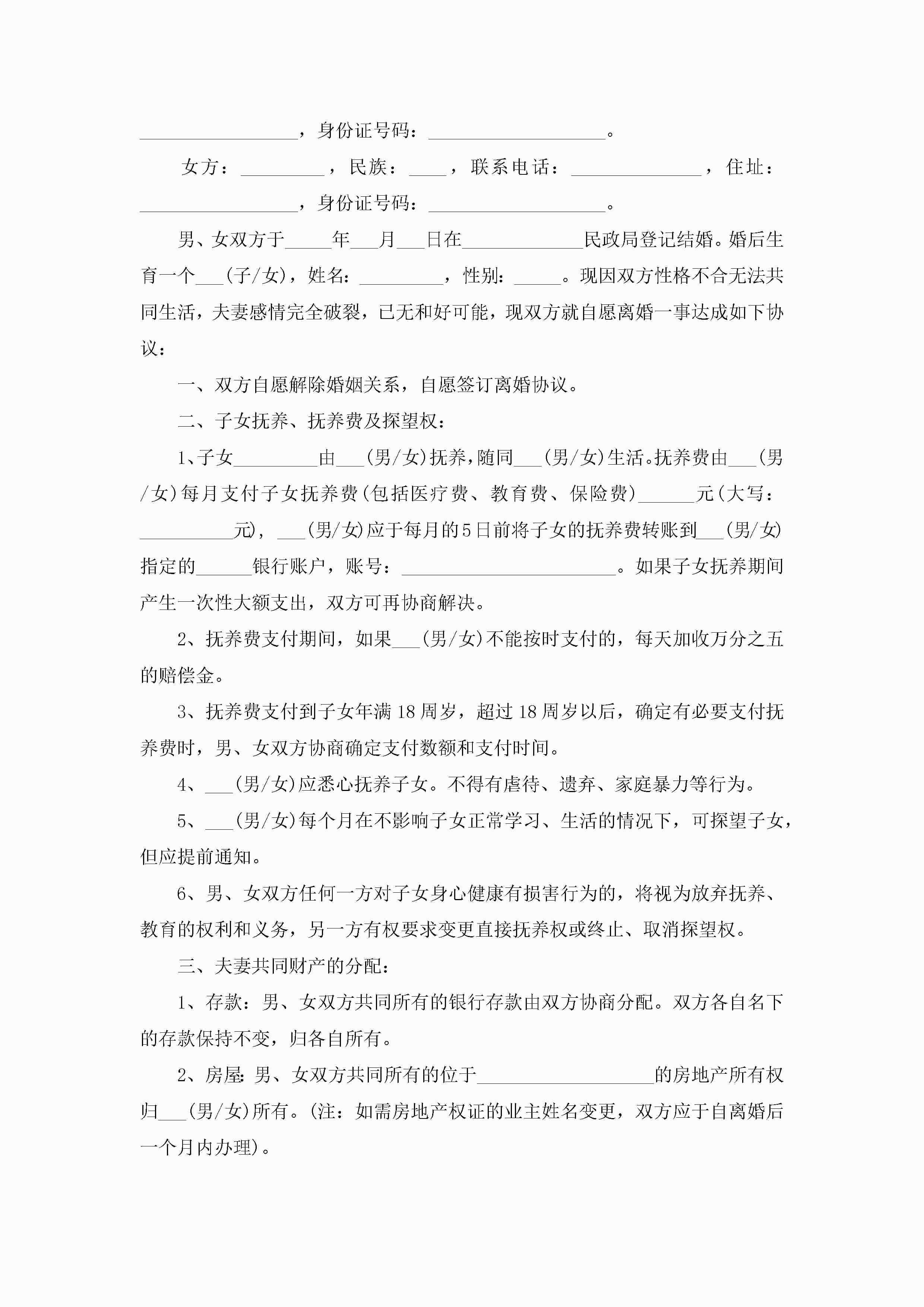 2022正规离婚协议书模板(7篇)jugei3月22日 12:39更新关注362 2022正规离婚协议书模板(7篇)此内容为付费资源,请付费后查看¥10.9 单篇文档限时特惠¥15个人会员开通企业会员开通立即下载无需登陆!可直接快捷下载单个模板付费资源© 版权声明THE ENDWord模板# 实用文档# 实用模板# 信函模板# 协议书 如有问题,可点击最底部“联系我们”联系客服 分享QQ空间微博QQ好友海报分享复制链接收藏
