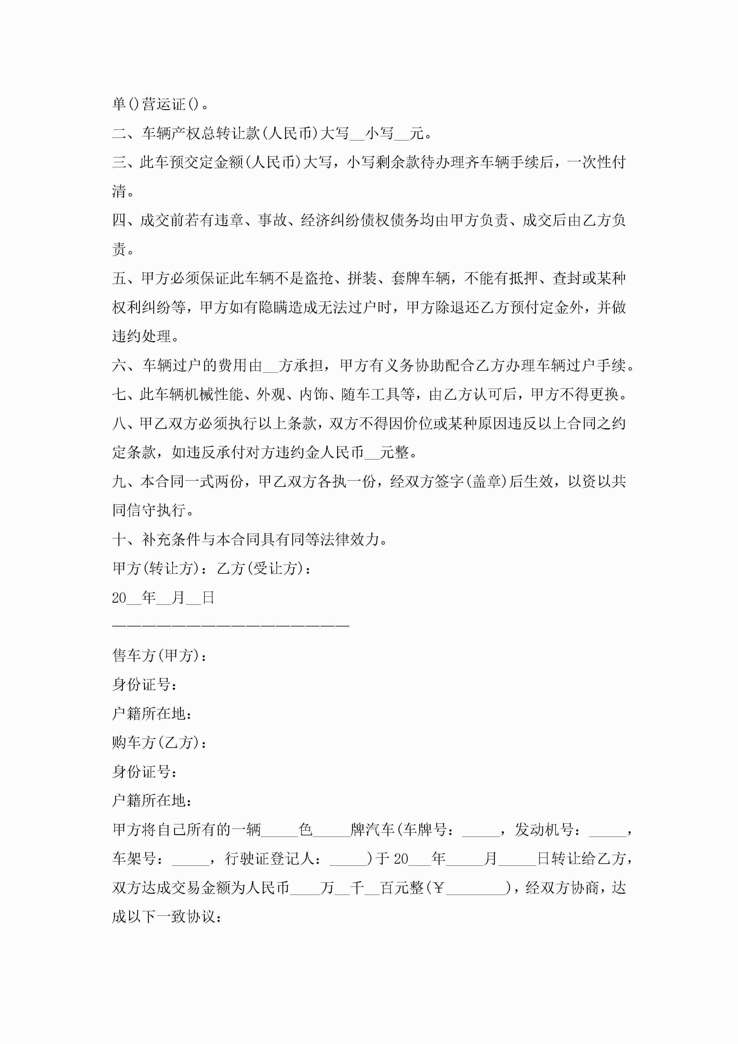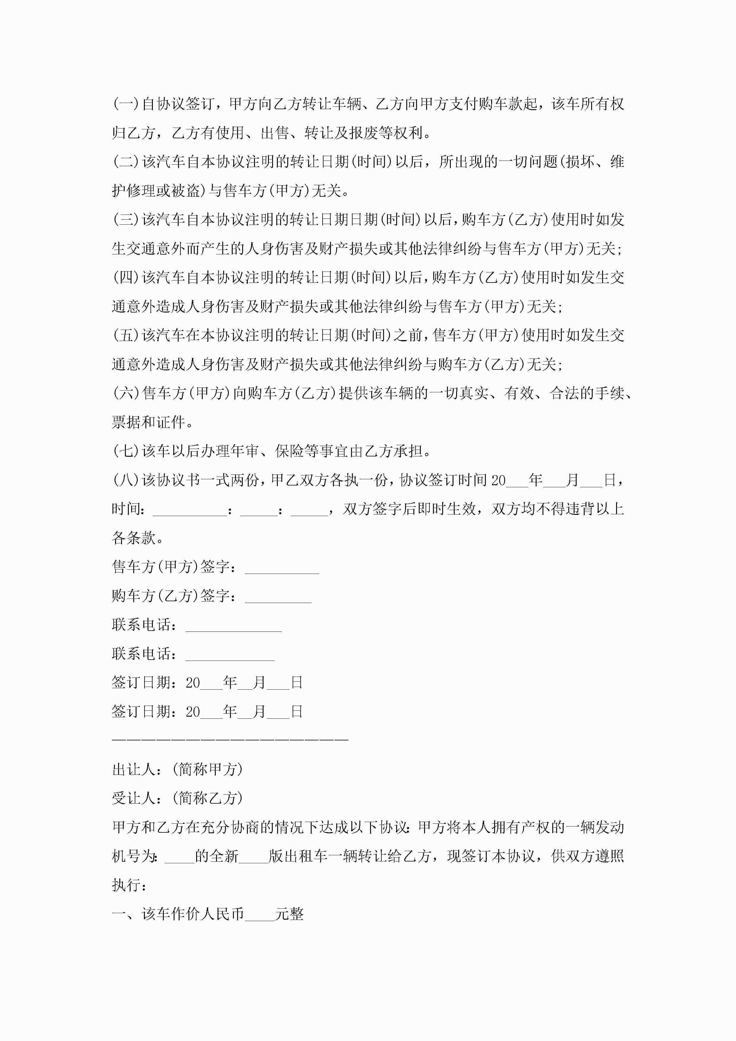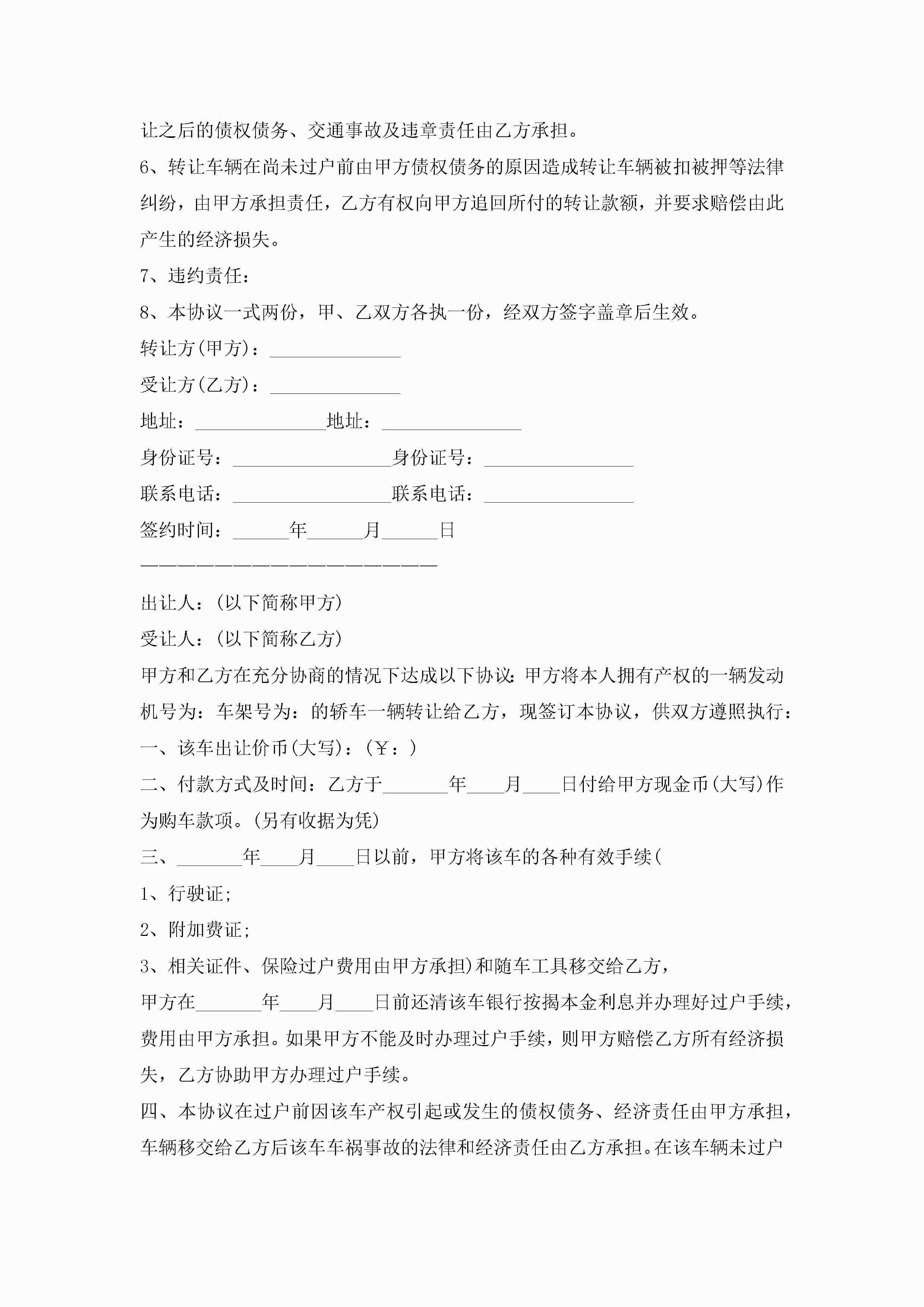 汽车转让协议书10篇精选jugei3月22日 12:39更新关注191 汽车转让协议书10篇精选此内容为付费资源,请付费后查看¥10.9 单篇文档限时特惠¥15个人会员开通企业会员开通立即下载无需登陆!可直接快捷下载单个模板付费资源© 版权声明THE ENDWord模板# 实用文档# 实用模板# 信函模板# 协议书 如有问题,可点击最底部“联系我们”联系客服 分享QQ空间微博QQ好友海报分享复制链接收藏