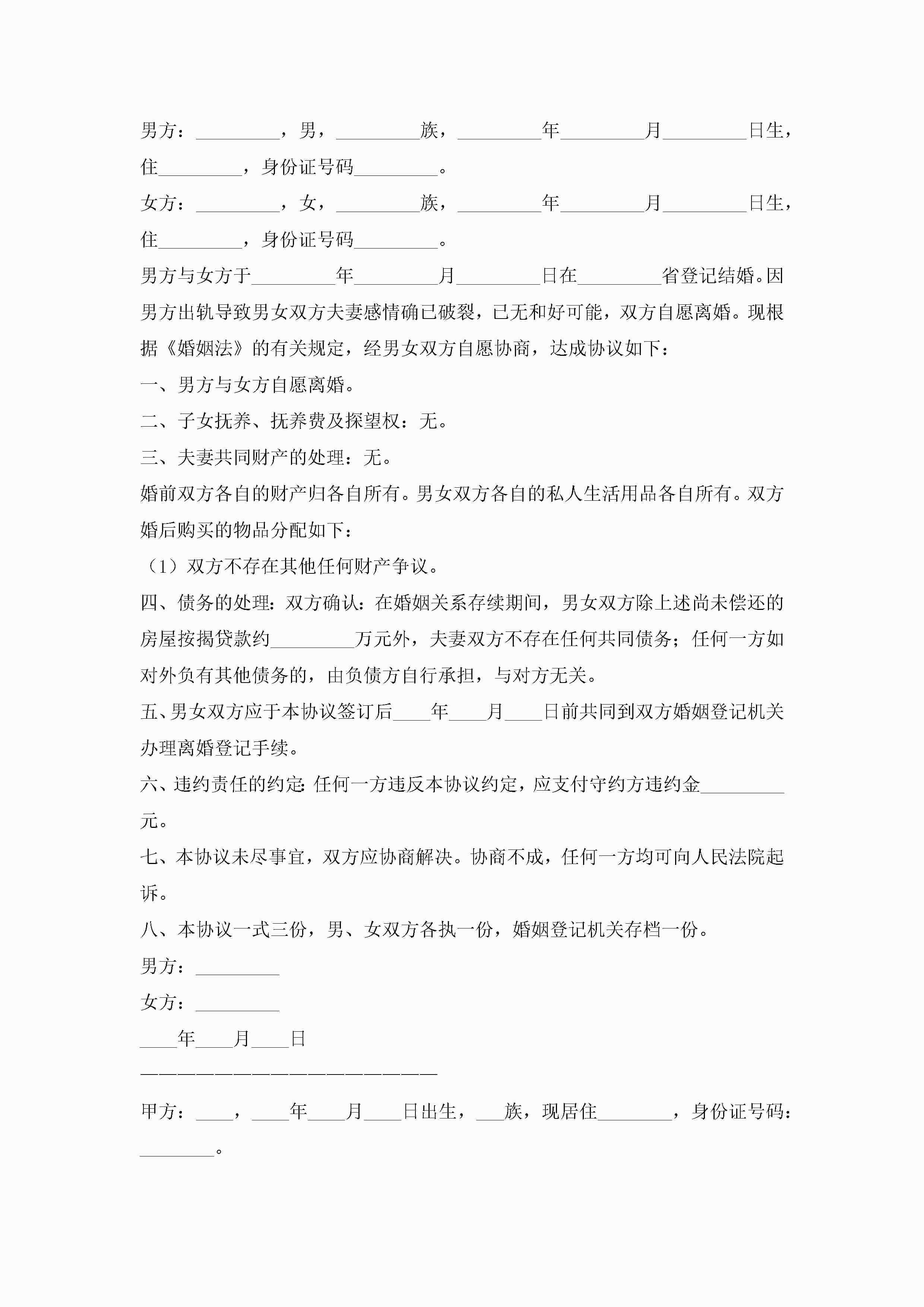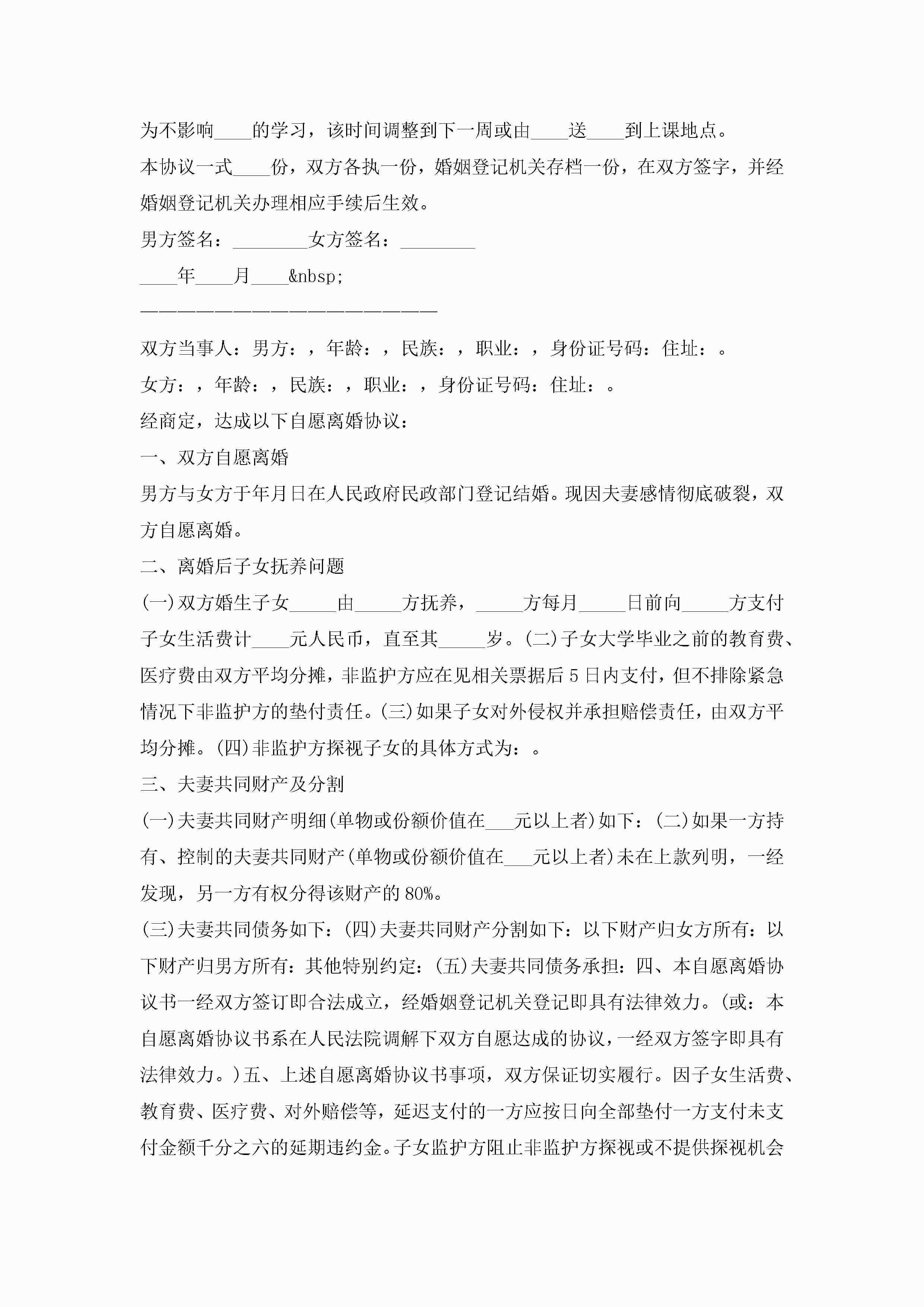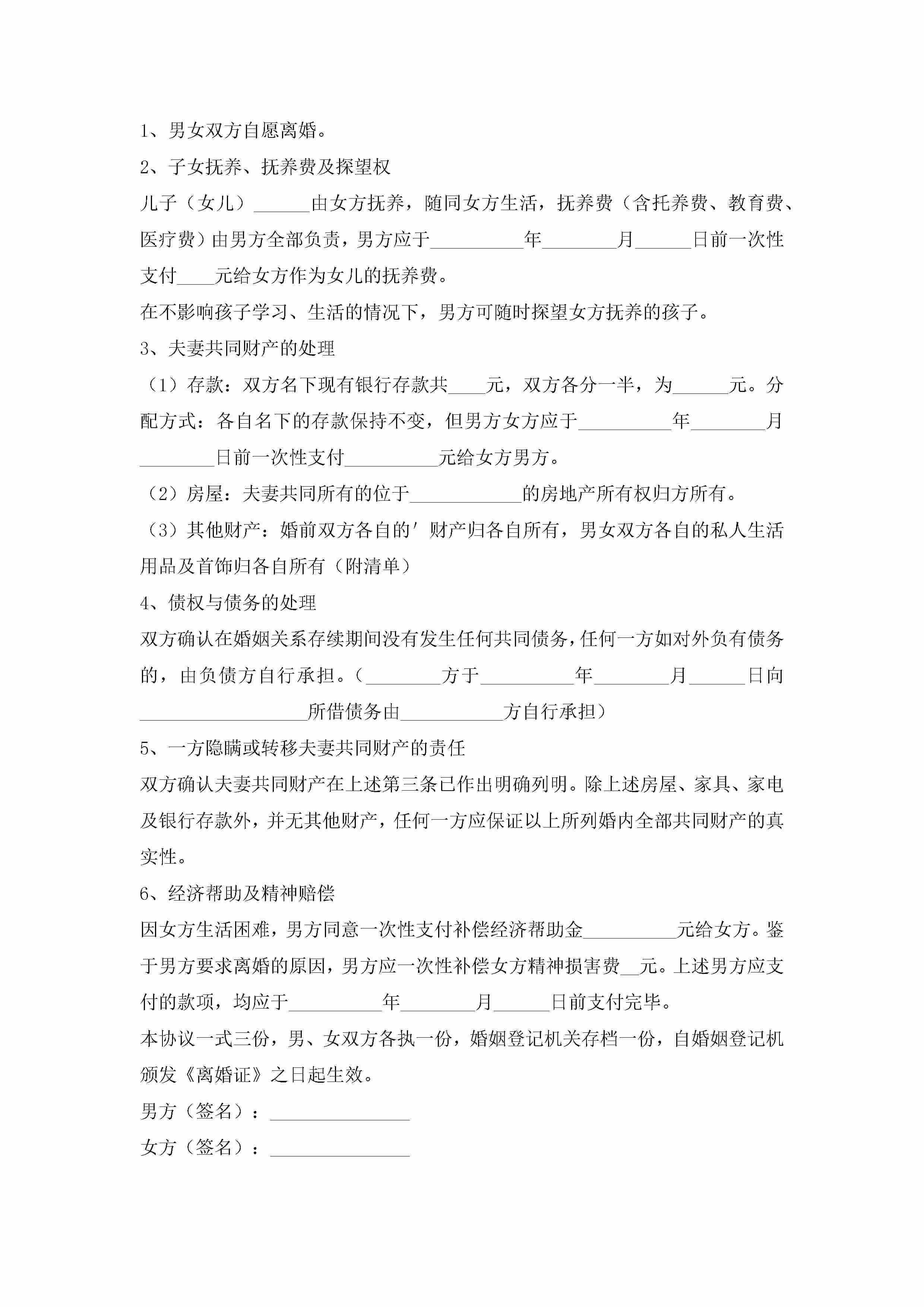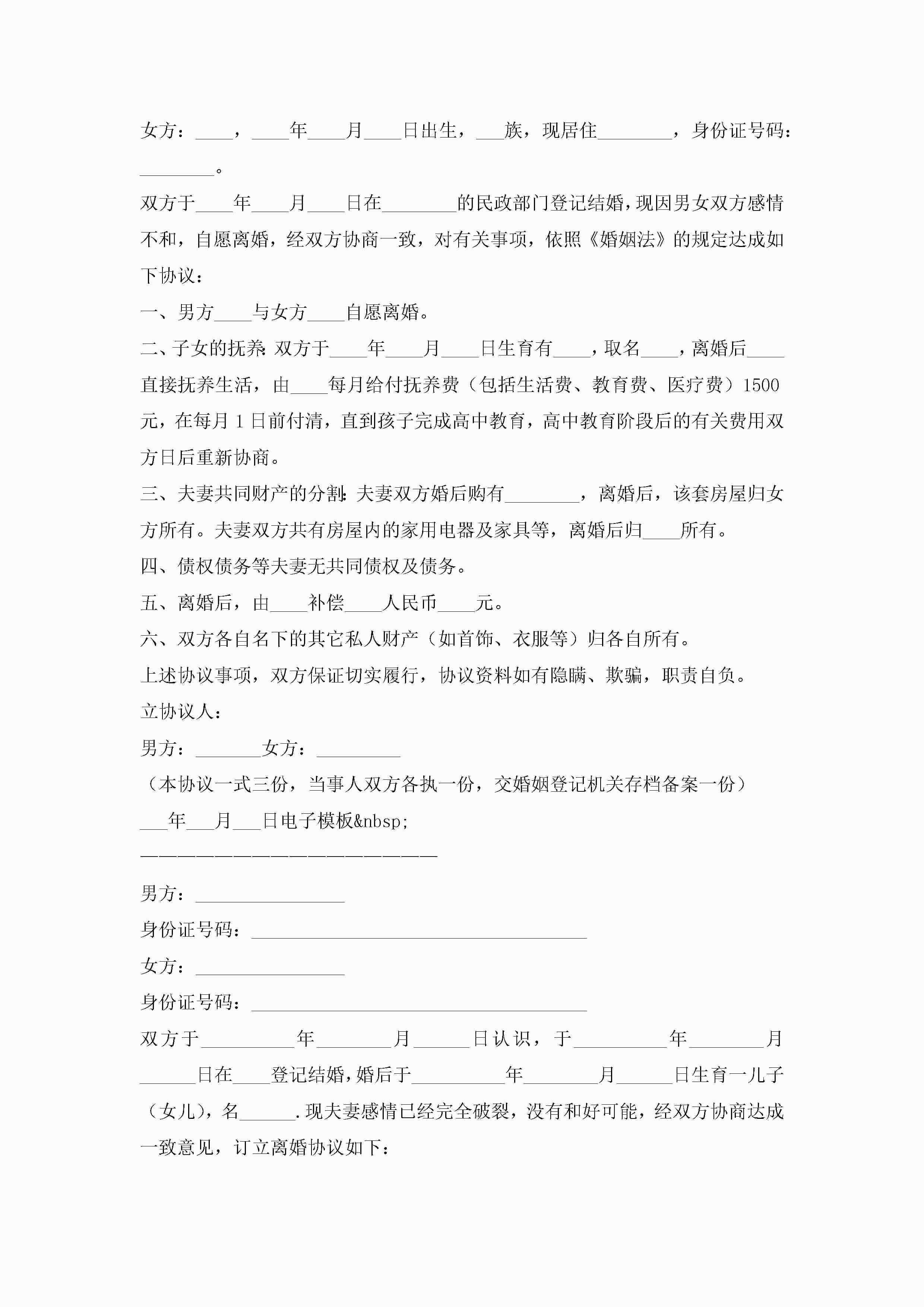 2022最新离婚协议书通用电子模板6篇jugei3月22日 12:39更新关注231 2022最新离婚协议书通用电子模板6篇此内容为付费资源,请付费后查看¥10.9 单篇文档限时特惠¥15个人会员开通企业会员开通立即下载无需登陆!可直接快捷下载单个模板付费资源© 版权声明THE ENDWord模板# 实用文档# 实用模板# 信函模板# 协议书 如有问题,可点击最底部“联系我们”联系客服 分享QQ空间微博QQ好友海报分享复制链接收藏