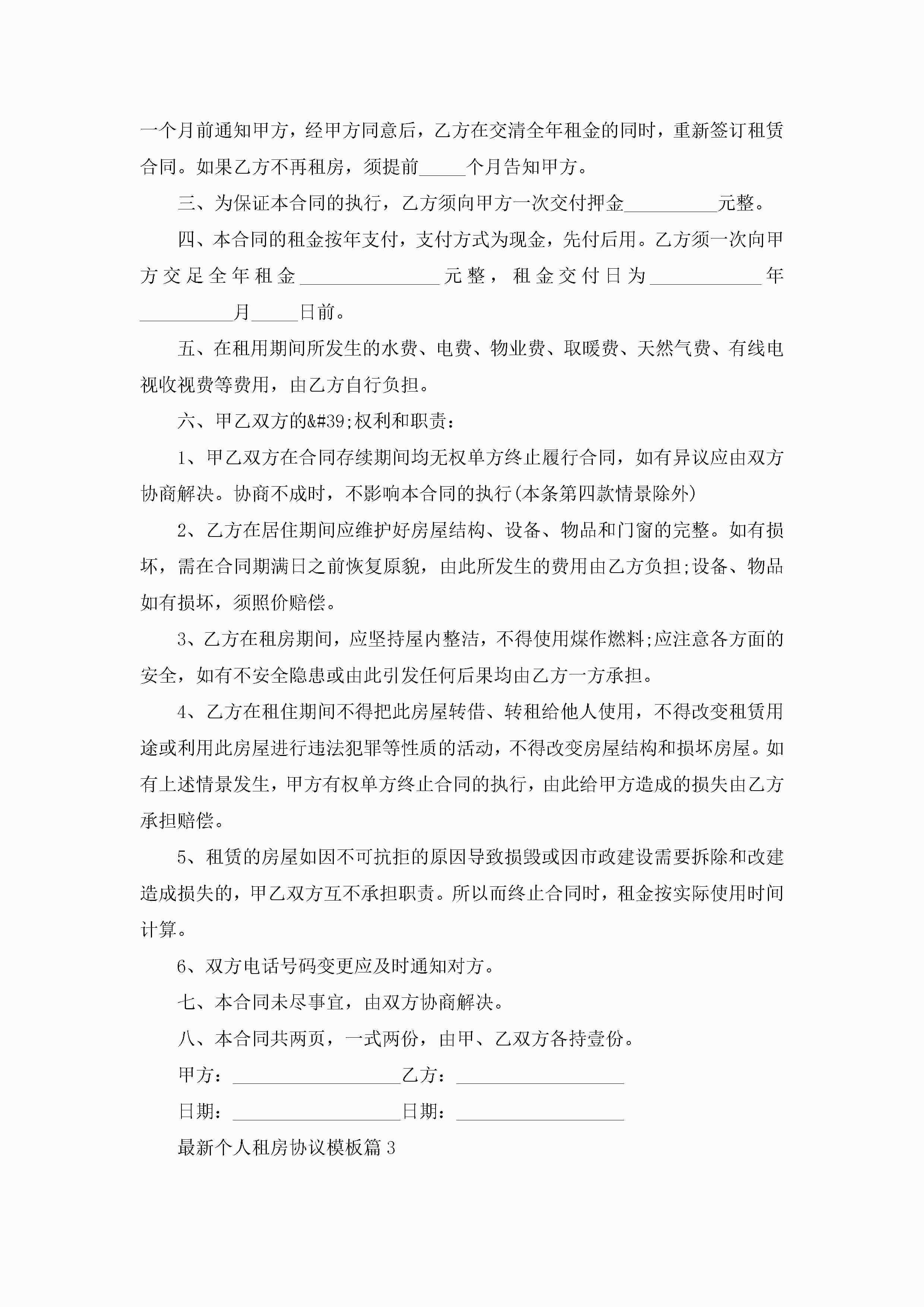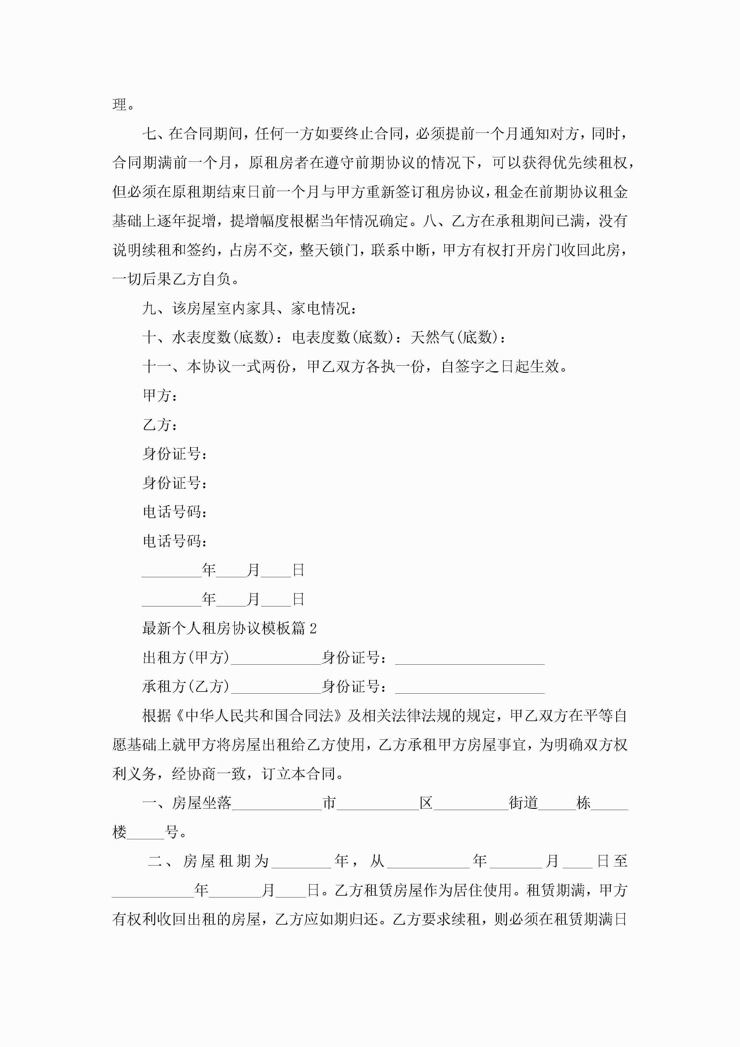 最新个人租房协议模板10篇精选jugei3月22日 12:39更新关注300 最新个人租房协议模板10篇精选此内容为付费资源,请付费后查看¥10.9 单篇文档限时特惠¥15个人会员开通企业会员开通立即下载无需登陆!可直接快捷下载单个模板付费资源© 版权声明THE ENDWord模板# 实用文档# 实用模板# 信函模板# 协议书 如有问题,可点击最底部“联系我们”联系客服 分享QQ空间微博QQ好友海报分享复制链接收藏