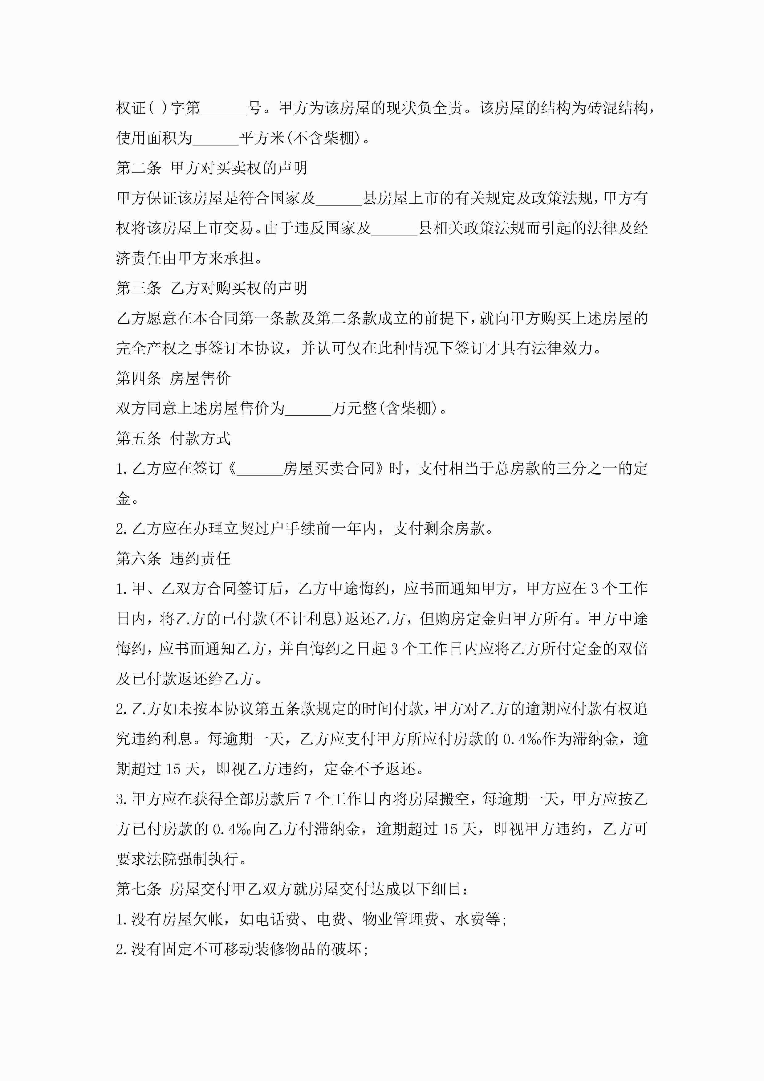 2022年房屋转让协议范本5篇(通用版)jugei3月22日 12:39更新关注193 2022年房屋转让协议范本5篇(通用版)此内容为付费资源,请付费后查看¥10.9 单篇文档限时特惠¥15个人会员开通企业会员开通立即下载无需登陆!可直接快捷下载单个模板付费资源© 版权声明THE ENDWord模板# 实用文档# 实用模板# 信函模板# 协议书 如有问题,可点击最底部“联系我们”联系客服 分享QQ空间微博QQ好友海报分享复制链接收藏