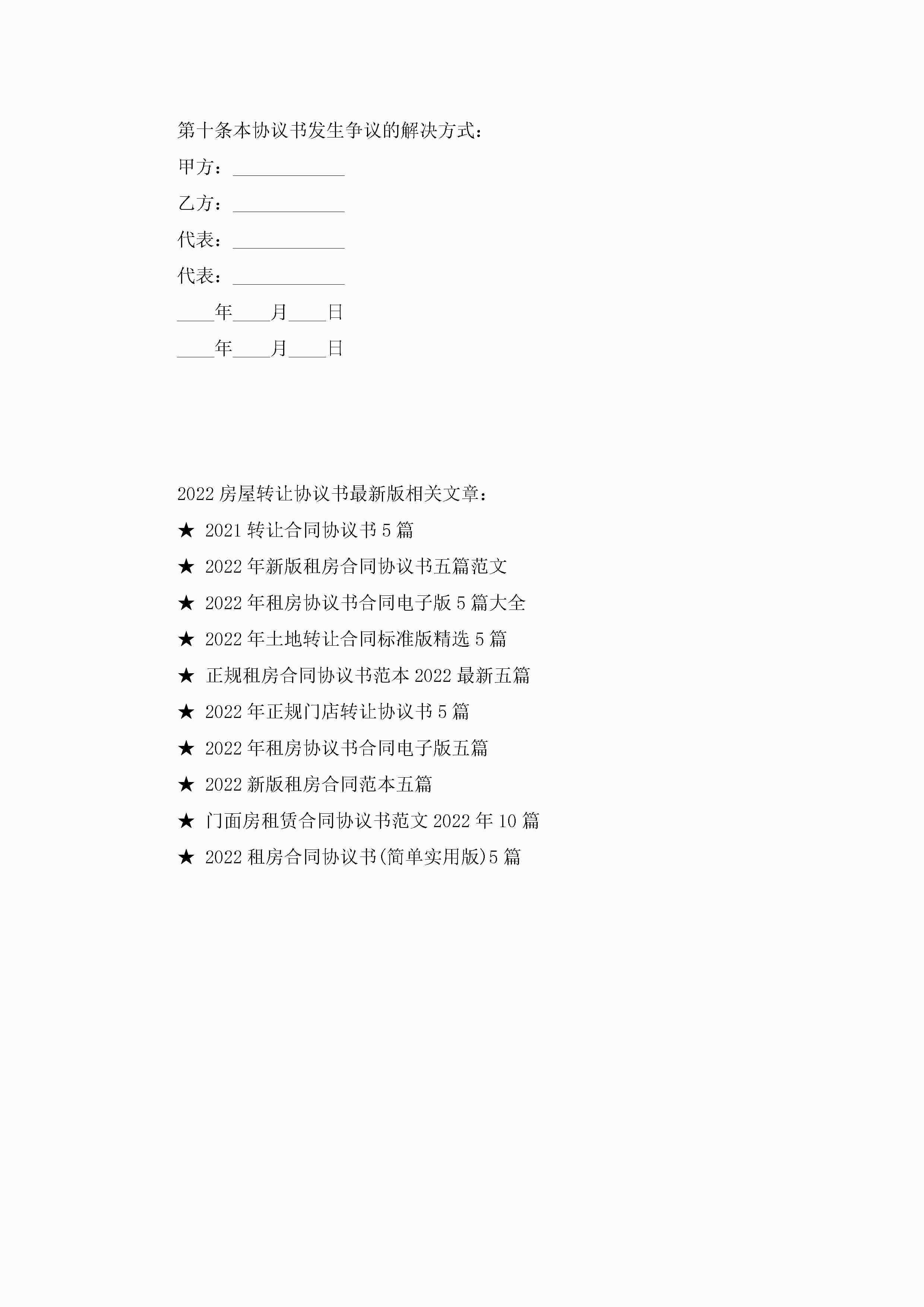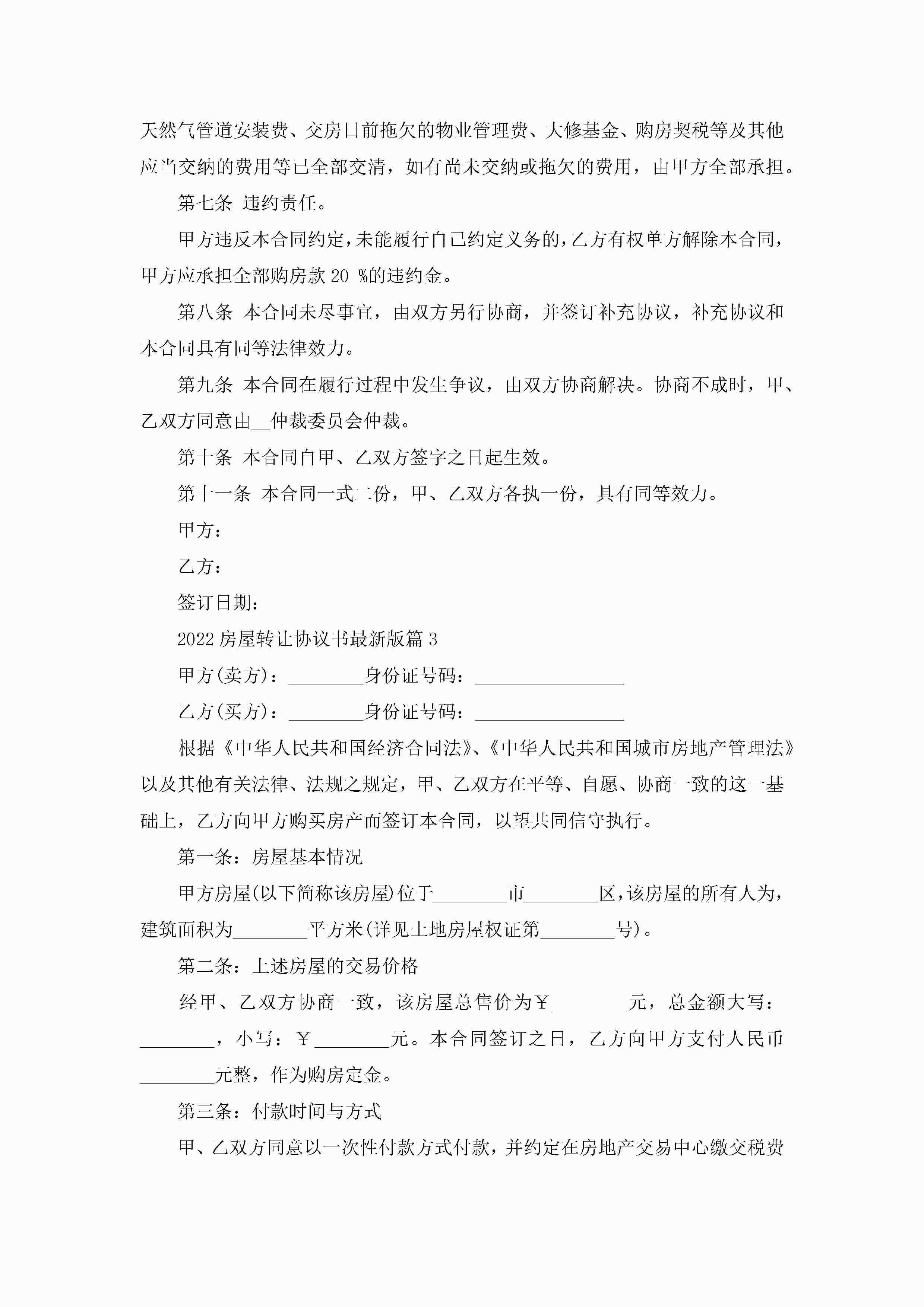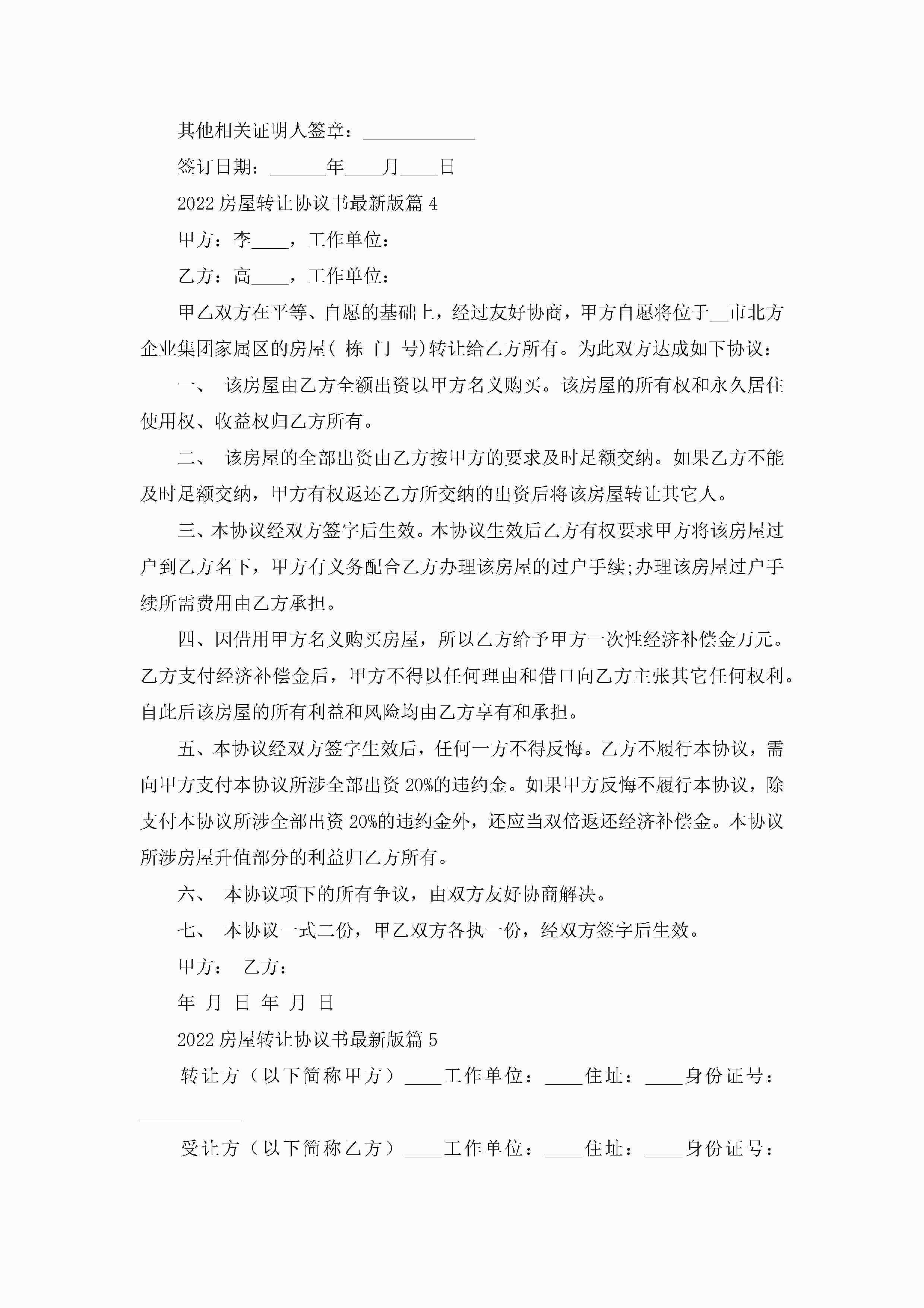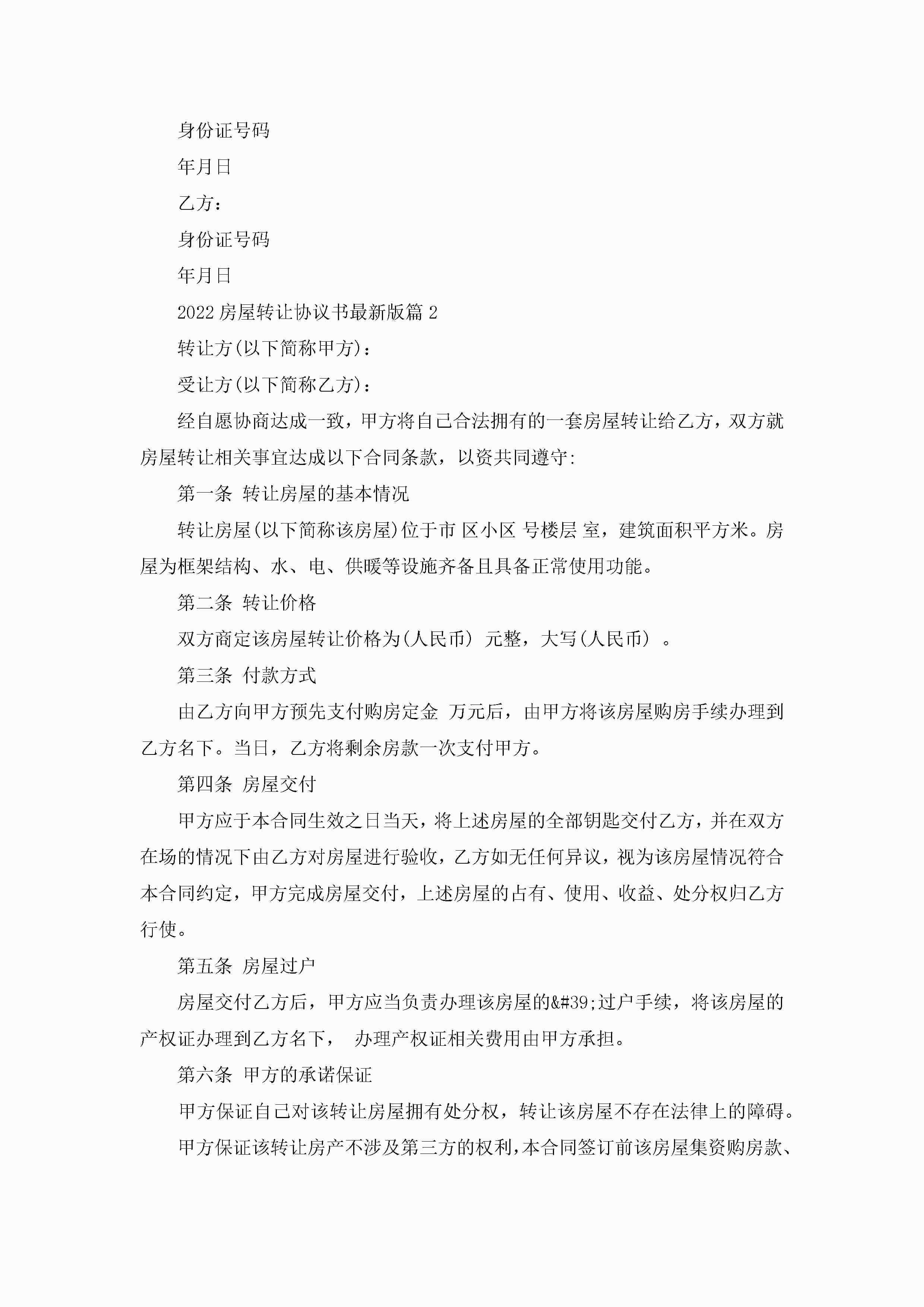 2022房屋转让协议书最新版(6篇)jugei3月22日 12:39更新关注216 2022房屋转让协议书最新版(6篇)此内容为付费资源,请付费后查看¥10.9 单篇文档限时特惠¥15个人会员开通企业会员开通立即下载无需登陆!可直接快捷下载单个模板付费资源© 版权声明THE ENDWord模板# 实用文档# 实用模板# 信函模板# 协议书 如有问题,可点击最底部“联系我们”联系客服 分享QQ空间微博QQ好友海报分享复制链接收藏