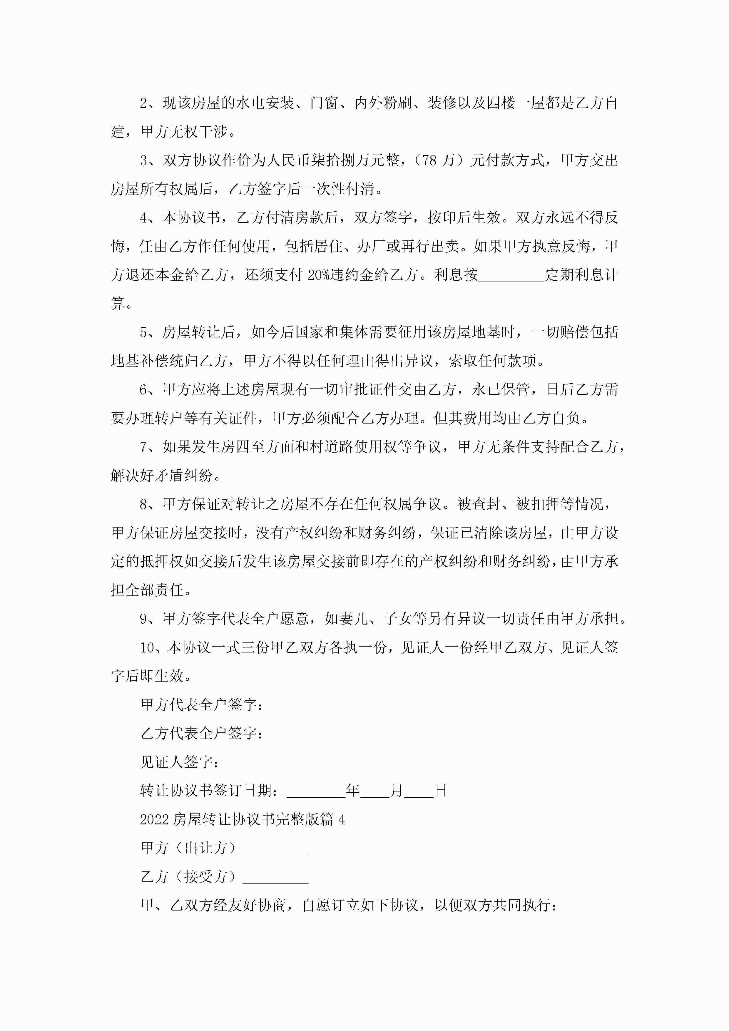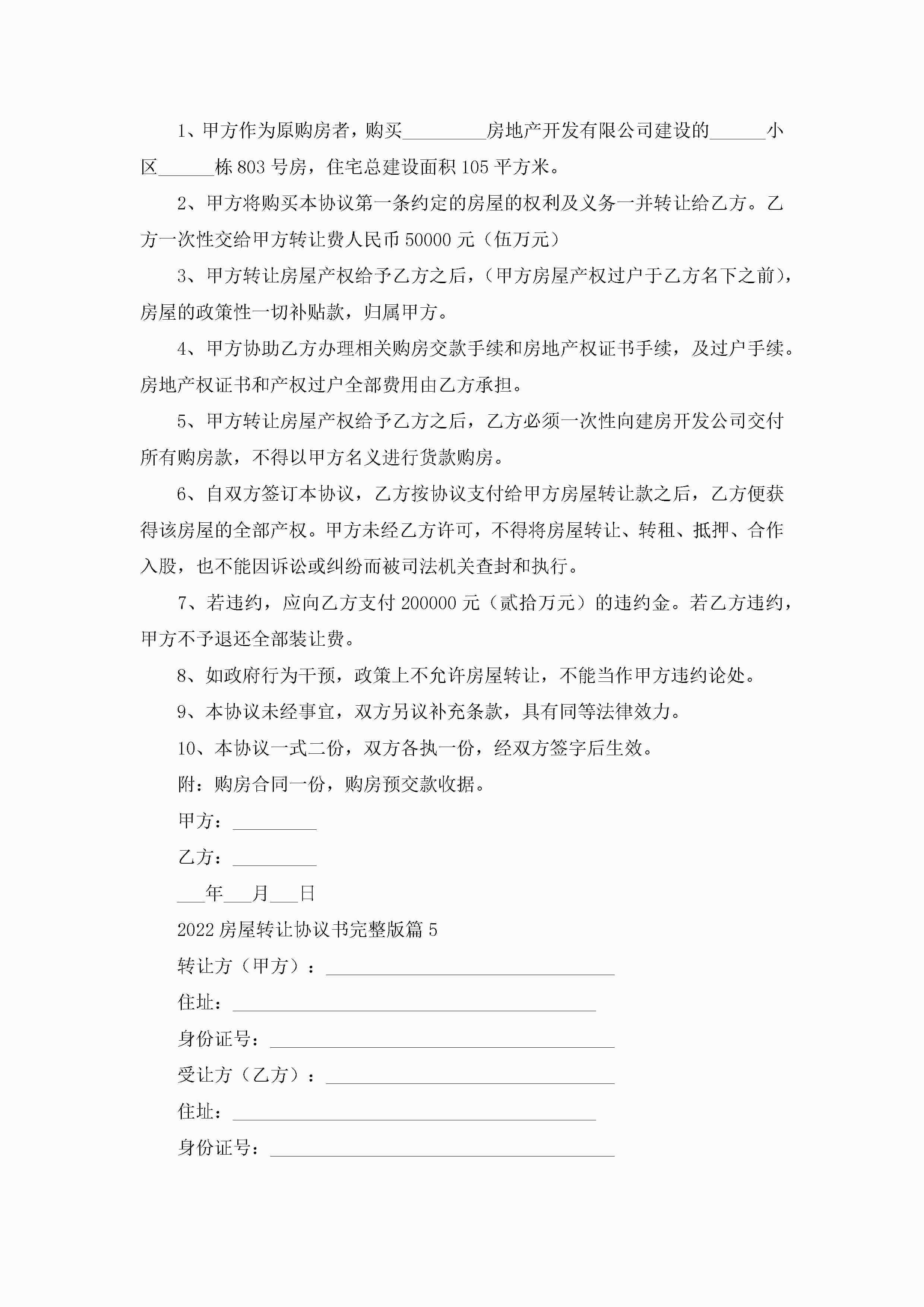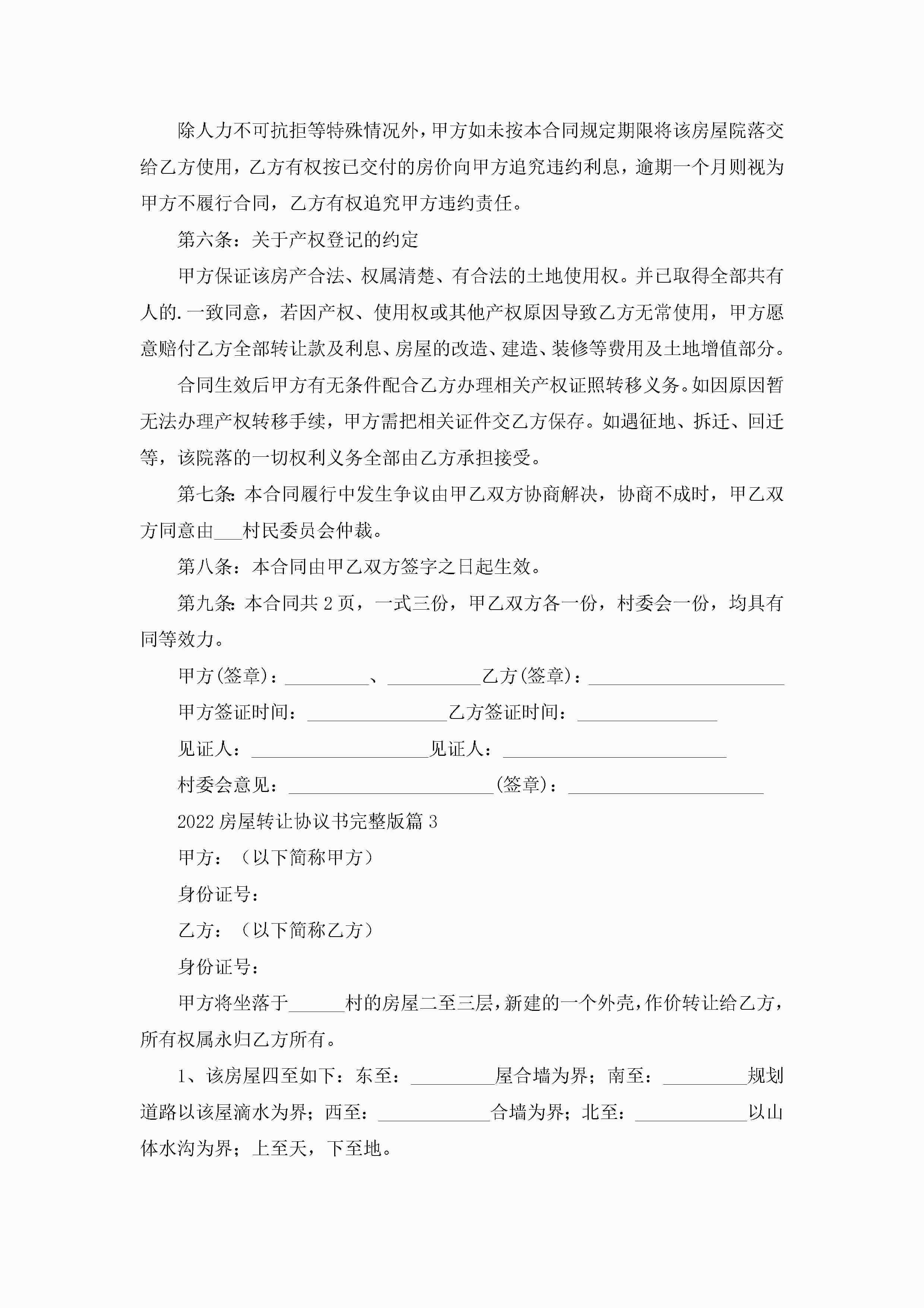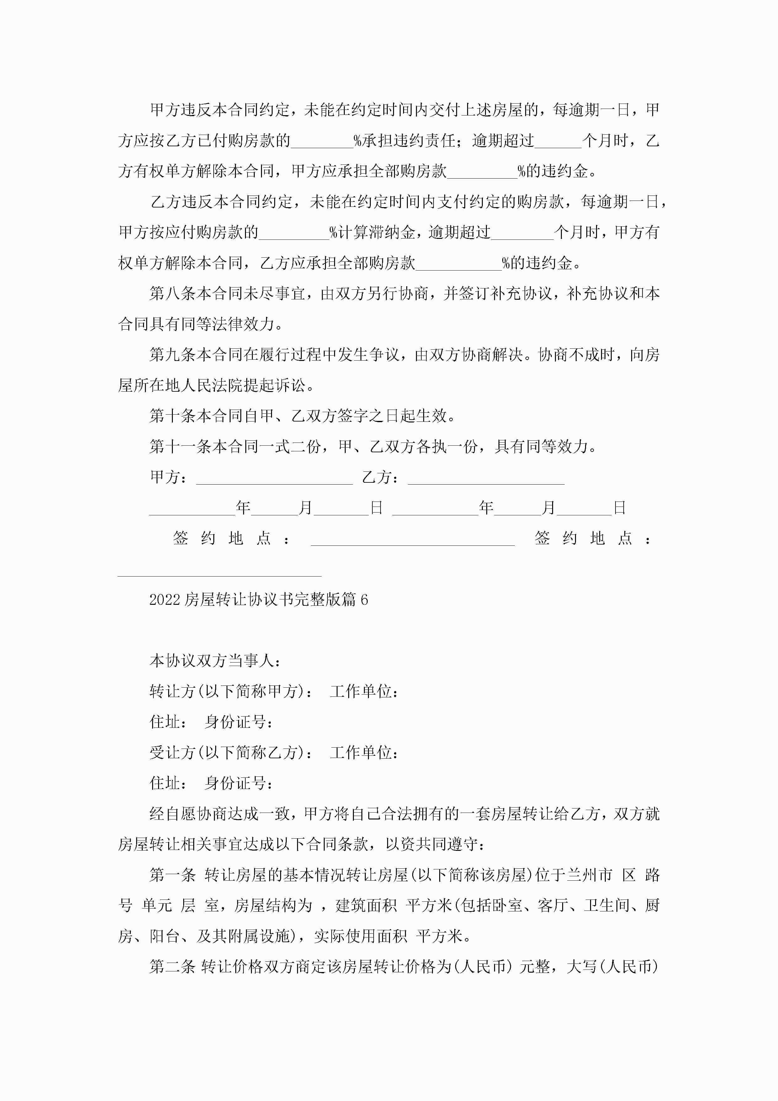 2022房屋转让协议书完整版(精选6篇)jugei3月22日 12:39更新关注208 2022房屋转让协议书完整版(精选6篇)此内容为付费资源,请付费后查看¥10.9 单篇文档限时特惠¥15个人会员开通企业会员开通立即下载无需登陆!可直接快捷下载单个模板付费资源© 版权声明THE ENDWord模板# 实用文档# 实用模板# 信函模板# 协议书 如有问题,可点击最底部“联系我们”联系客服 分享QQ空间微博QQ好友海报分享复制链接收藏