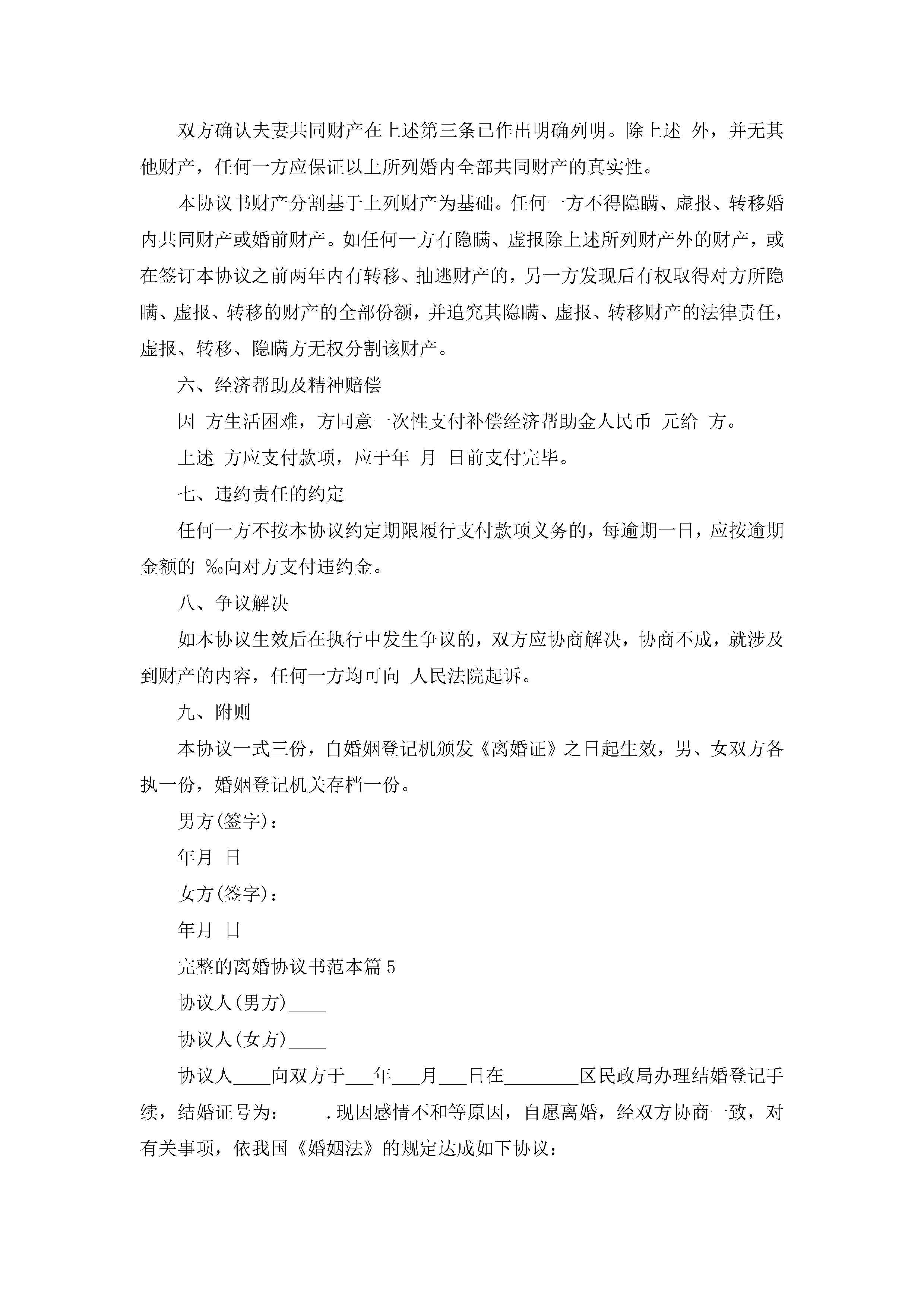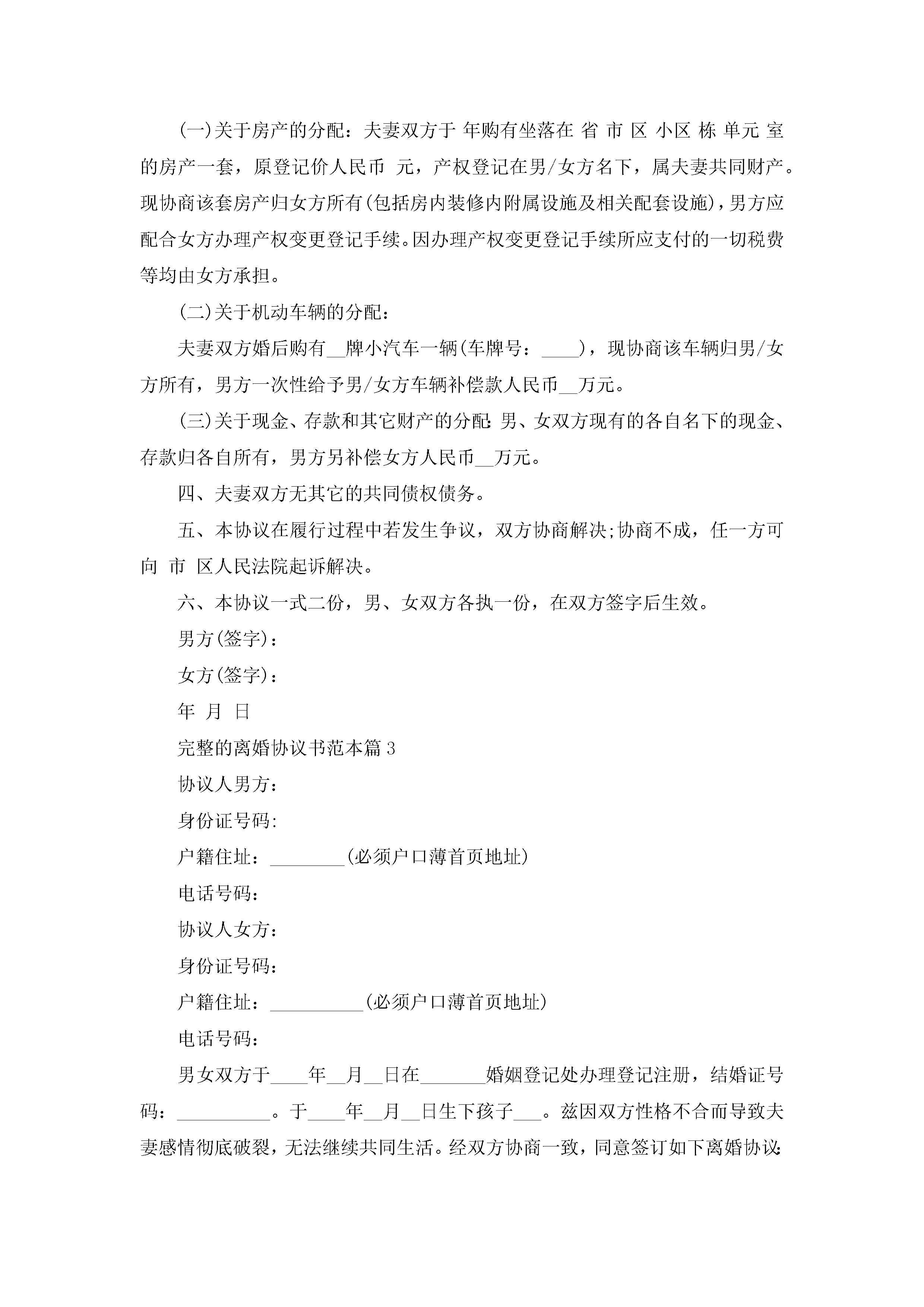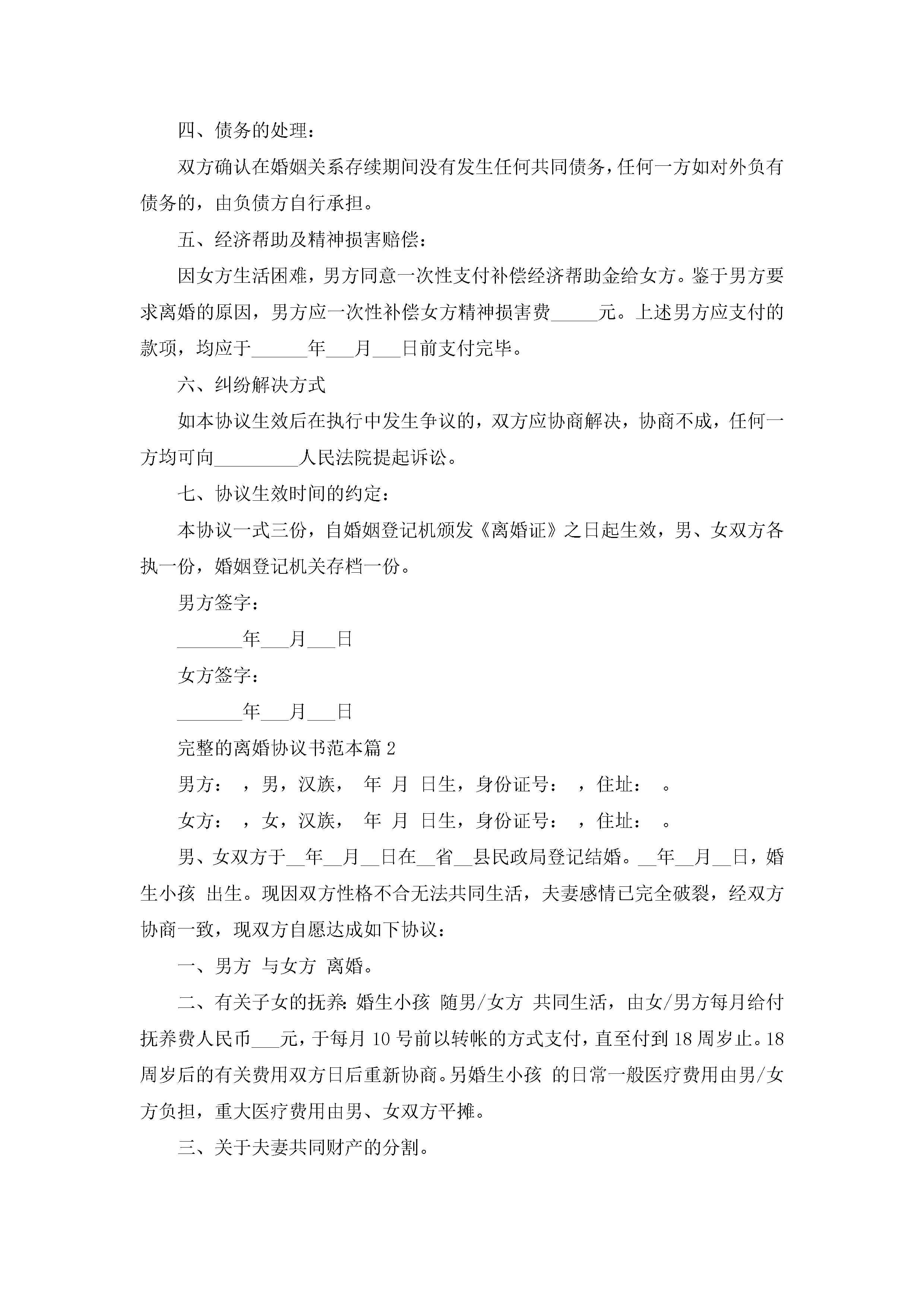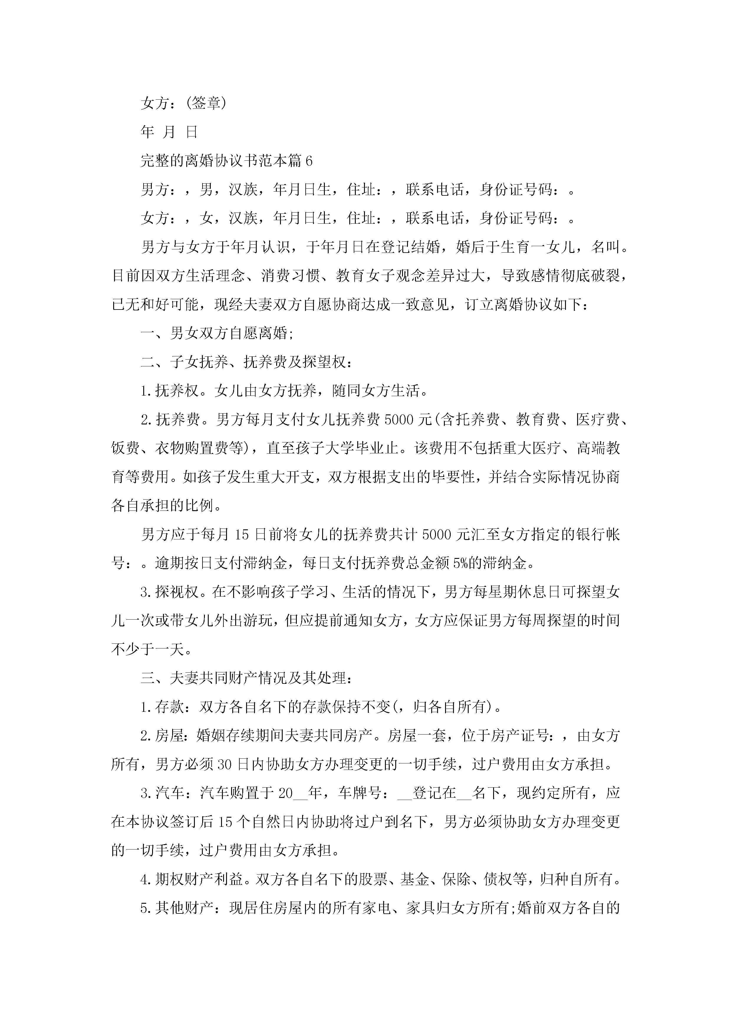 完整的离婚协议书范本(精选10篇)jugei3月22日 12:39更新关注205 完整的离婚协议书范本(精选10篇)此内容为付费资源,请付费后查看¥10.9 单篇文档限时特惠¥15个人会员开通企业会员开通立即下载无需登陆!可直接快捷下载单个模板付费资源© 版权声明THE ENDWord模板# 实用文档# 实用模板# 信函模板# 协议书 如有问题,可点击最底部“联系我们”联系客服 分享QQ空间微博QQ好友海报分享复制链接收藏