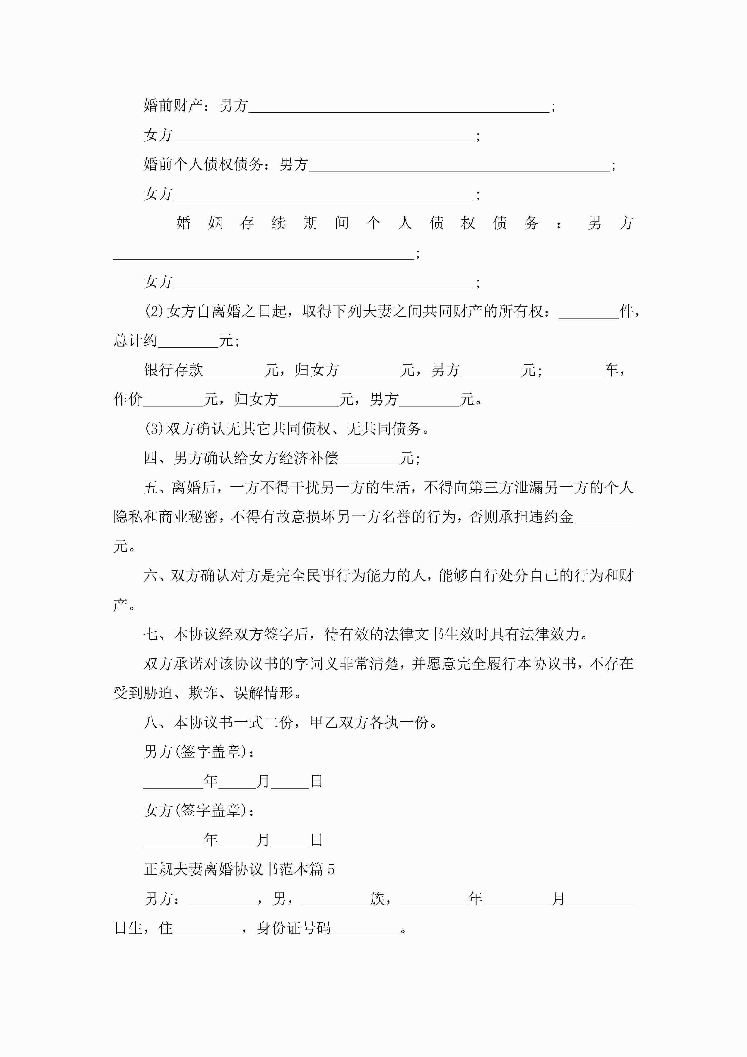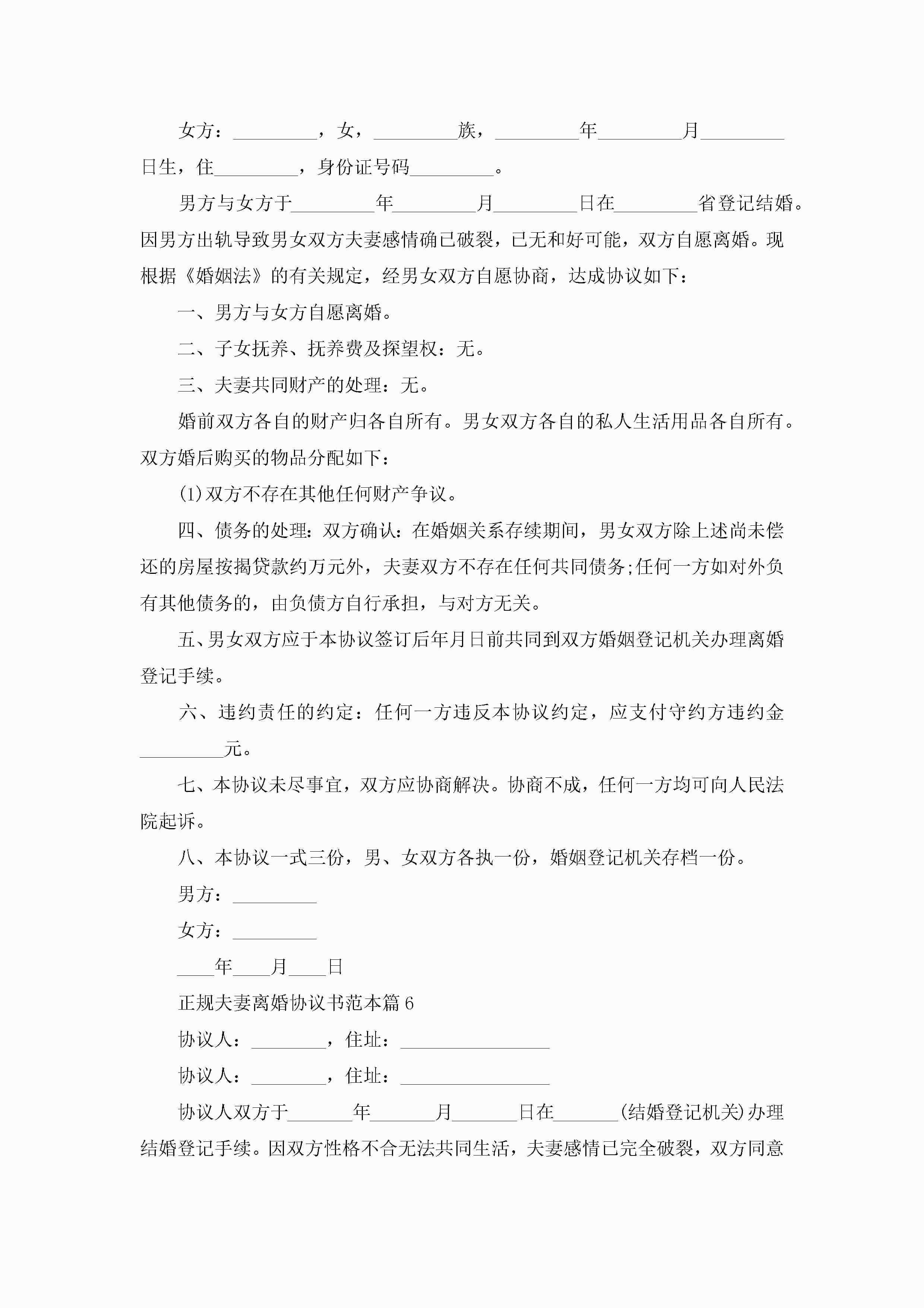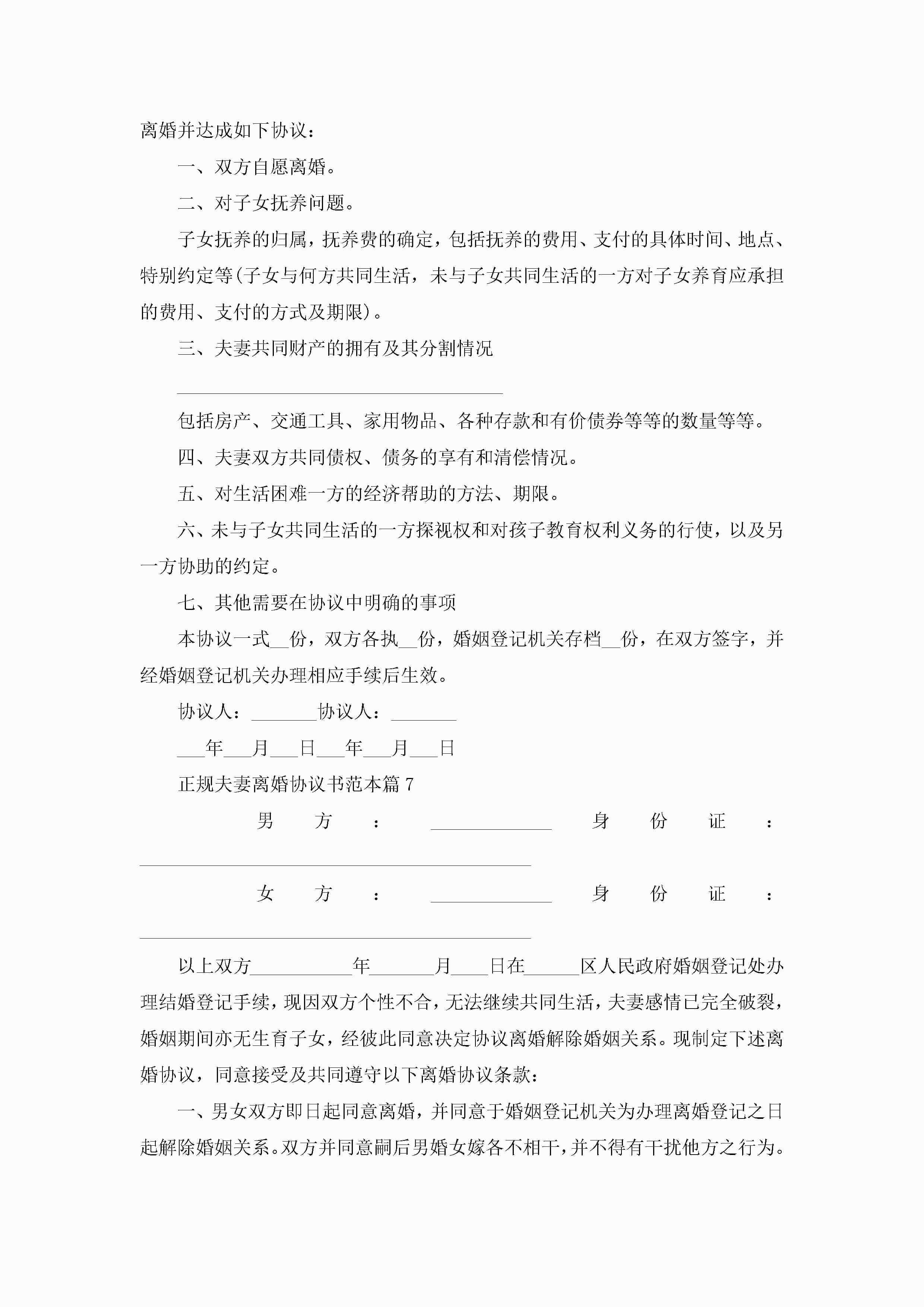 正规夫妻离婚协议书范本(精选10篇)jugei3月22日 12:39更新关注195 正规夫妻离婚协议书范本(精选10篇)此内容为付费资源,请付费后查看¥10.9 单篇文档限时特惠¥15个人会员开通企业会员开通立即下载无需登陆!可直接快捷下载单个模板付费资源© 版权声明THE ENDWord模板# 实用文档# 实用模板# 信函模板# 协议书 如有问题,可点击最底部“联系我们”联系客服 分享QQ空间微博QQ好友海报分享复制链接收藏
