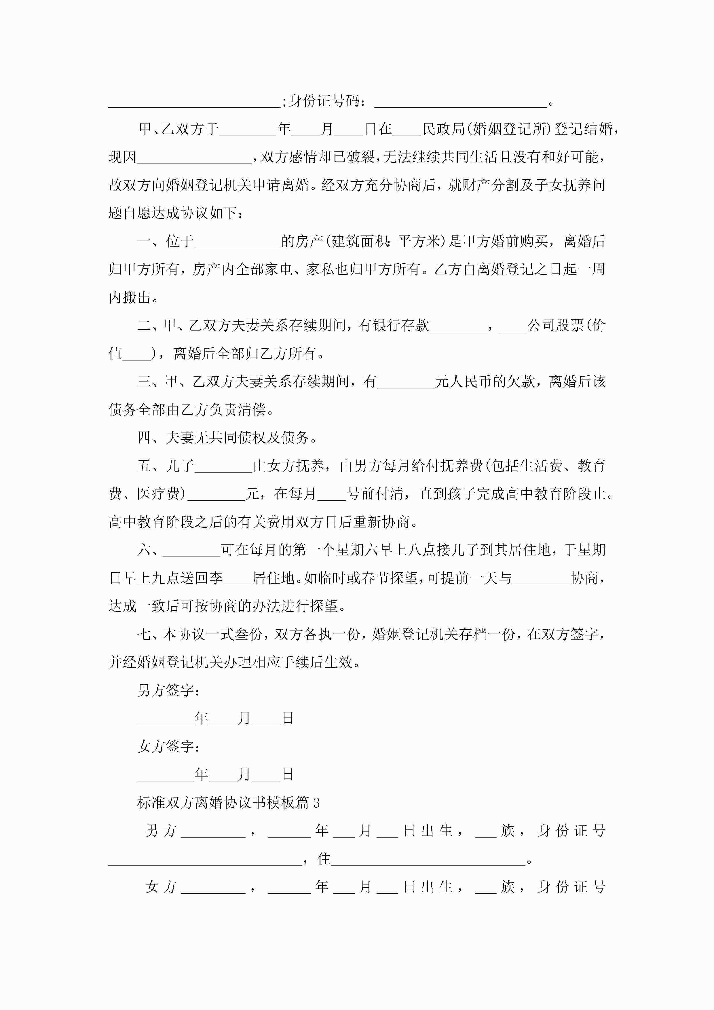标准双方离婚协议书模板(精选10篇)jugei3月22日 12:39更新关注274 标准双方离婚协议书模板(精选10篇)此内容为付费资源,请付费后查看¥10.9 单篇文档限时特惠¥15个人会员开通企业会员开通立即下载无需登陆!可直接快捷下载单个模板付费资源© 版权声明THE ENDWord模板# 实用文档# 实用模板# 信函模板# 协议书 如有问题,可点击最底部“联系我们”联系客服 分享QQ空间微博QQ好友海报分享复制链接收藏