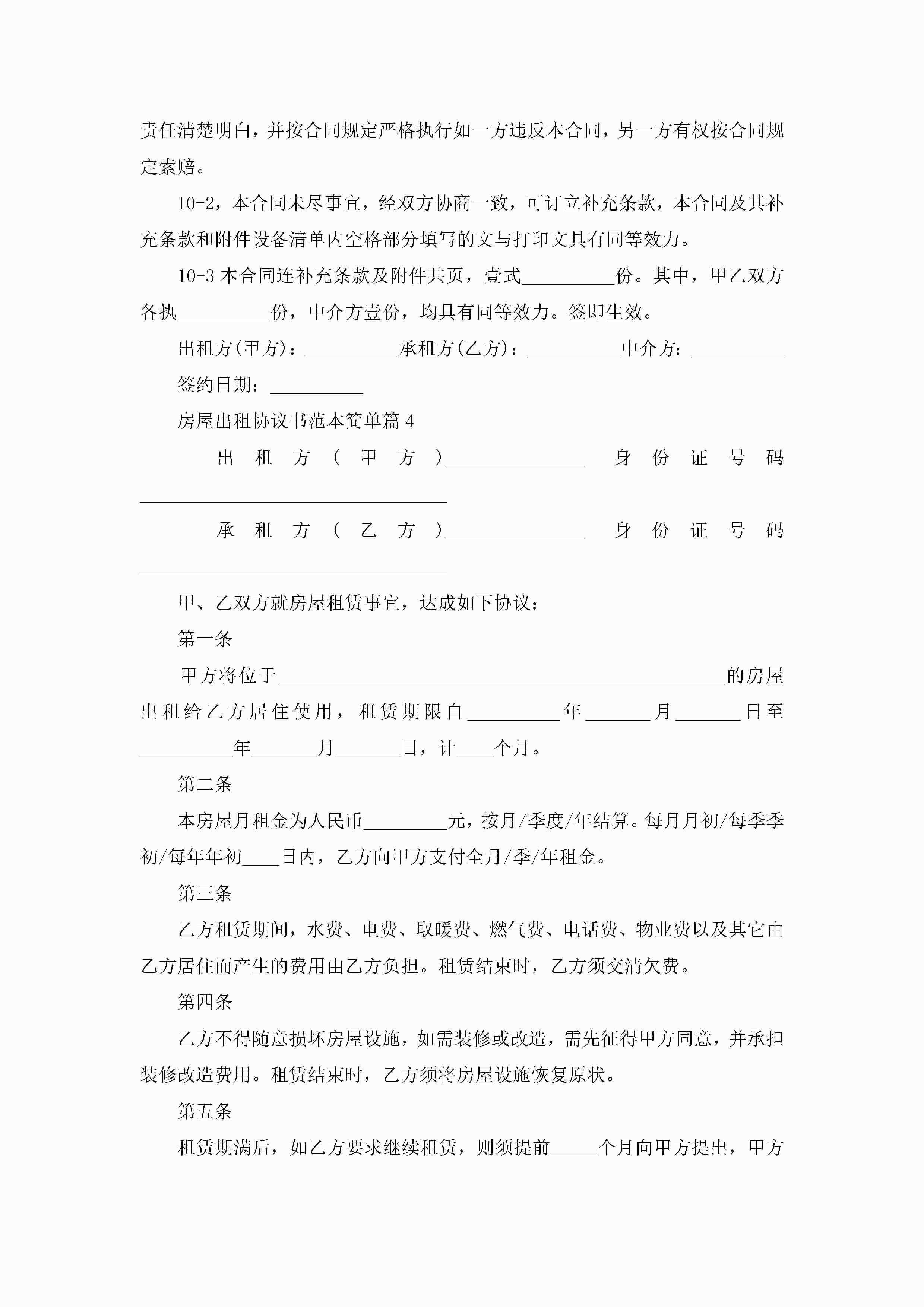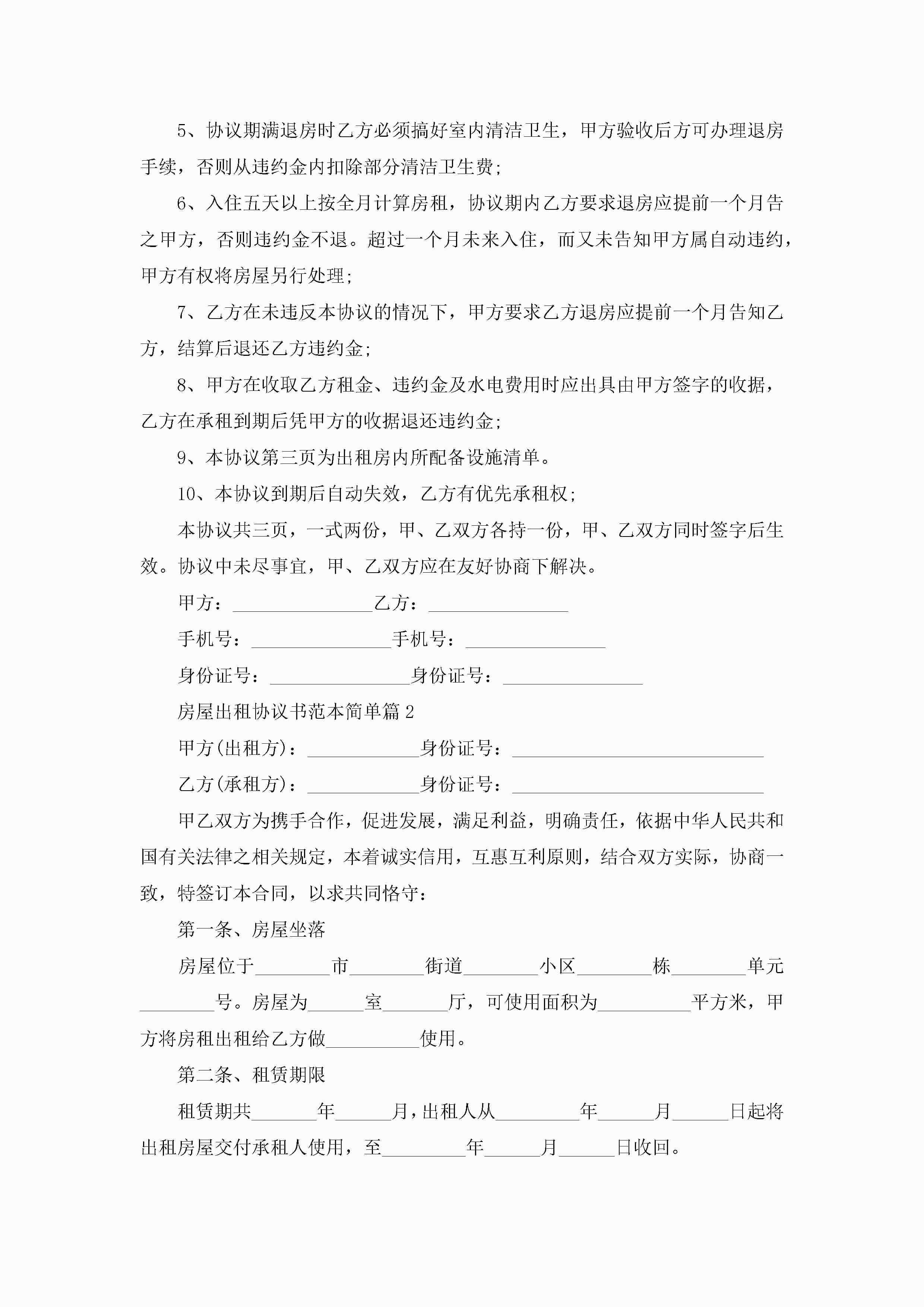 房屋出租协议书范本简单(精选10篇)jugei3月22日 12:39更新关注214 房屋出租协议书范本简单(精选10篇)此内容为付费资源,请付费后查看¥10.9 单篇文档限时特惠¥15个人会员开通企业会员开通立即下载无需登陆!可直接快捷下载单个模板付费资源© 版权声明THE ENDWord模板# 实用文档# 实用模板# 信函模板# 协议书 如有问题,可点击最底部“联系我们”联系客服 分享QQ空间微博QQ好友海报分享复制链接收藏