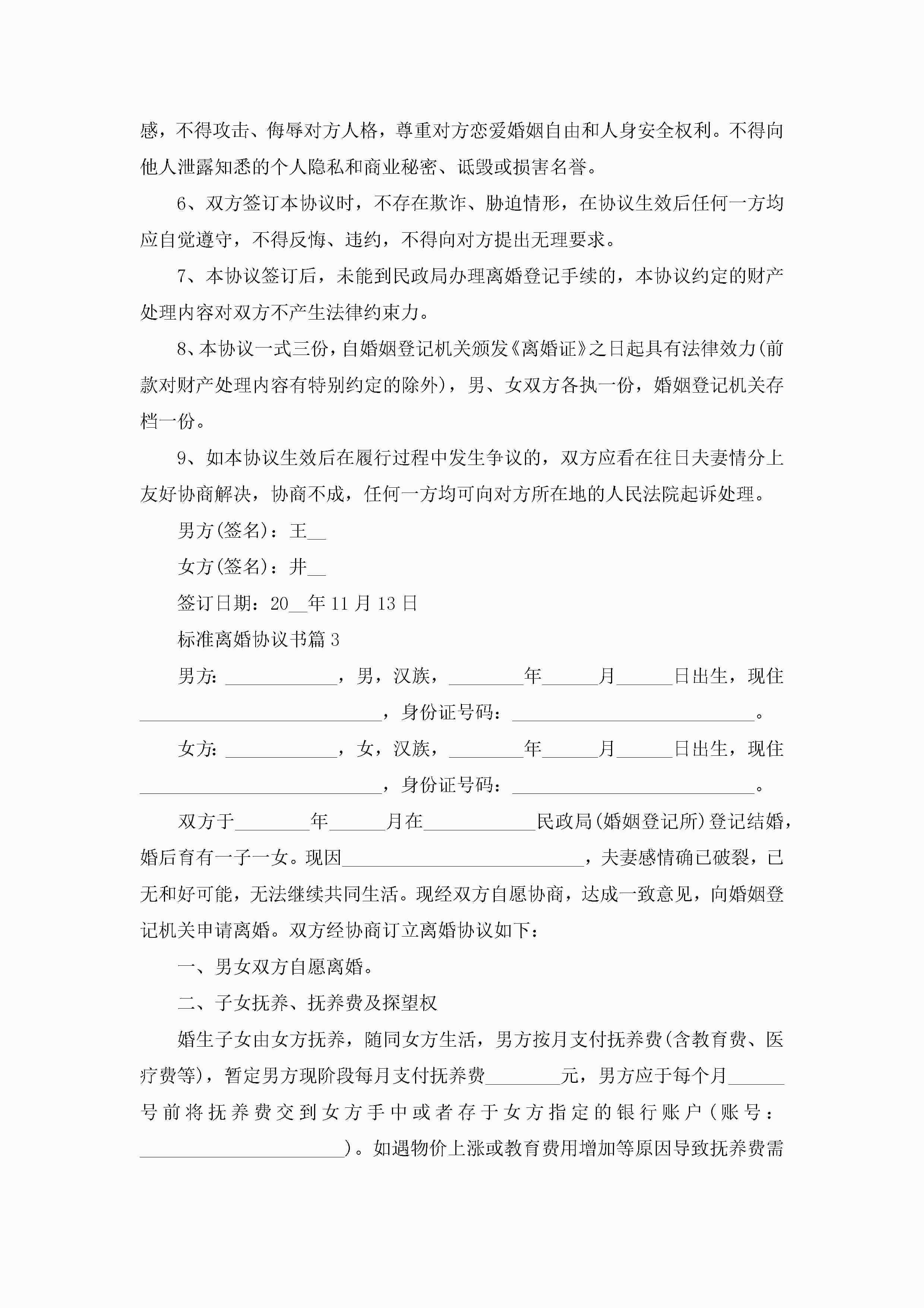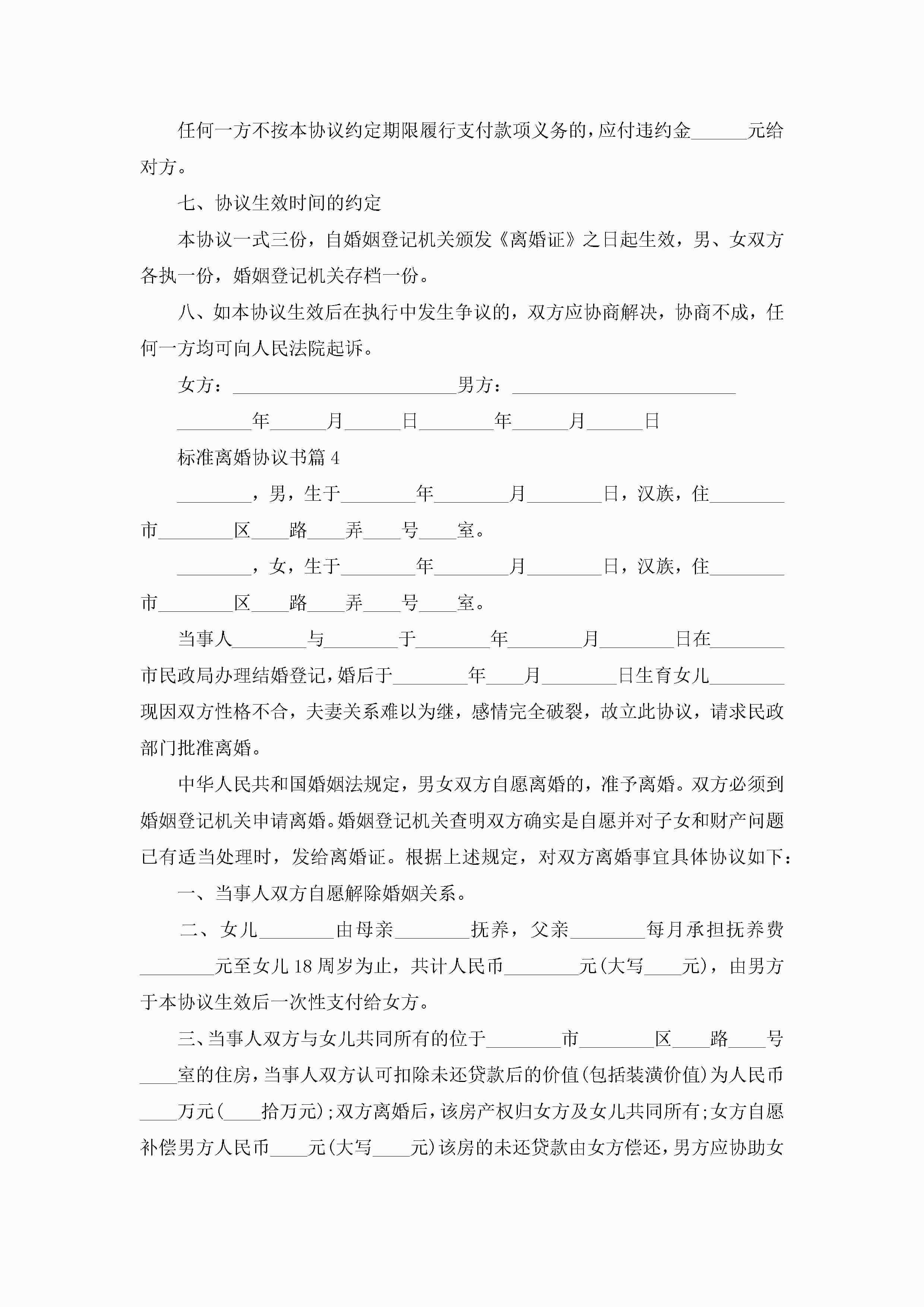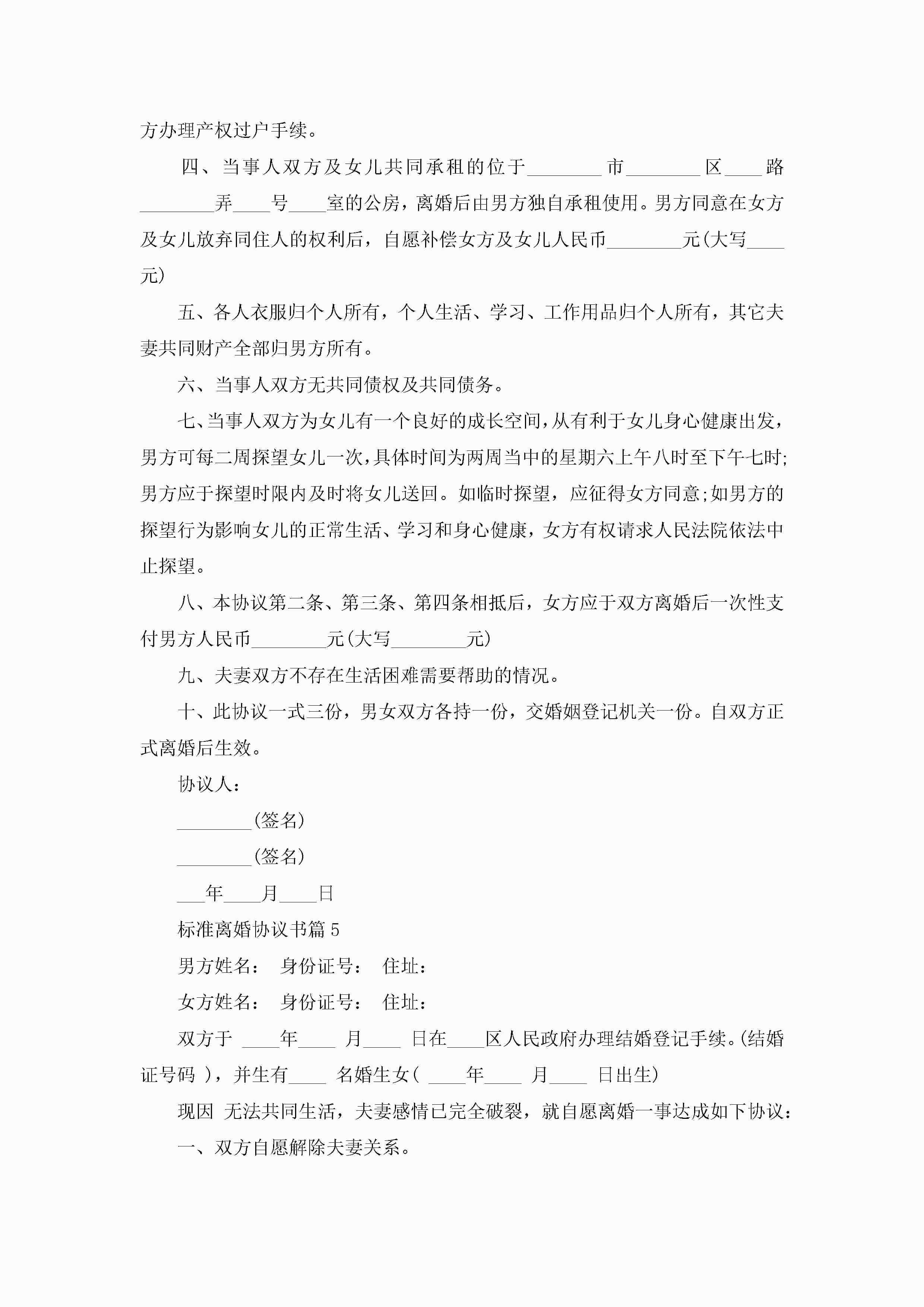 标准离婚协议书(通用7篇)jugei3月22日 12:39更新关注211 标准离婚协议书(通用7篇)此内容为付费资源,请付费后查看¥10.9 单篇文档限时特惠¥15个人会员开通企业会员开通立即下载无需登陆!可直接快捷下载单个模板付费资源© 版权声明THE ENDWord模板# 实用文档# 实用模板# 信函模板# 协议书 如有问题,可点击最底部“联系我们”联系客服 分享QQ空间微博QQ好友海报分享复制链接收藏