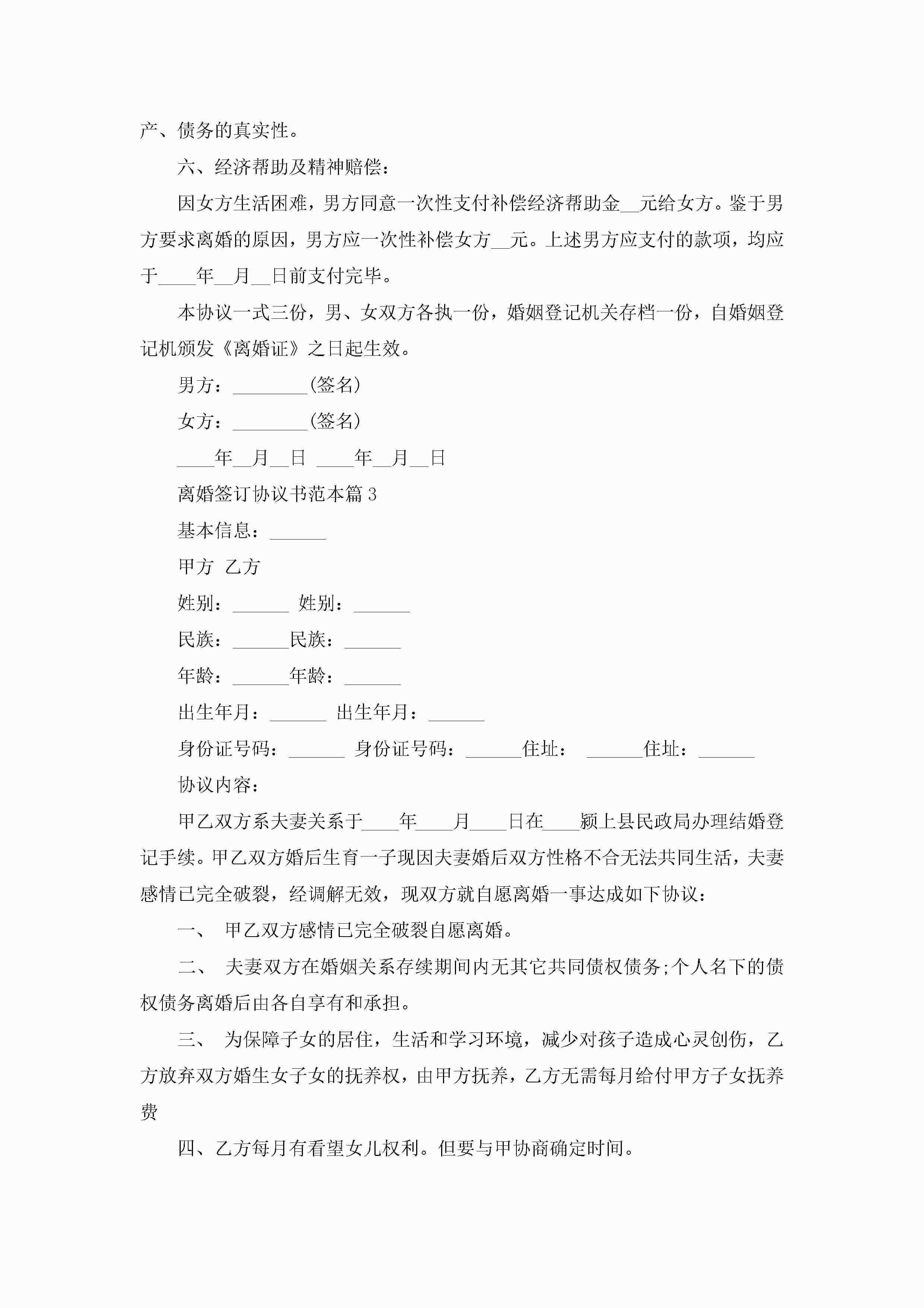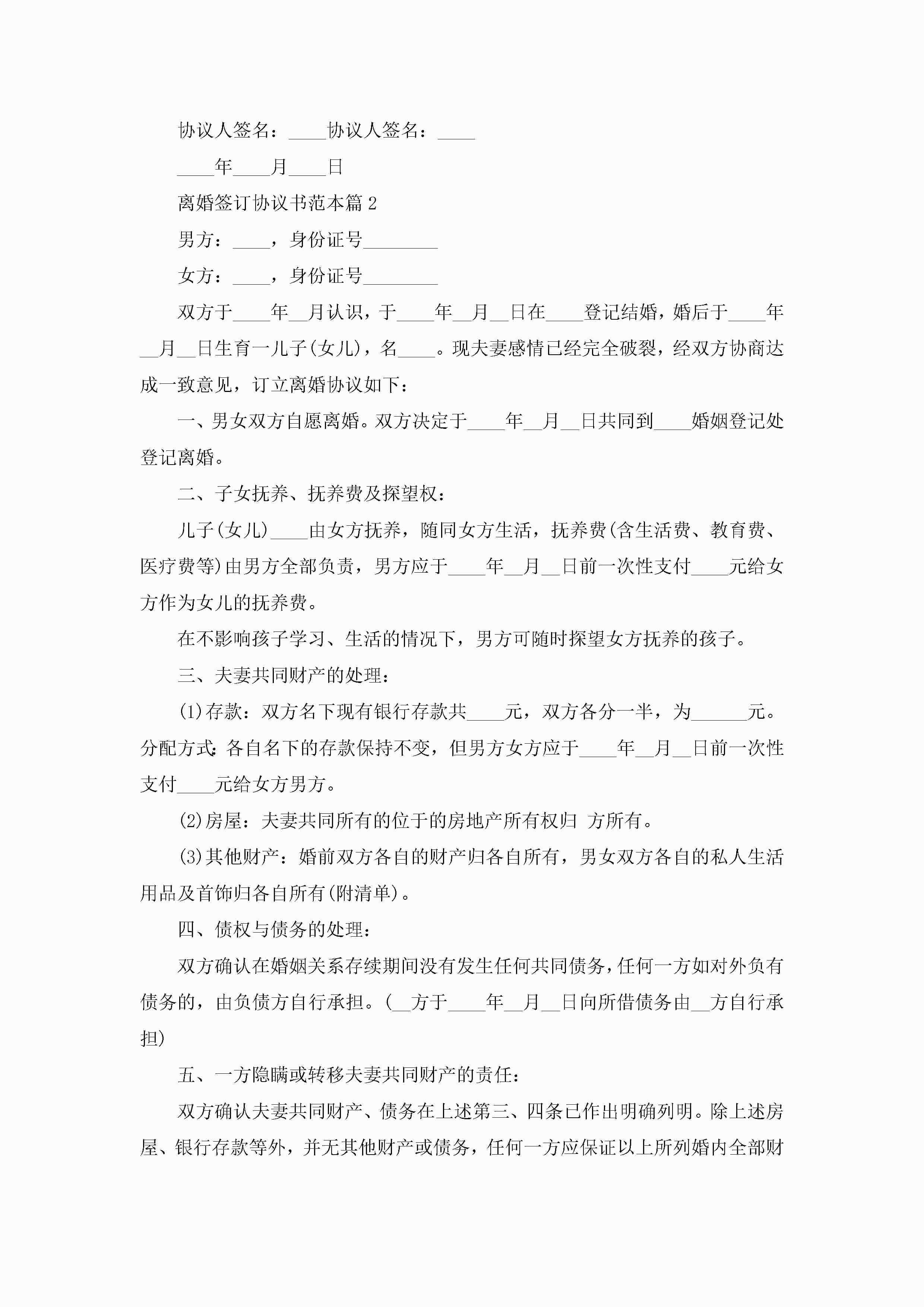 离婚签订协议书范本7篇(实用)jugei3月22日 12:39更新关注223 离婚签订协议书范本7篇(实用)此内容为付费资源,请付费后查看¥10.9 单篇文档限时特惠¥15个人会员开通企业会员开通立即下载无需登陆!可直接快捷下载单个模板付费资源© 版权声明THE ENDWord模板# 实用文档# 实用模板# 信函模板# 协议书 如有问题,可点击最底部“联系我们”联系客服 分享QQ空间微博QQ好友海报分享复制链接收藏