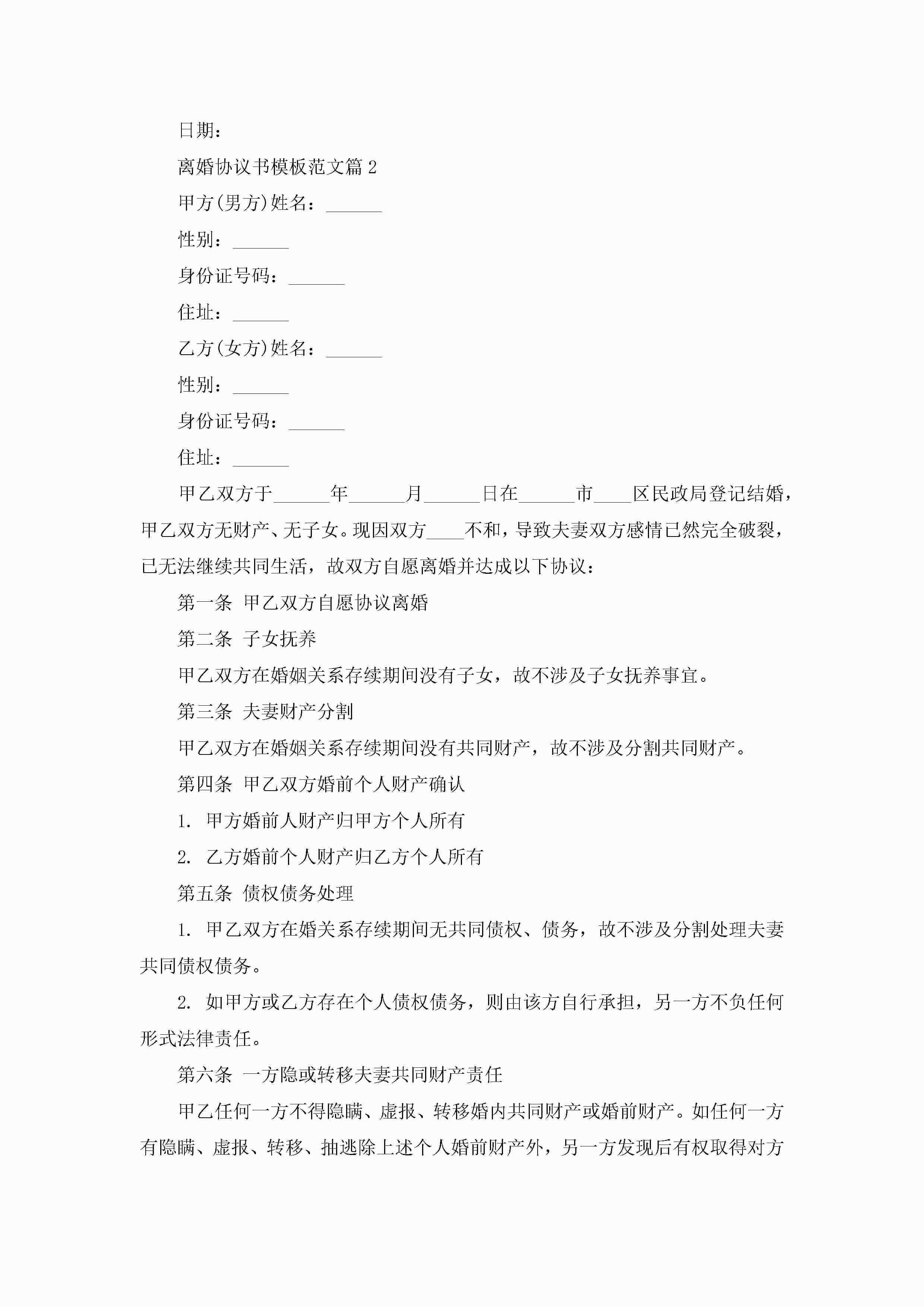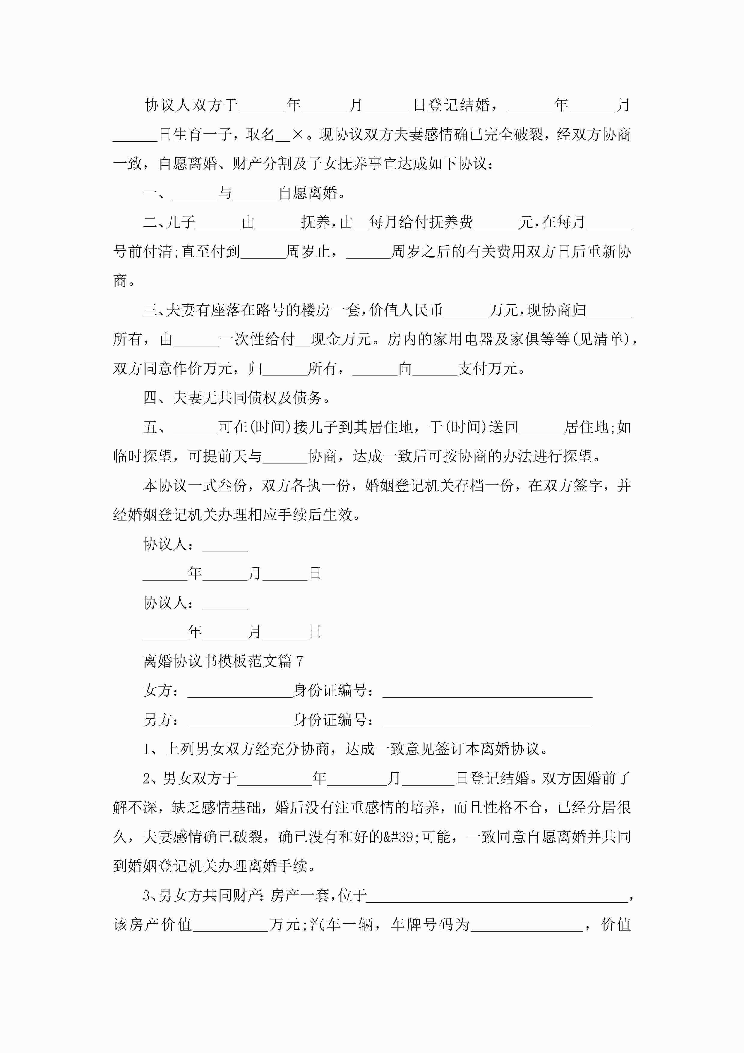 离婚协议书模板范文大全(精选10篇)jugei3月22日 12:39更新关注199 离婚协议书模板范文大全(精选10篇)此内容为付费资源,请付费后查看¥10.9 单篇文档限时特惠¥15个人会员开通企业会员开通立即下载无需登陆!可直接快捷下载单个模板付费资源© 版权声明THE ENDWord模板# 实用文档# 实用模板# 信函模板# 协议书 如有问题,可点击最底部“联系我们”联系客服 分享QQ空间微博QQ好友海报分享复制链接收藏