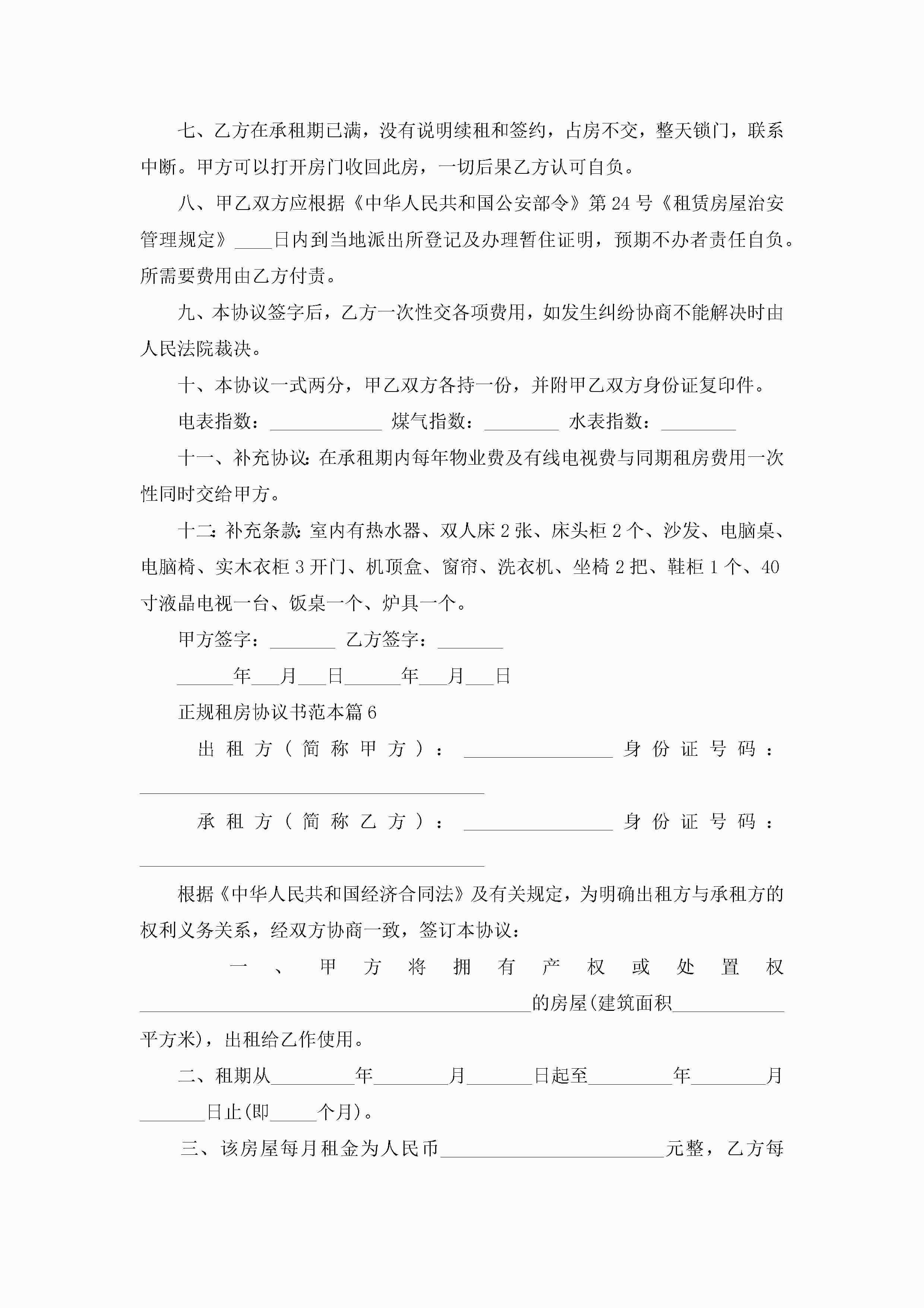 正规租房协议书范本(精选10篇)jugei3月22日 12:39更新关注197 正规租房协议书范本(精选10篇)此内容为付费资源,请付费后查看¥10.9 单篇文档限时特惠¥15个人会员开通企业会员开通立即下载无需登陆!可直接快捷下载单个模板付费资源© 版权声明THE ENDWord模板# 实用文档# 实用模板# 信函模板# 协议书 如有问题,可点击最底部“联系我们”联系客服 分享QQ空间微博QQ好友海报分享复制链接收藏