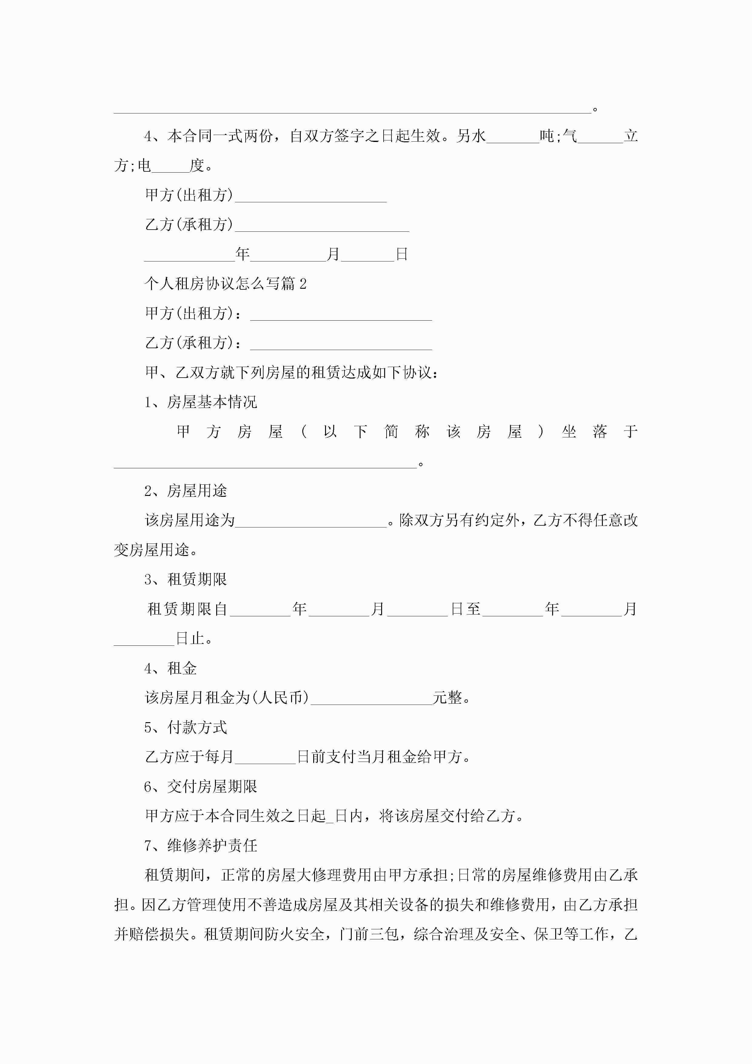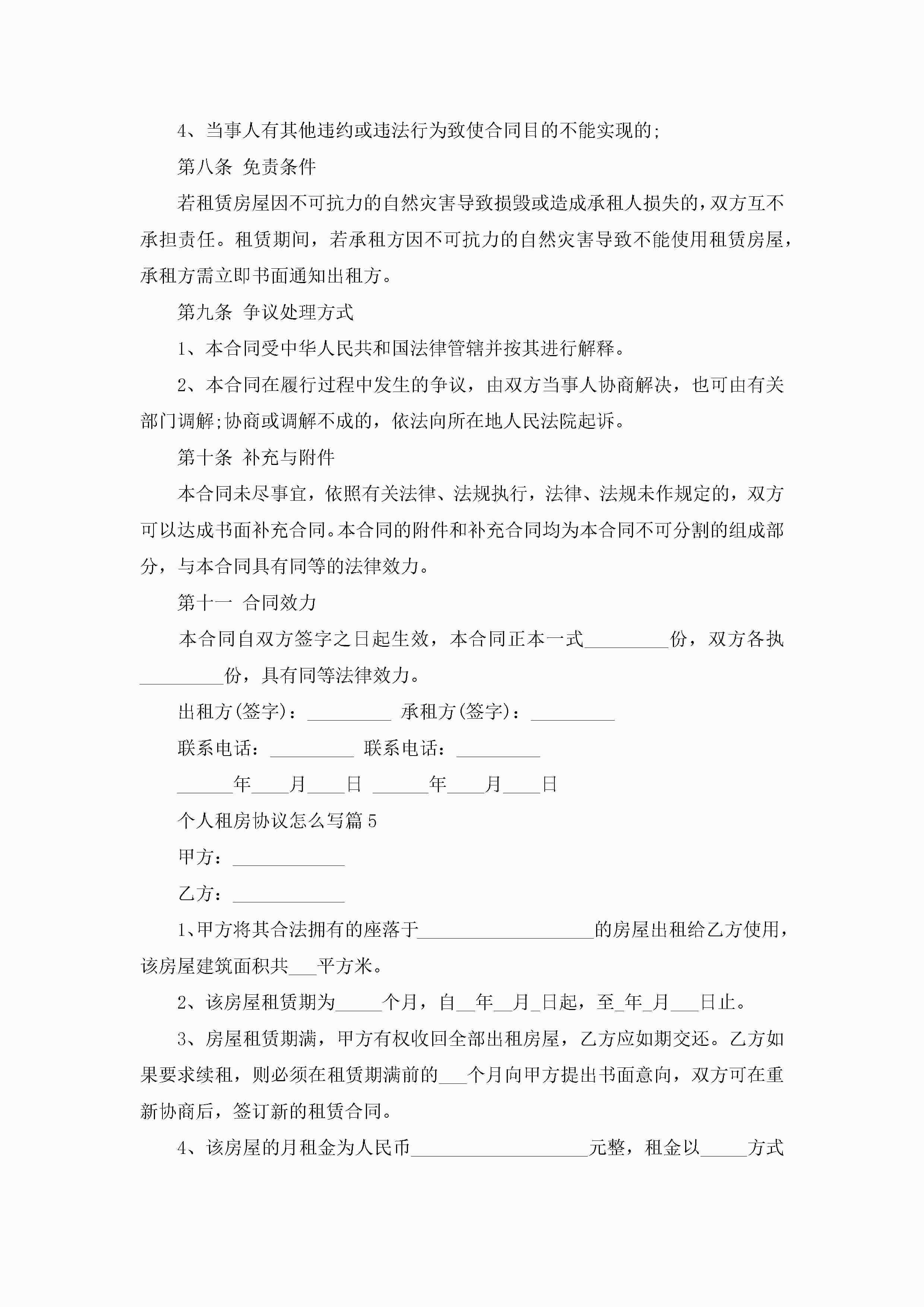 个人租房协议怎么写10篇精选jugei3月22日 12:39更新关注205 个人租房协议怎么写10篇精选此内容为付费资源,请付费后查看¥10.9 单篇文档限时特惠¥15个人会员开通企业会员开通立即下载无需登陆!可直接快捷下载单个模板付费资源© 版权声明THE ENDWord模板# 实用文档# 实用模板# 信函模板# 协议书 如有问题,可点击最底部“联系我们”联系客服 分享QQ空间微博QQ好友海报分享复制链接收藏