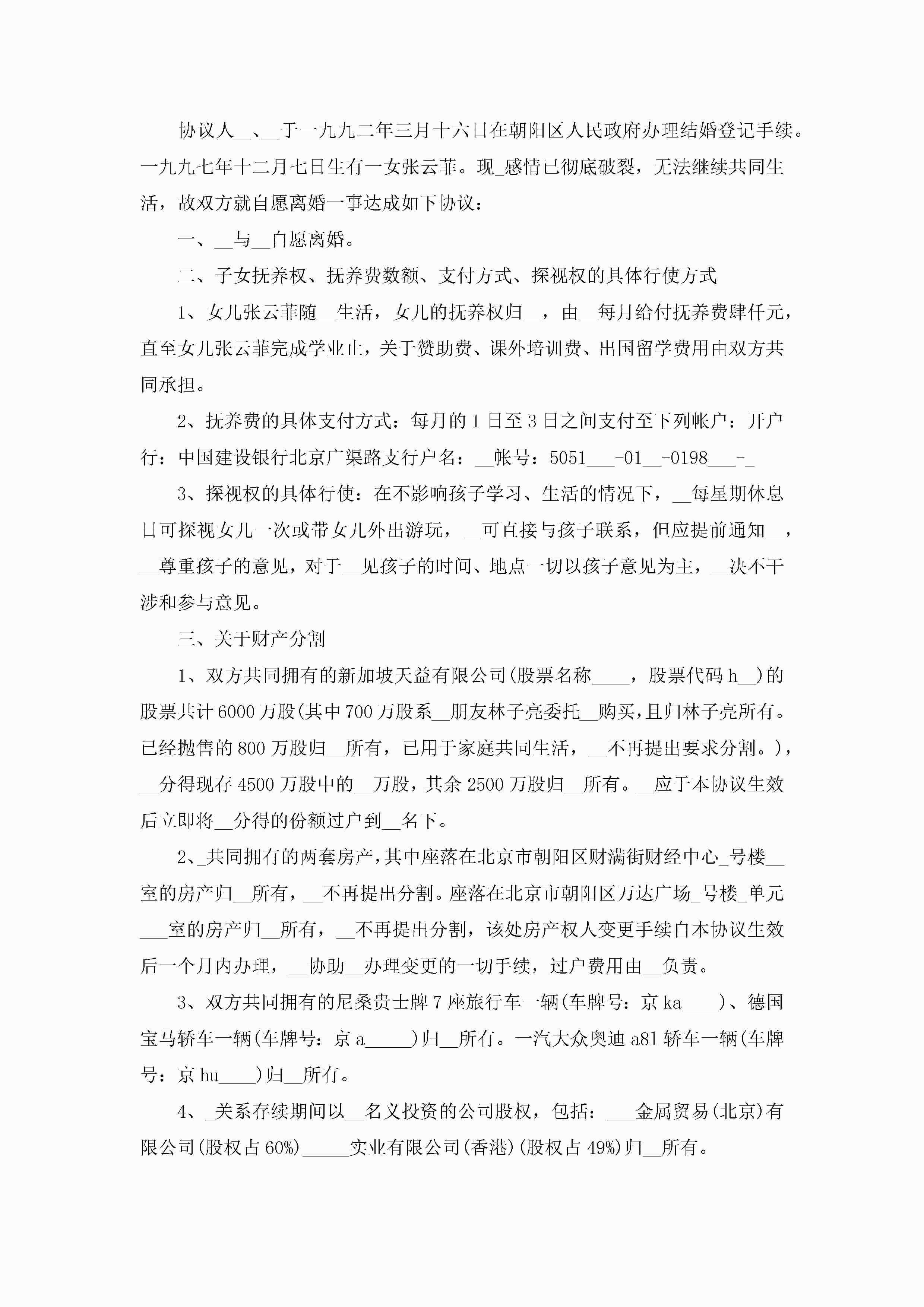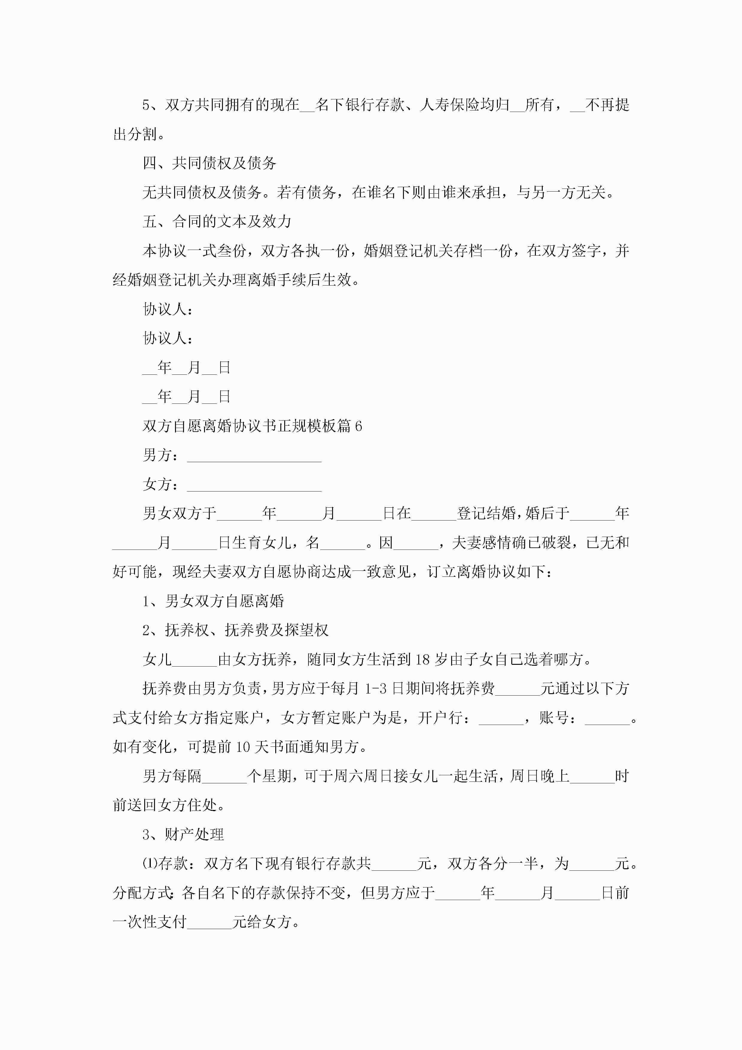 双方自愿离婚协议书正规模板10篇精选jugei3月22日 12:39更新关注201 双方自愿离婚协议书正规模板10篇精选此内容为付费资源,请付费后查看¥10.9 单篇文档限时特惠¥15个人会员开通企业会员开通立即下载无需登陆!可直接快捷下载单个模板付费资源© 版权声明THE ENDWord模板# 实用文档# 实用模板# 信函模板# 协议书 如有问题,可点击最底部“联系我们”联系客服 分享QQ空间微博QQ好友海报分享复制链接收藏
