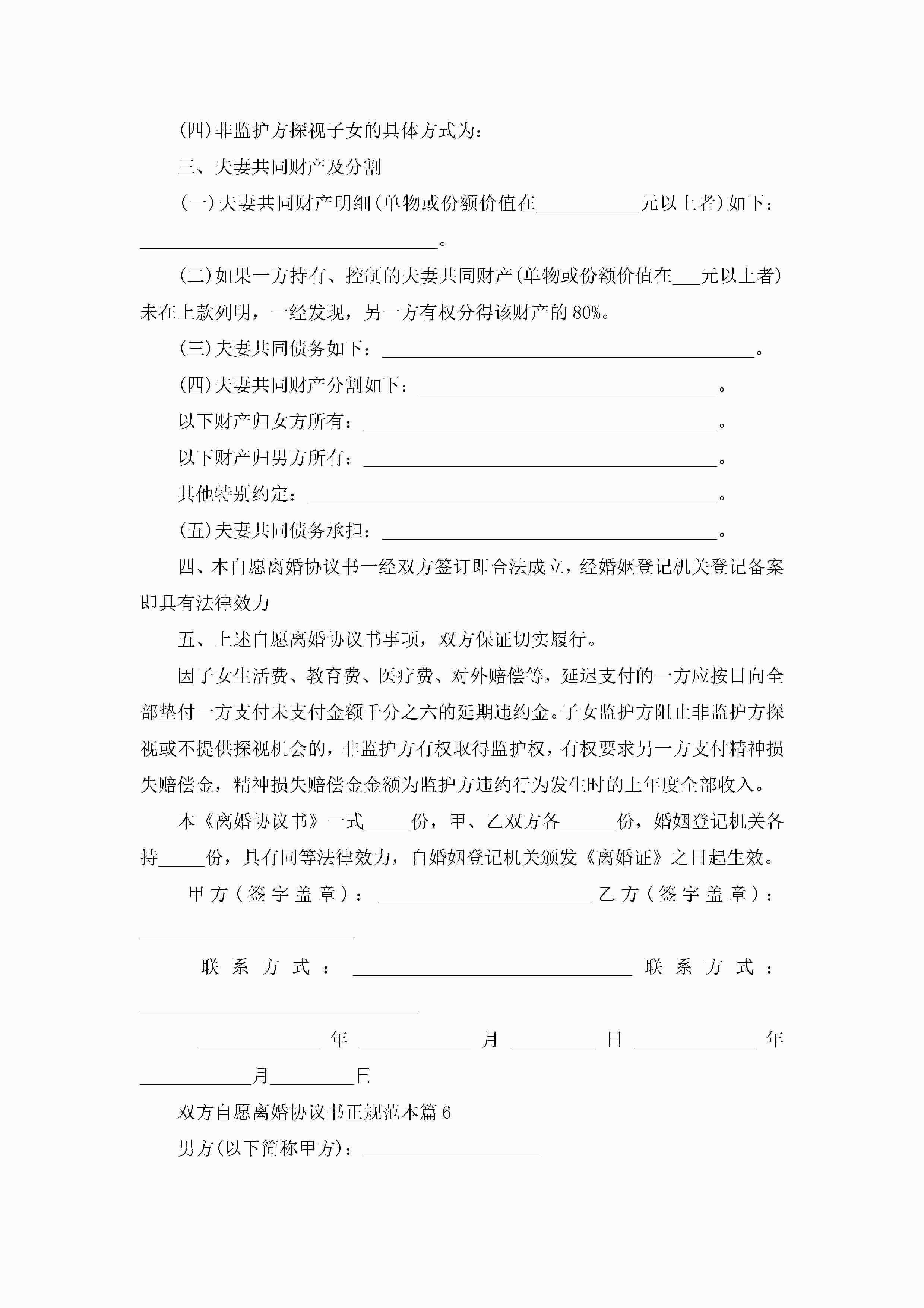 双方自愿离婚协议书正规范本10篇精选jugei3月22日 12:39更新关注192 双方自愿离婚协议书正规范本10篇精选此内容为付费资源,请付费后查看¥10.9 单篇文档限时特惠¥15个人会员开通企业会员开通立即下载无需登陆!可直接快捷下载单个模板付费资源© 版权声明THE ENDWord模板# 实用文档# 实用模板# 信函模板# 协议书 如有问题,可点击最底部“联系我们”联系客服 分享QQ空间微博QQ好友海报分享复制链接收藏