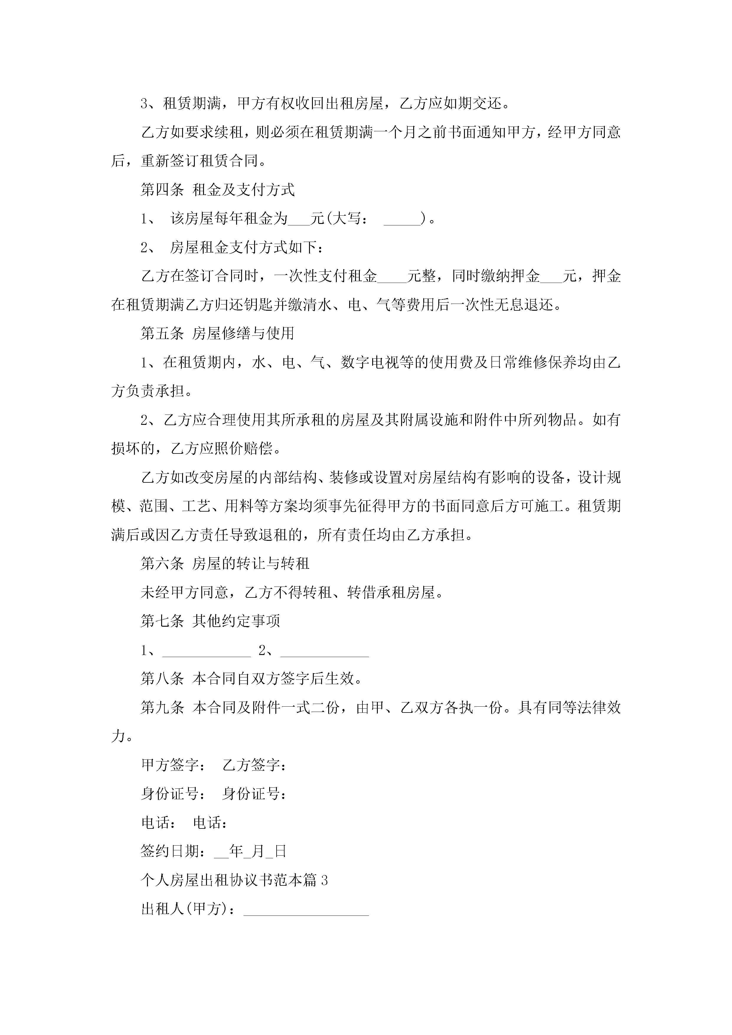 个人房屋出租协议书范本10篇精选jugei3月22日 12:39更新关注219 个人房屋出租协议书范本10篇精选此内容为付费资源,请付费后查看¥10.9 单篇文档限时特惠¥15个人会员开通企业会员开通立即下载无需登陆!可直接快捷下载单个模板付费资源© 版权声明THE ENDWord模板# 实用文档# 实用模板# 信函模板# 协议书 如有问题,可点击最底部“联系我们”联系客服 分享QQ空间微博QQ好友海报分享复制链接收藏
