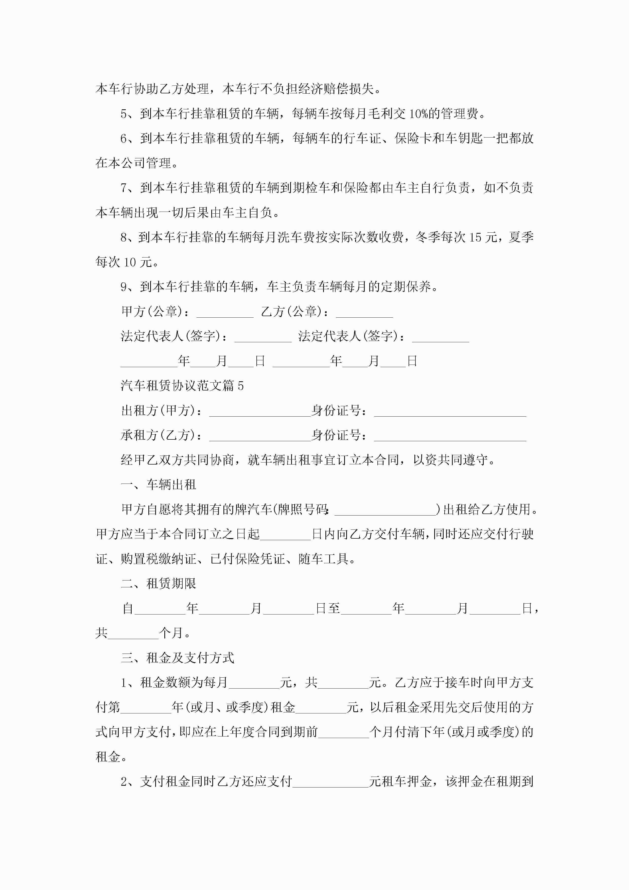 汽车租赁协议范文10篇精选jugei3月22日 12:39更新关注193 汽车租赁协议范文10篇精选此内容为付费资源,请付费后查看¥10.9 单篇文档限时特惠¥15个人会员开通企业会员开通立即下载无需登陆!可直接快捷下载单个模板付费资源© 版权声明THE ENDWord模板# 实用文档# 实用模板# 信函模板# 协议书 如有问题,可点击最底部“联系我们”联系客服 分享QQ空间微博QQ好友海报分享复制链接收藏