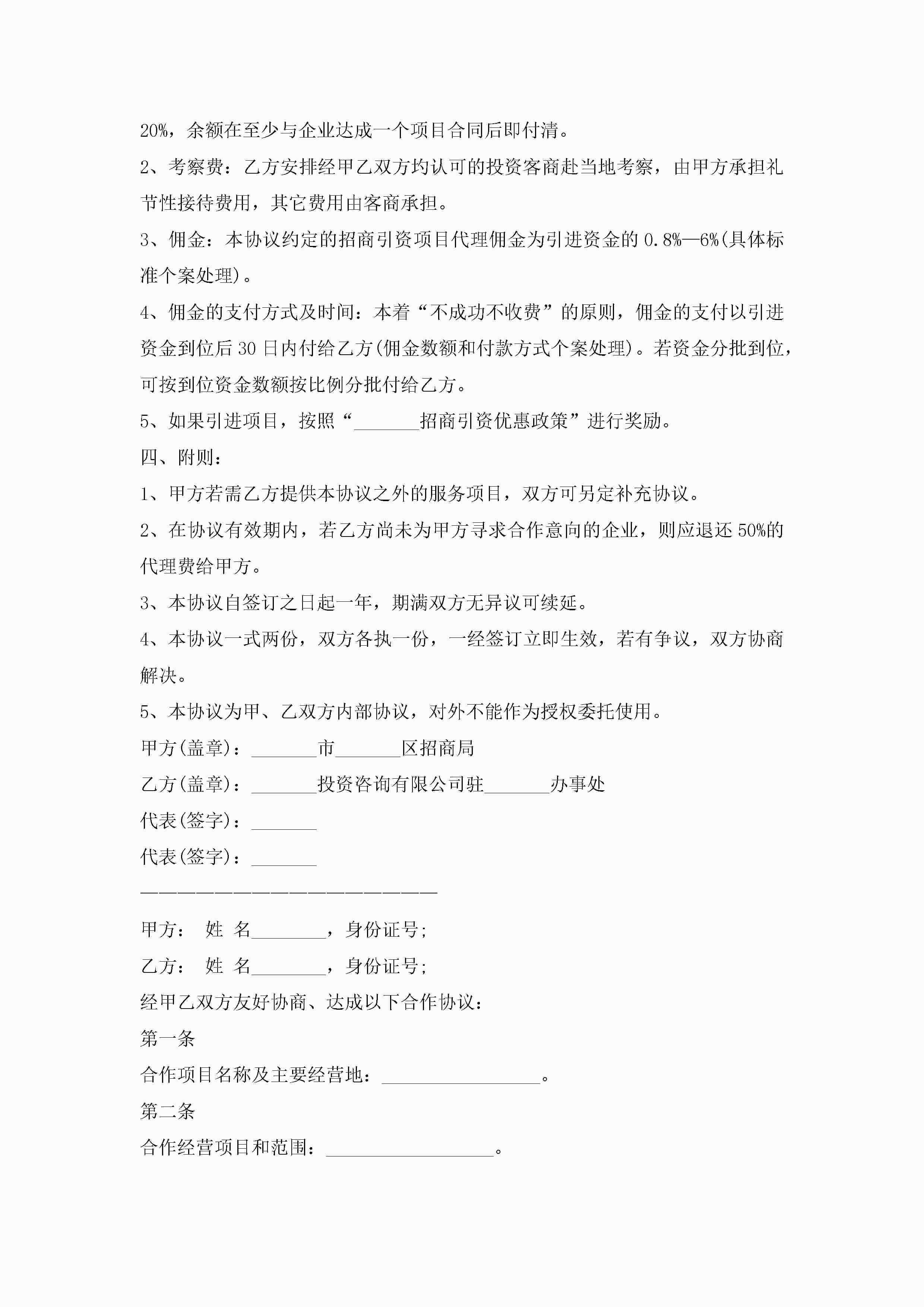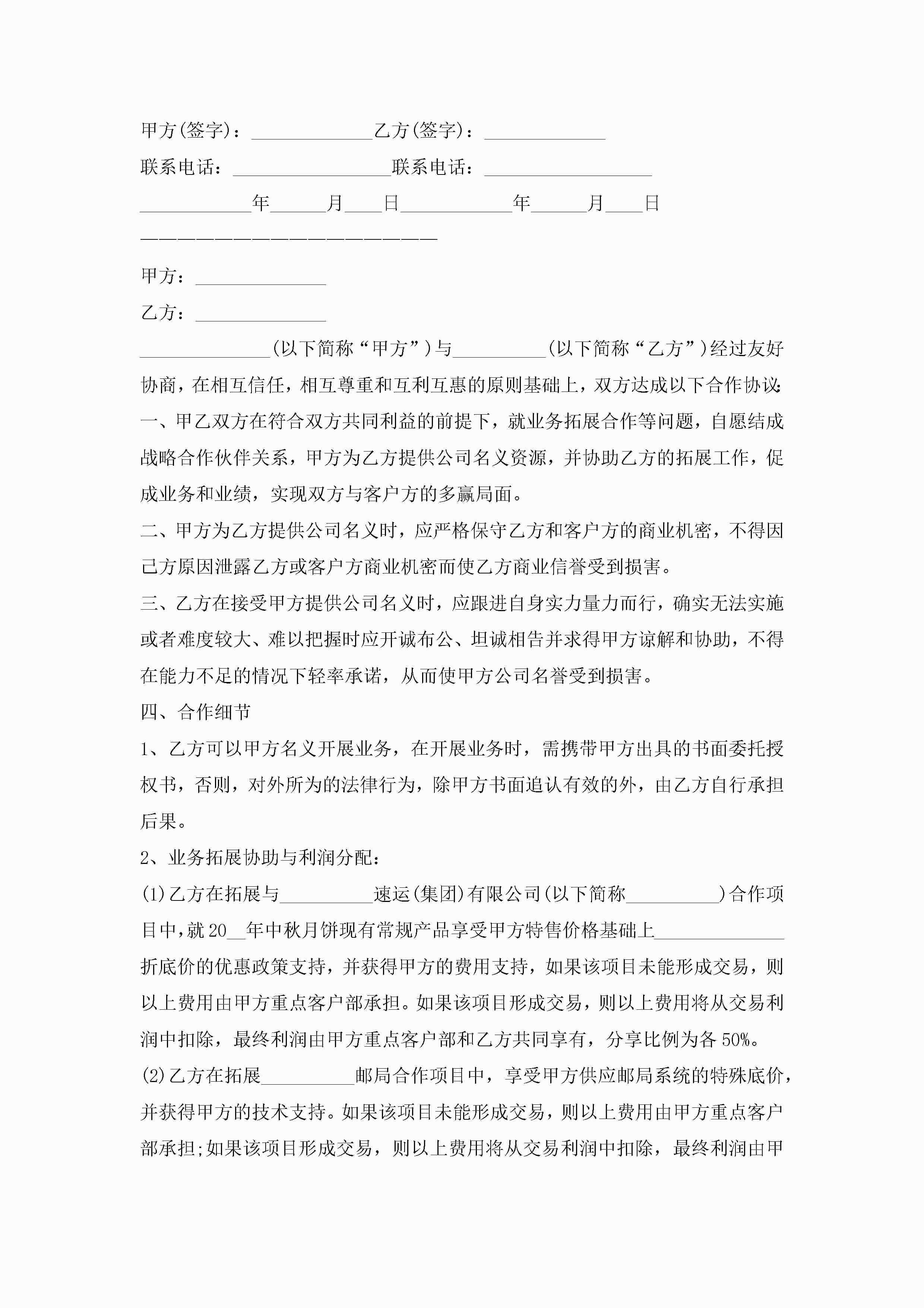 项目合作协议模板7篇(实用)jugei3月22日 12:39更新关注203 项目合作协议模板7篇(实用)此内容为付费资源,请付费后查看¥10.9 单篇文档限时特惠¥15个人会员开通企业会员开通立即下载无需登陆!可直接快捷下载单个模板付费资源© 版权声明THE ENDWord模板# 实用文档# 实用模板# 信函模板# 协议书 如有问题,可点击最底部“联系我们”联系客服 分享QQ空间微博QQ好友海报分享复制链接收藏
