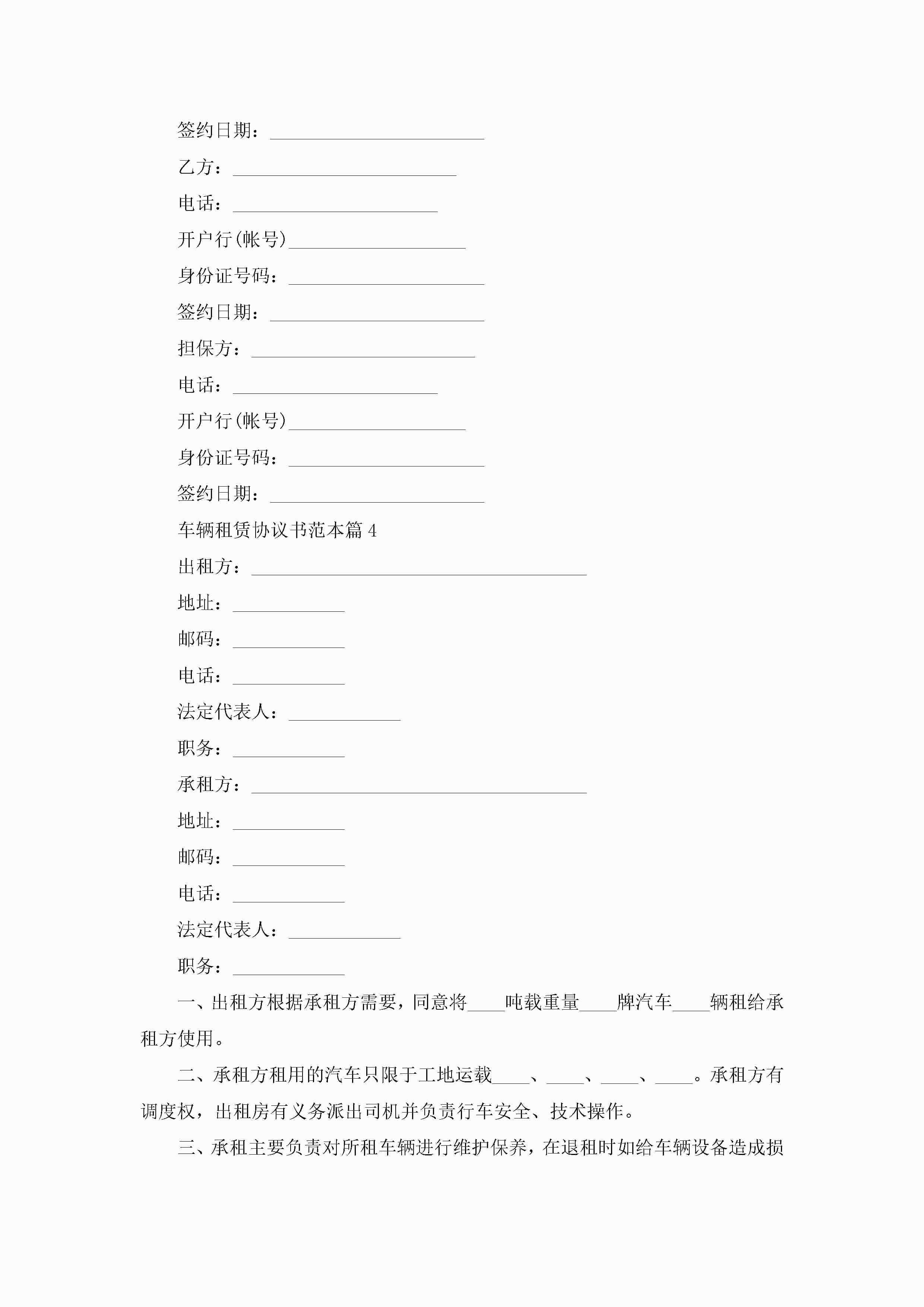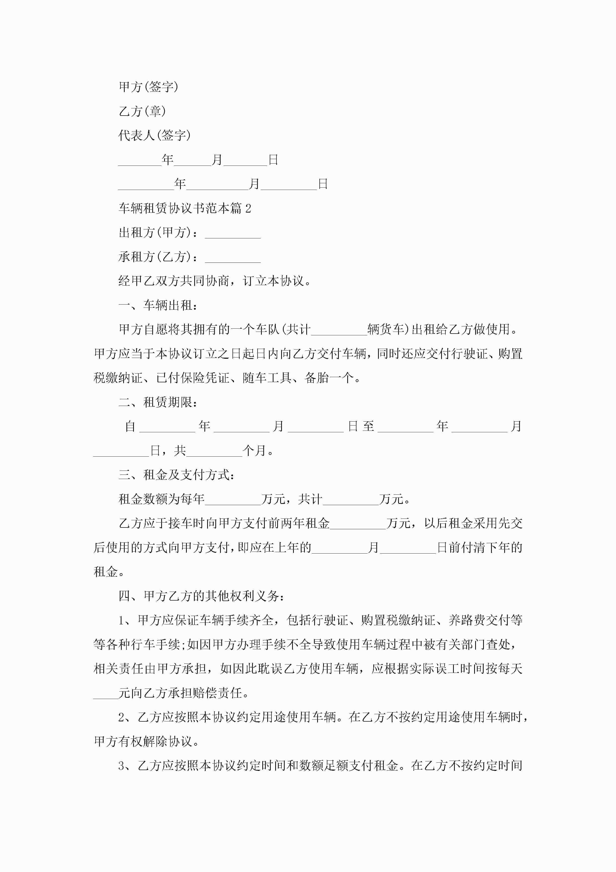车辆租赁协议书范本(精选10篇)jugei3月22日 12:39更新关注198 车辆租赁协议书范本(精选10篇)此内容为付费资源,请付费后查看¥10.9 单篇文档限时特惠¥15个人会员开通企业会员开通立即下载无需登陆!可直接快捷下载单个模板付费资源© 版权声明THE ENDWord模板# 实用文档# 实用模板# 信函模板# 协议书 如有问题,可点击最底部“联系我们”联系客服 分享QQ空间微博QQ好友海报分享复制链接收藏