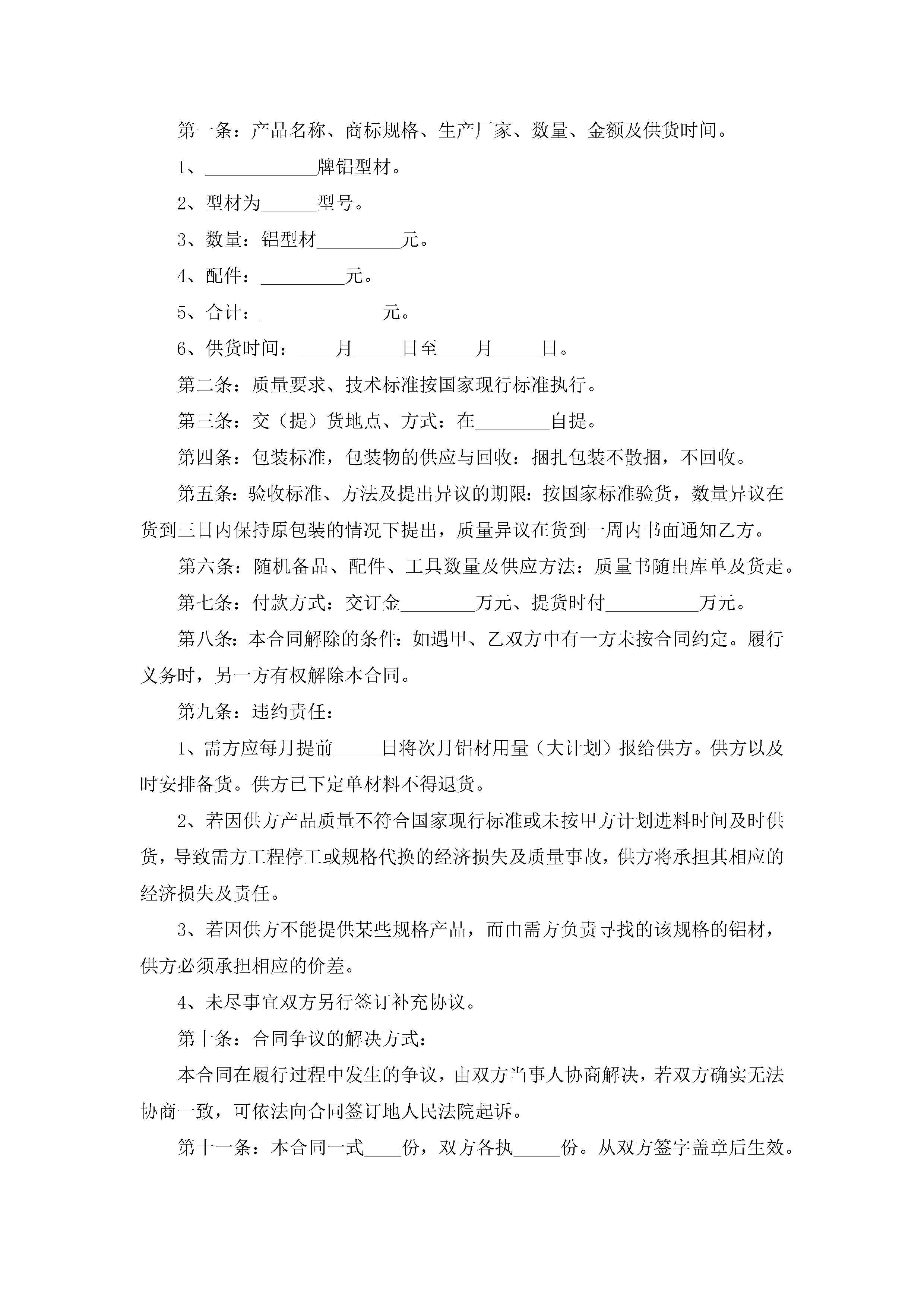 铝型材购销合同协议书5篇jugei3月22日 12:39更新关注208 铝型材购销合同协议书5篇此内容为付费资源,请付费后查看¥10.9 单篇文档限时特惠¥15个人会员开通企业会员开通立即下载无需登陆!可直接快捷下载单个模板付费资源© 版权声明THE ENDWord模板# 实用文档# 信函模板# 协议书# 铝型材购销合同协议书 如有问题,可点击最底部“联系我们”联系客服 分享QQ空间微博QQ好友海报分享复制链接收藏