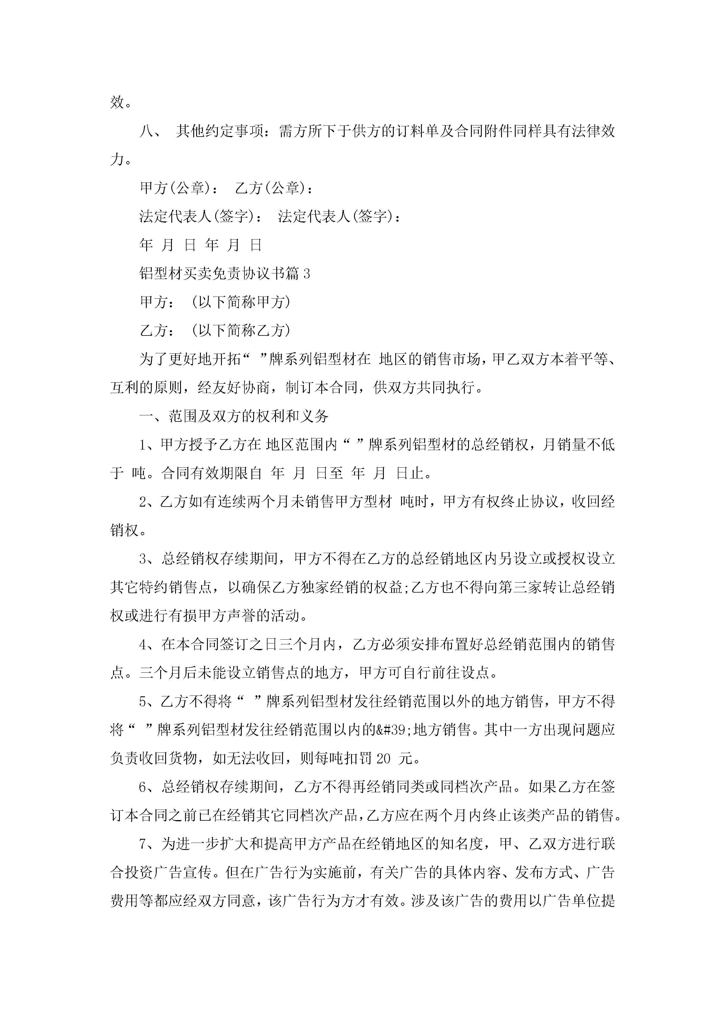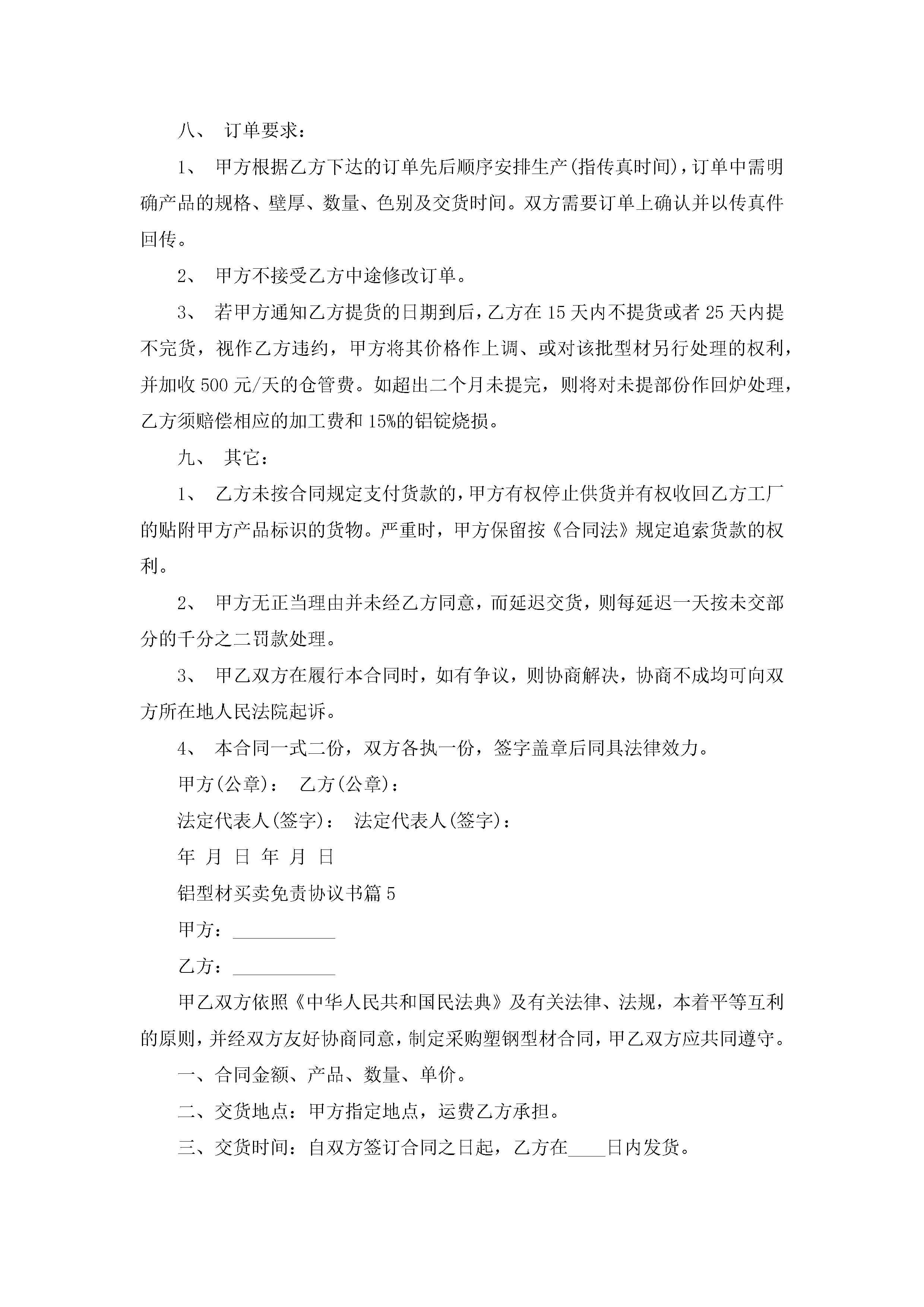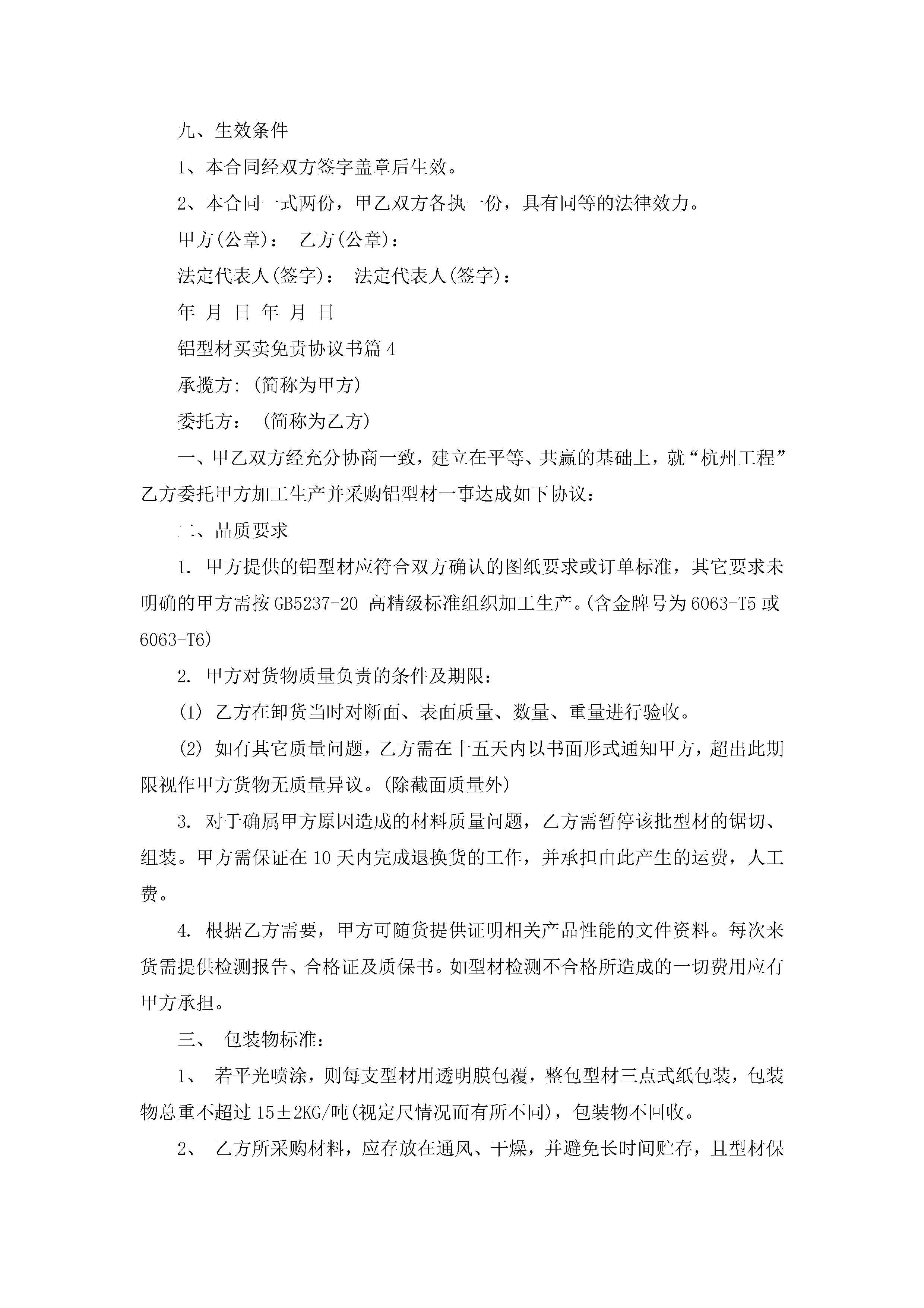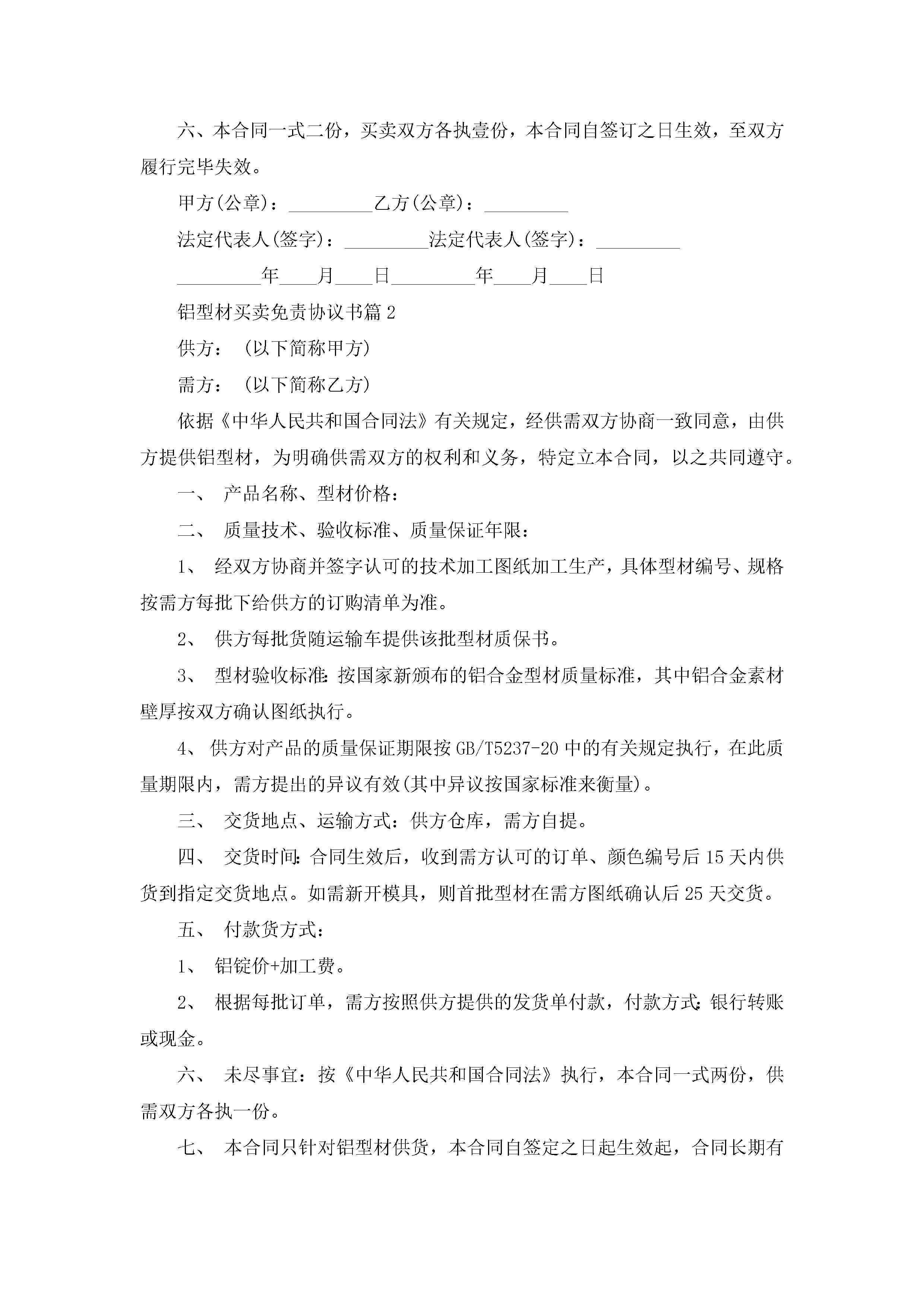 铝型材买卖免责协议书5篇jugei3月22日 12:39更新关注200 铝型材买卖免责协议书5篇此内容为付费资源,请付费后查看¥10.9 单篇文档限时特惠¥15个人会员开通企业会员开通立即下载无需登陆!可直接快捷下载单个模板付费资源© 版权声明THE ENDWord模板# 实用文档# 信函模板# 协议书# 铝型材买卖免责协议书 如有问题,可点击最底部“联系我们”联系客服 分享QQ空间微博QQ好友海报分享复制链接收藏