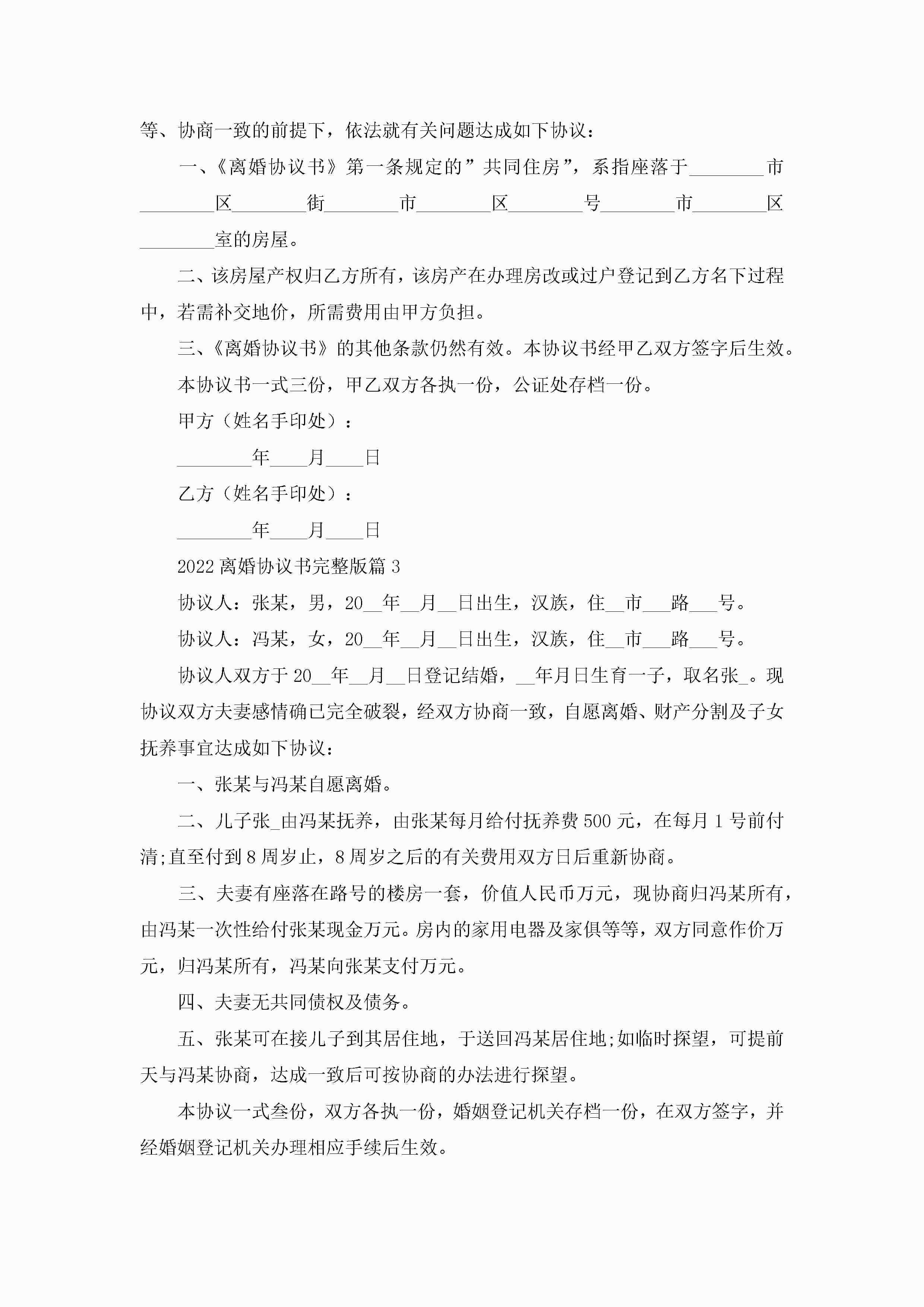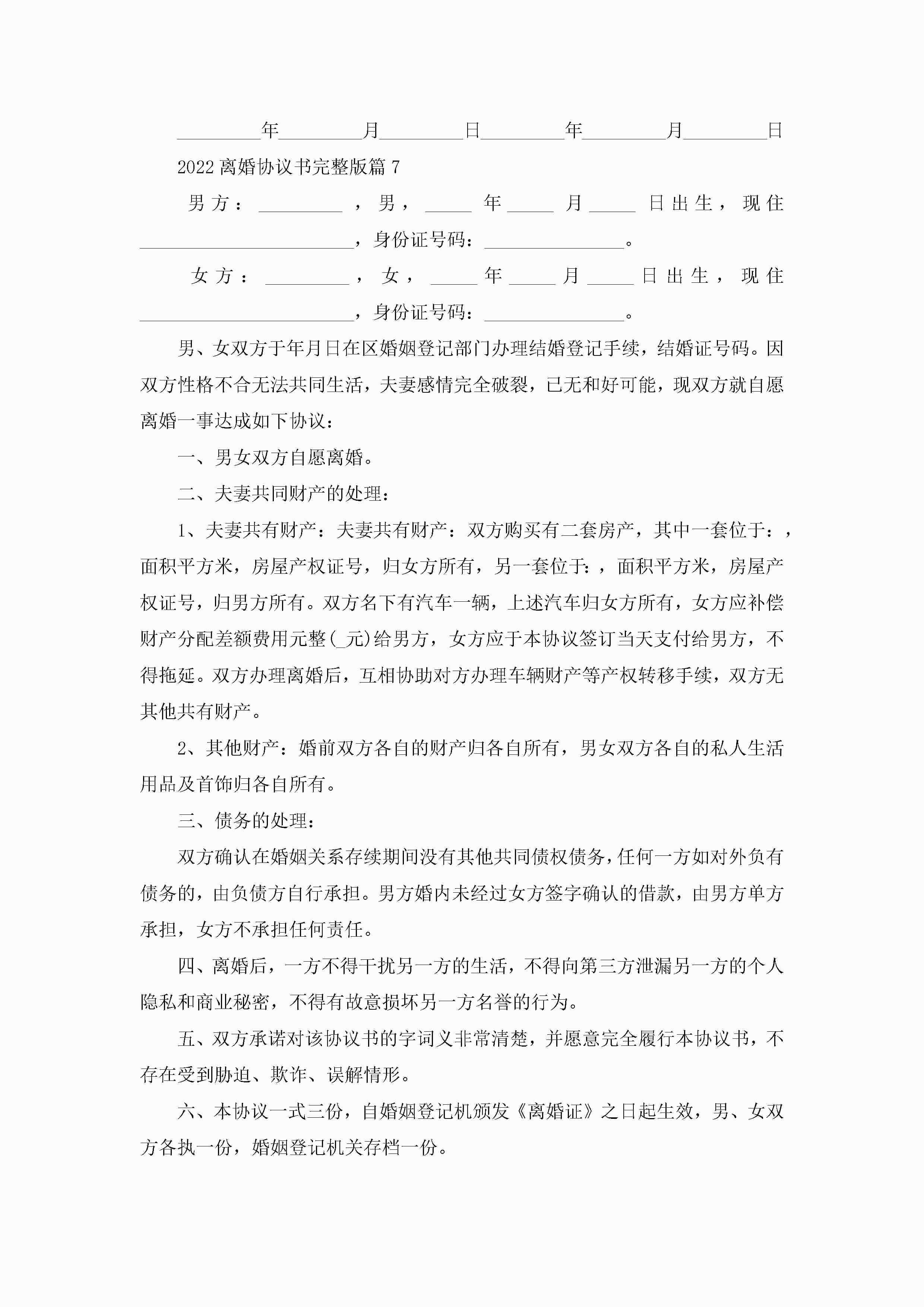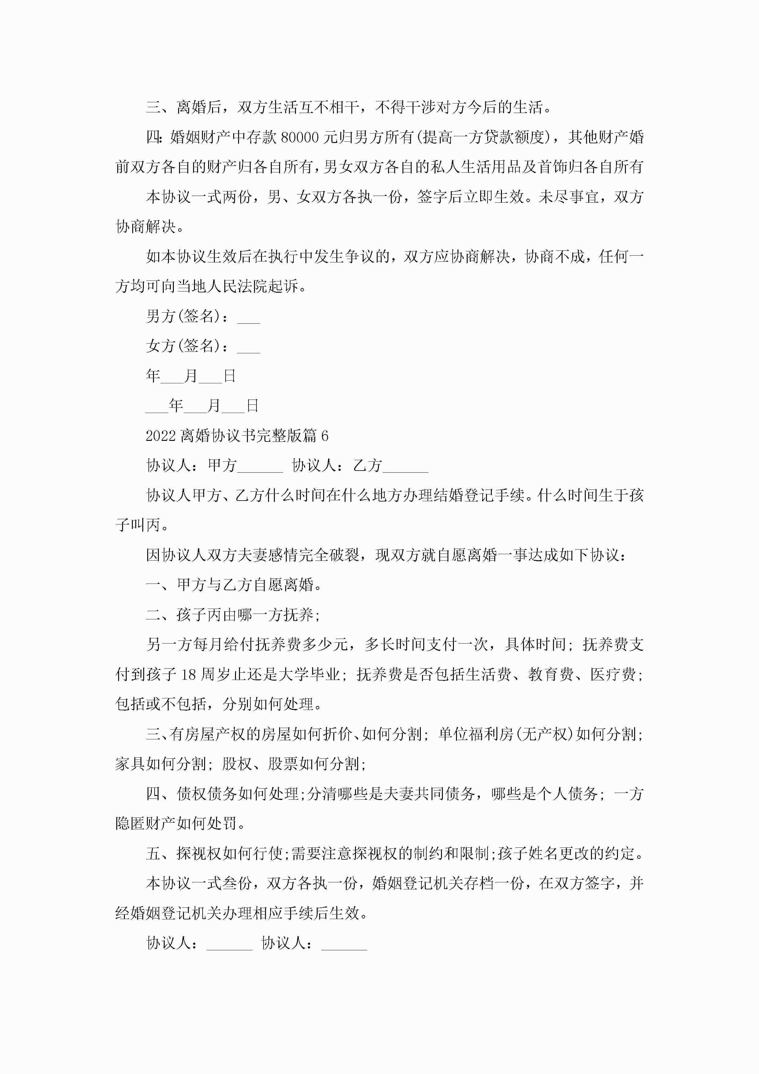 2022离婚协议书完整版8篇(精选)jugei3月22日 12:39更新关注222 2022离婚协议书完整版8篇(精选)此内容为付费资源,请付费后查看¥10.9 单篇文档限时特惠¥15个人会员开通企业会员开通立即下载无需登陆!可直接快捷下载单个模板付费资源© 版权声明THE ENDWord模板# 实用文档# 实用模板# 信函模板# 协议书 如有问题,可点击最底部“联系我们”联系客服 分享QQ空间微博QQ好友海报分享复制链接收藏