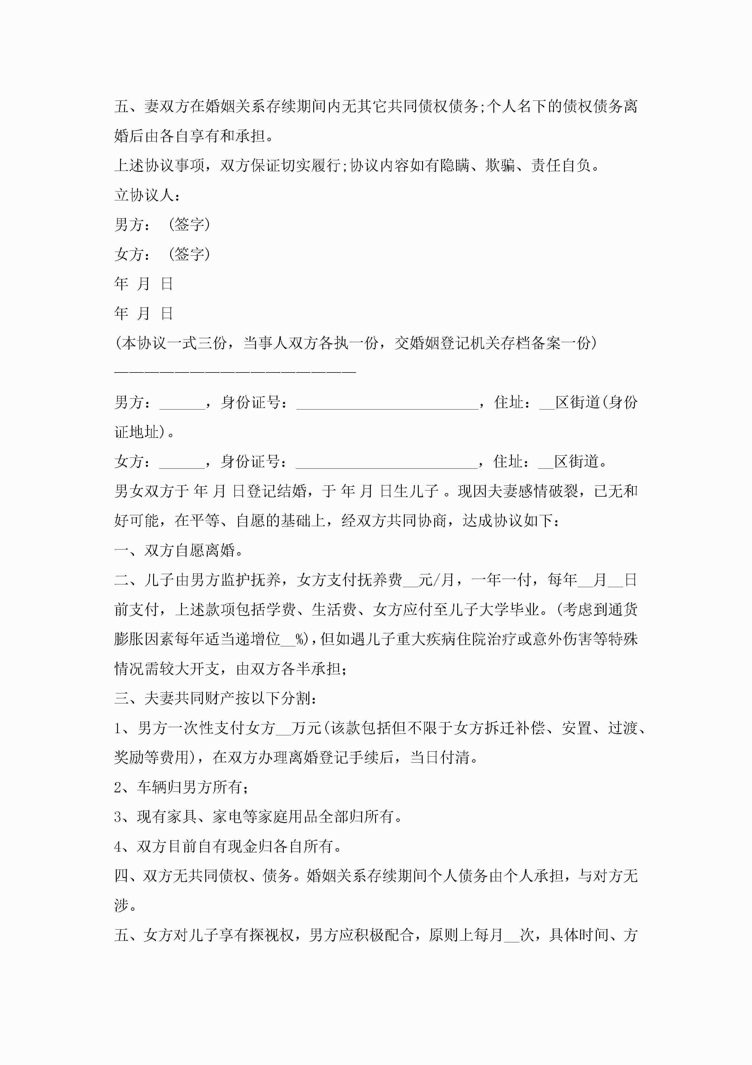 离婚协议书2022最新7篇jugei3月22日 12:39更新关注190 离婚协议书2022最新7篇此内容为付费资源,请付费后查看¥10.9 单篇文档限时特惠¥15个人会员开通企业会员开通立即下载无需登陆!可直接快捷下载单个模板付费资源© 版权声明THE ENDWord模板# 实用文档# 实用模板# 信函模板# 协议书 如有问题,可点击最底部“联系我们”联系客服 分享QQ空间微博QQ好友海报分享复制链接收藏