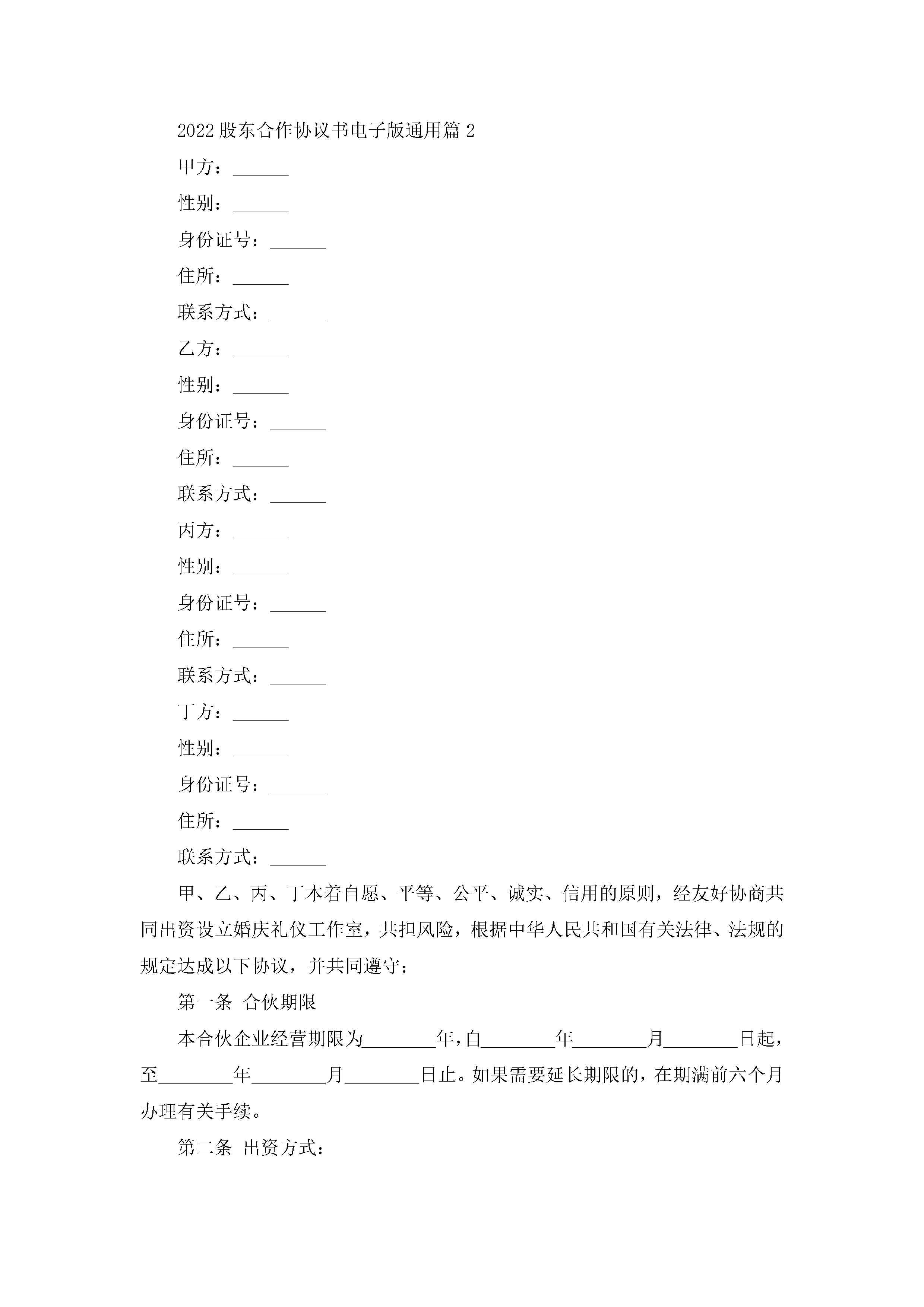 2022股东合作协议书电子版通用(5篇)jugei3月22日 12:39更新关注194 2022股东合作协议书电子版通用(5篇)此内容为付费资源,请付费后查看¥10.9 单篇文档限时特惠¥15个人会员开通企业会员开通立即下载无需登陆!可直接快捷下载单个模板付费资源© 版权声明THE ENDWord模板# 实用文档# 实用模板# 信函模板# 协议书 如有问题,可点击最底部“联系我们”联系客服 分享QQ空间微博QQ好友海报分享复制链接收藏