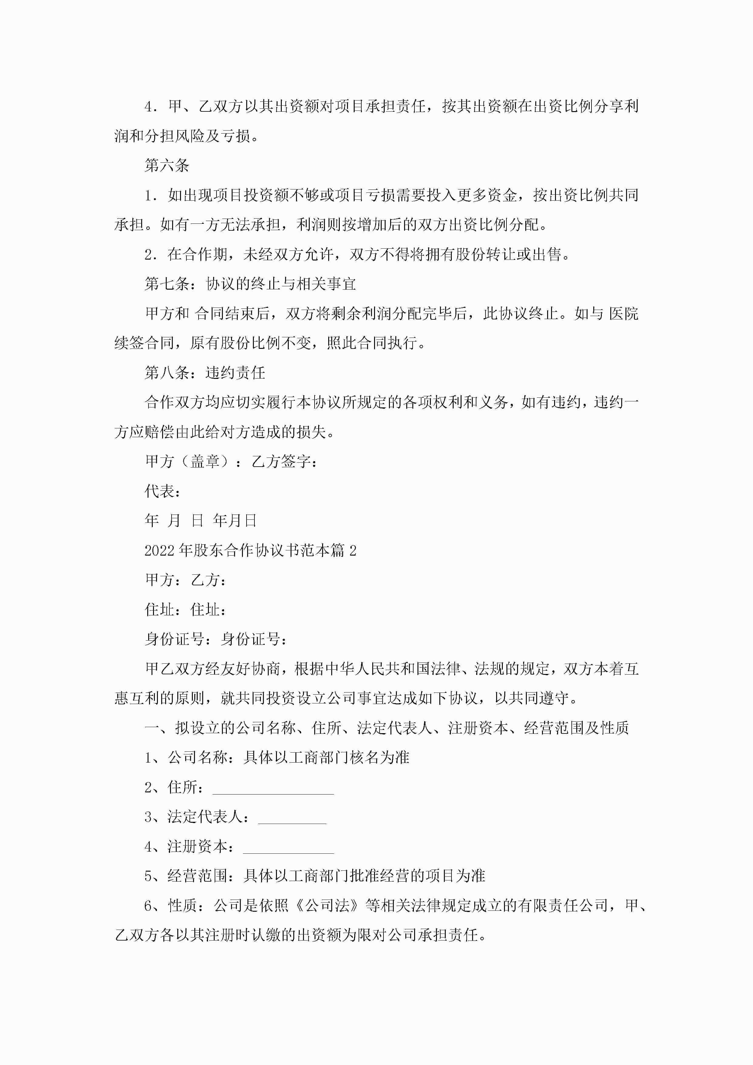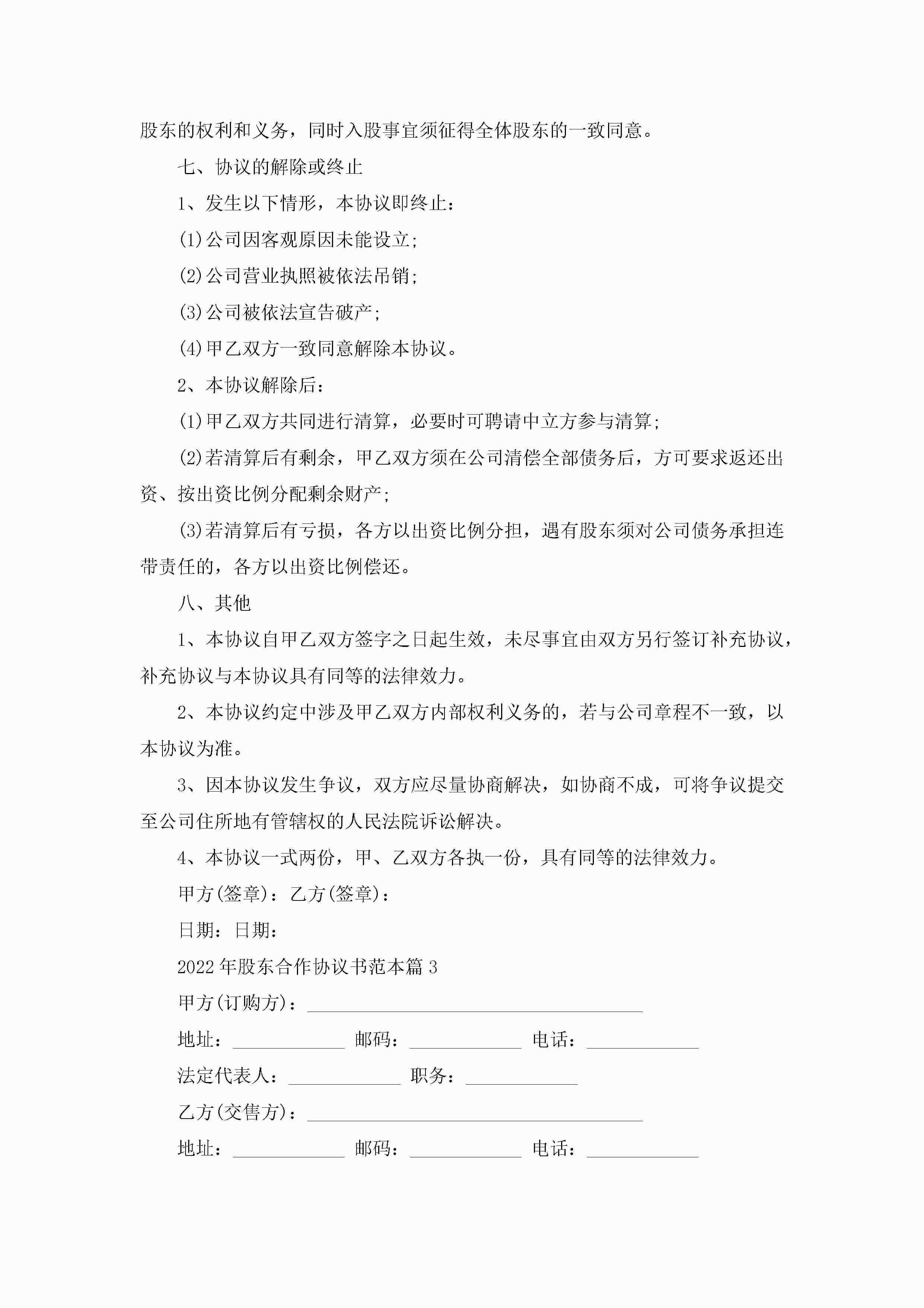 2022年股东合作协议书范本(精选8篇)jugei3月22日 12:39更新关注197 2022年股东合作协议书范本(精选8篇)此内容为付费资源,请付费后查看¥10.9 单篇文档限时特惠¥15个人会员开通企业会员开通立即下载无需登陆!可直接快捷下载单个模板付费资源© 版权声明THE ENDWord模板# 实用文档# 实用模板# 信函模板# 协议书 如有问题,可点击最底部“联系我们”联系客服 分享QQ空间微博QQ好友海报分享复制链接收藏