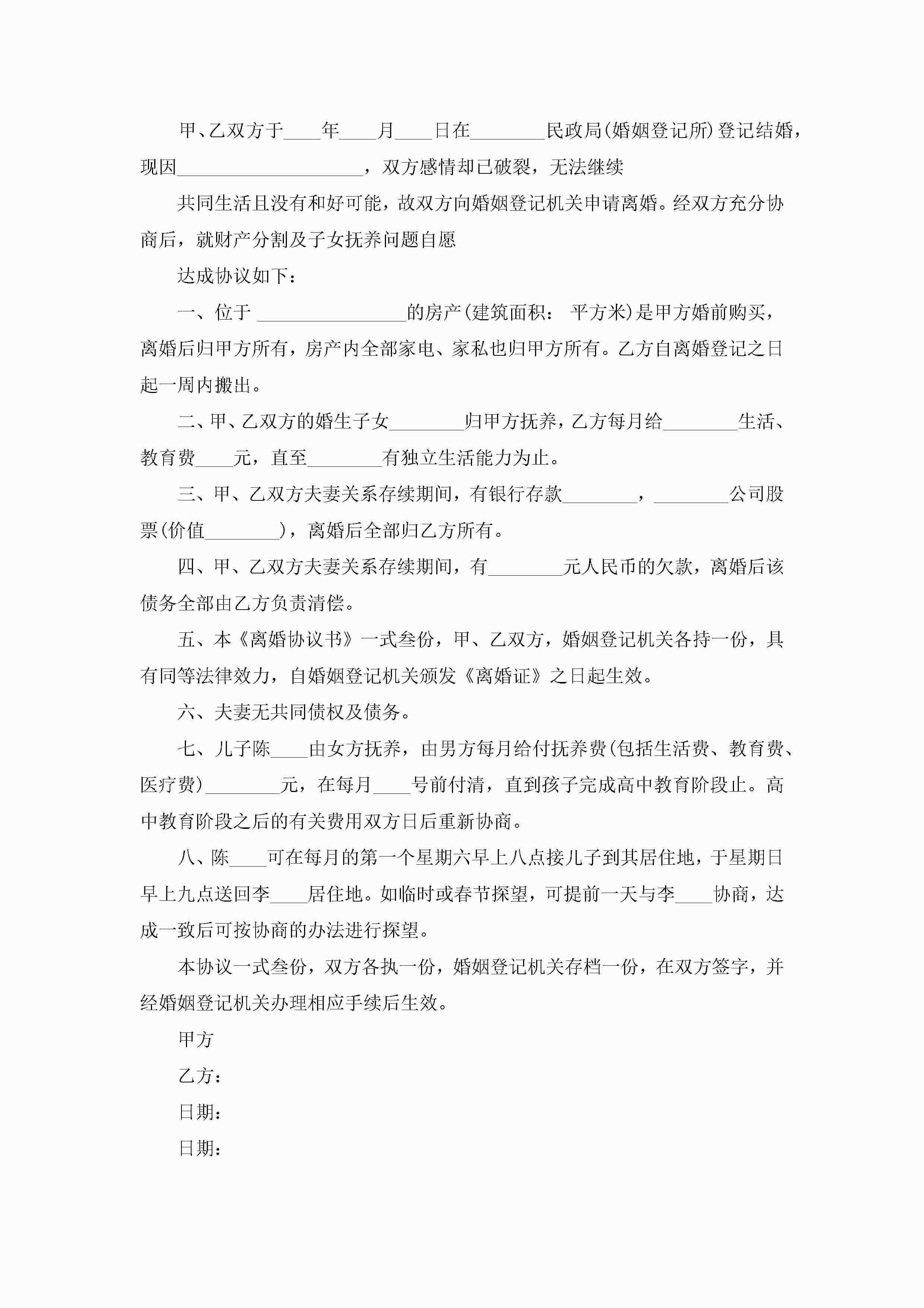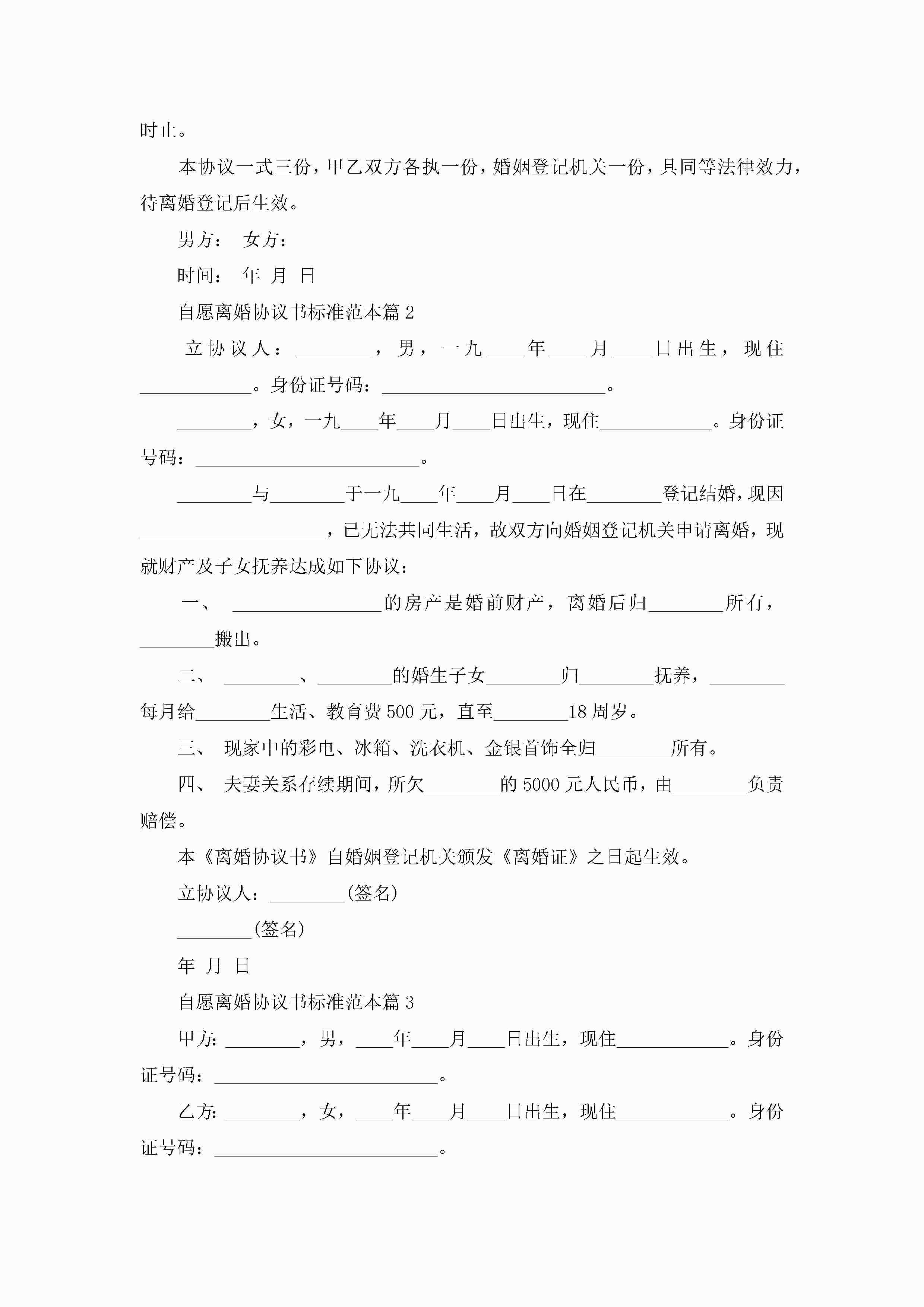 自愿离婚协议书标准范本(精选10篇)jugei3月22日 12:39更新关注195 自愿离婚协议书标准范本(精选10篇)此内容为付费资源,请付费后查看¥10.9 单篇文档限时特惠¥15个人会员开通企业会员开通立即下载无需登陆!可直接快捷下载单个模板付费资源© 版权声明THE ENDWord模板# 实用文档# 实用模板# 信函模板# 协议书 如有问题,可点击最底部“联系我们”联系客服 分享QQ空间微博QQ好友海报分享复制链接收藏