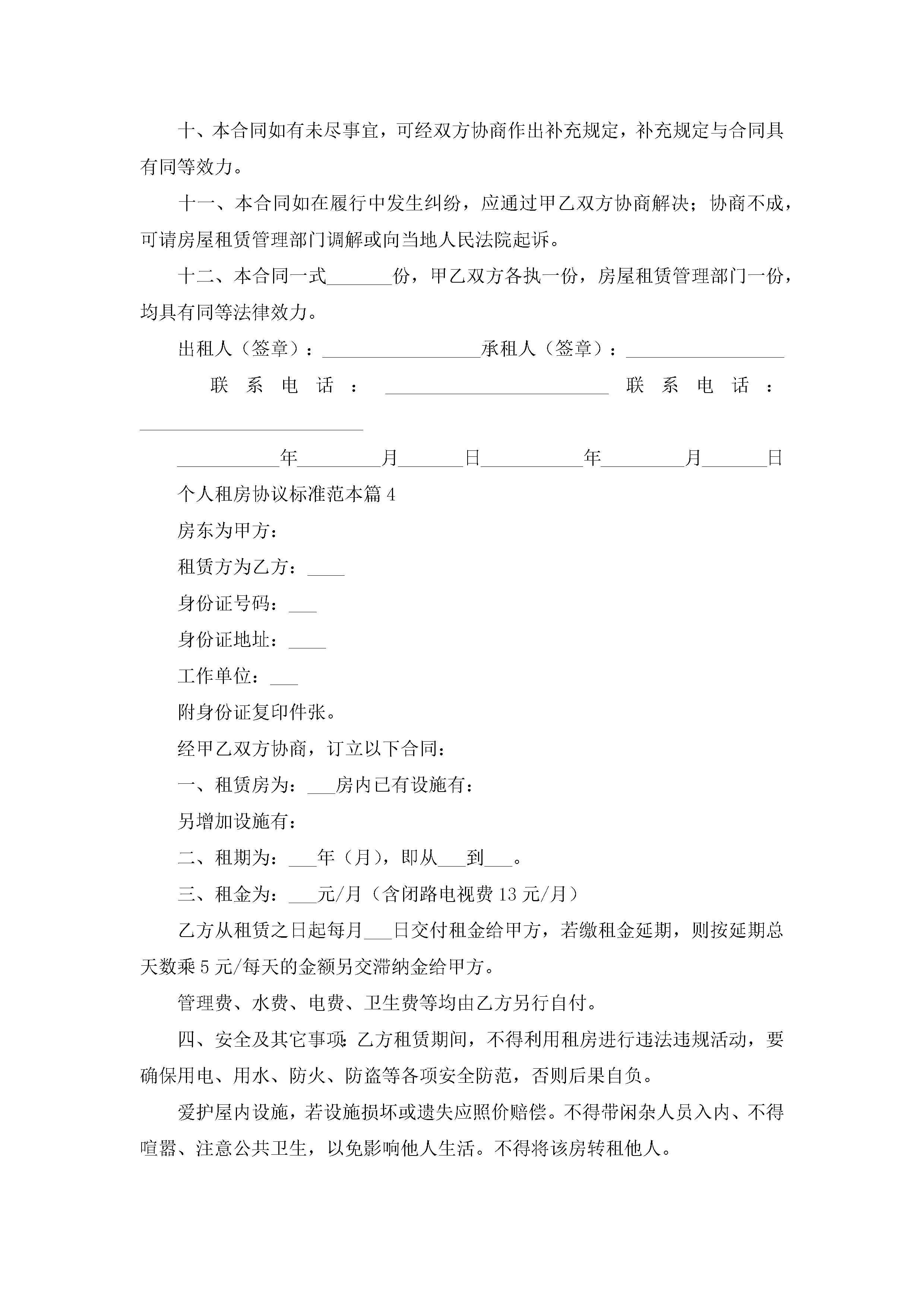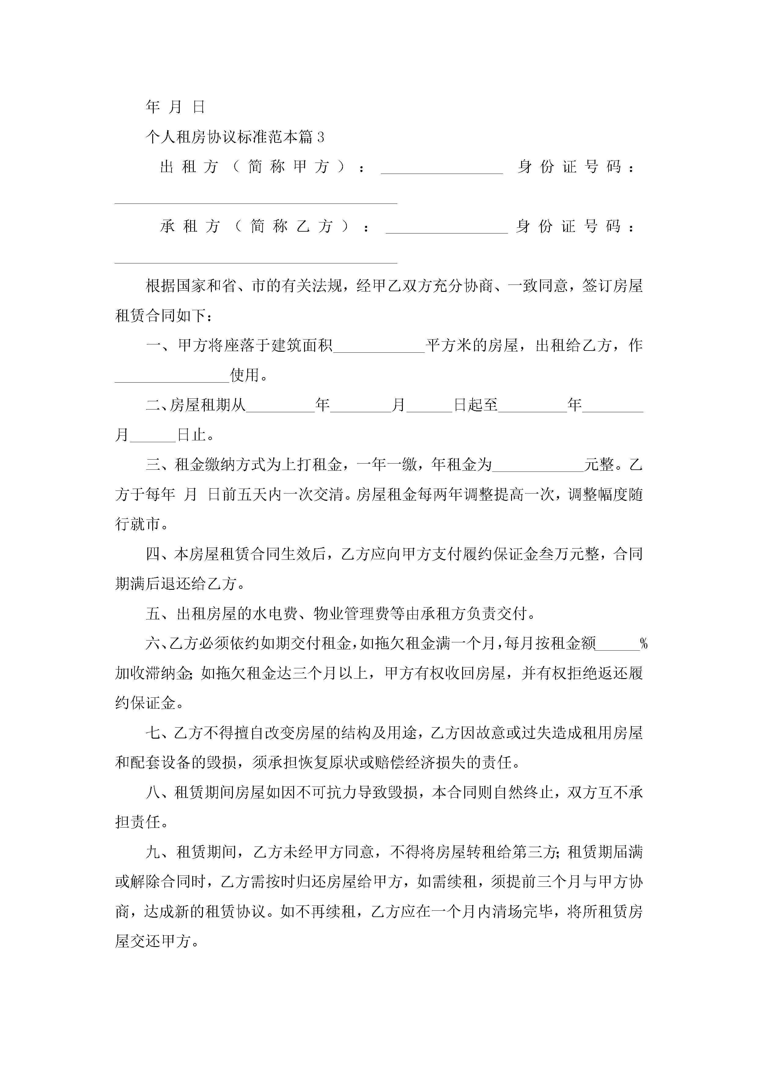 个人租房协议标准范本(精选10篇)jugei3月22日 12:39更新关注199 个人租房协议标准范本(精选10篇)此内容为付费资源,请付费后查看¥10.9 单篇文档限时特惠¥15个人会员开通企业会员开通立即下载无需登陆!可直接快捷下载单个模板付费资源© 版权声明THE ENDWord模板# 实用文档# 实用模板# 信函模板# 协议书 如有问题,可点击最底部“联系我们”联系客服 分享QQ空间微博QQ好友海报分享复制链接收藏