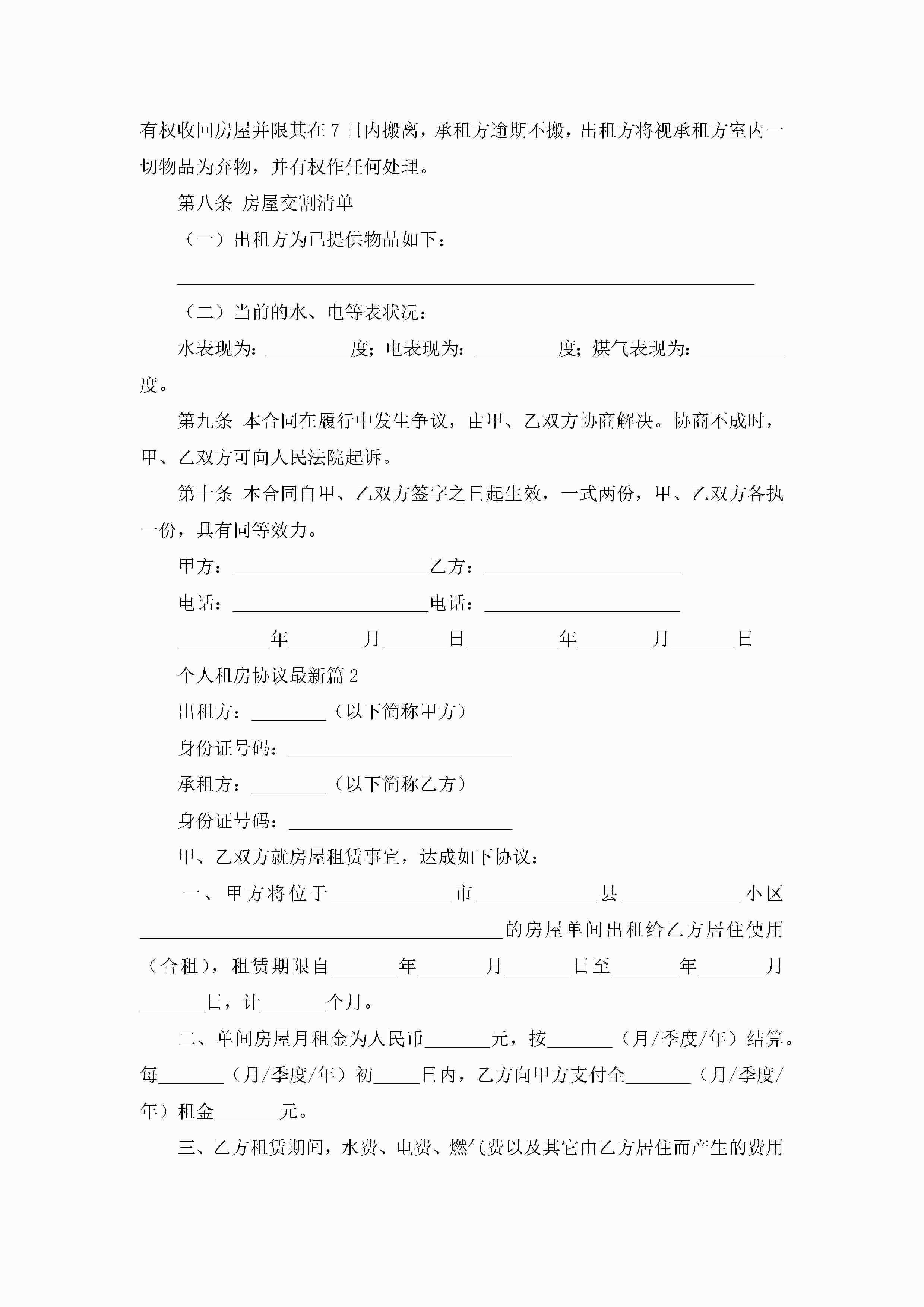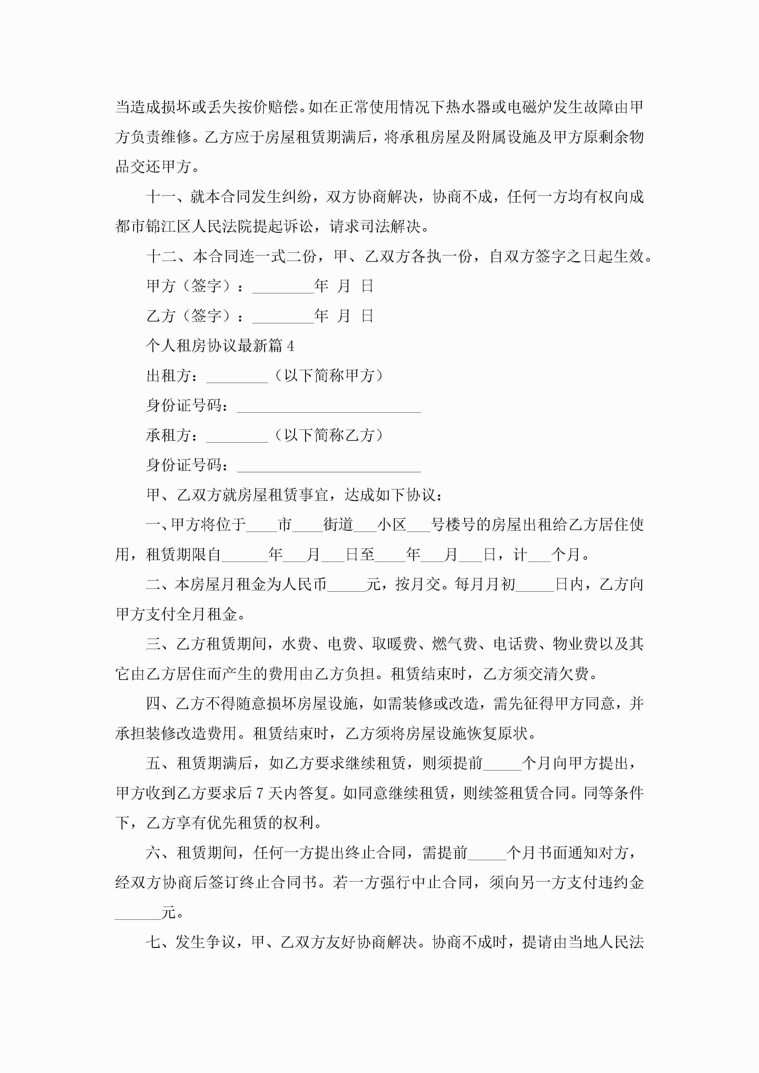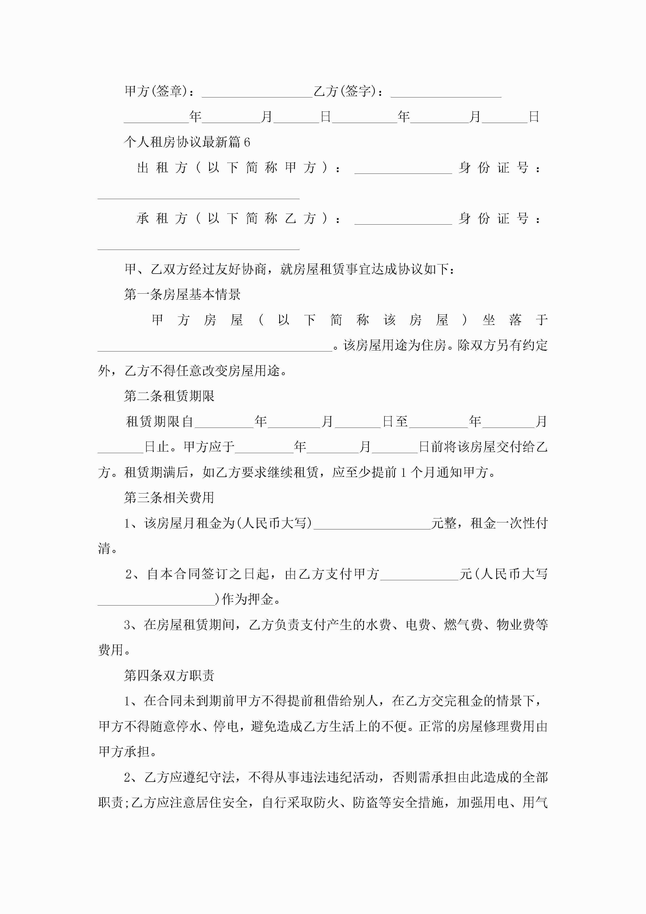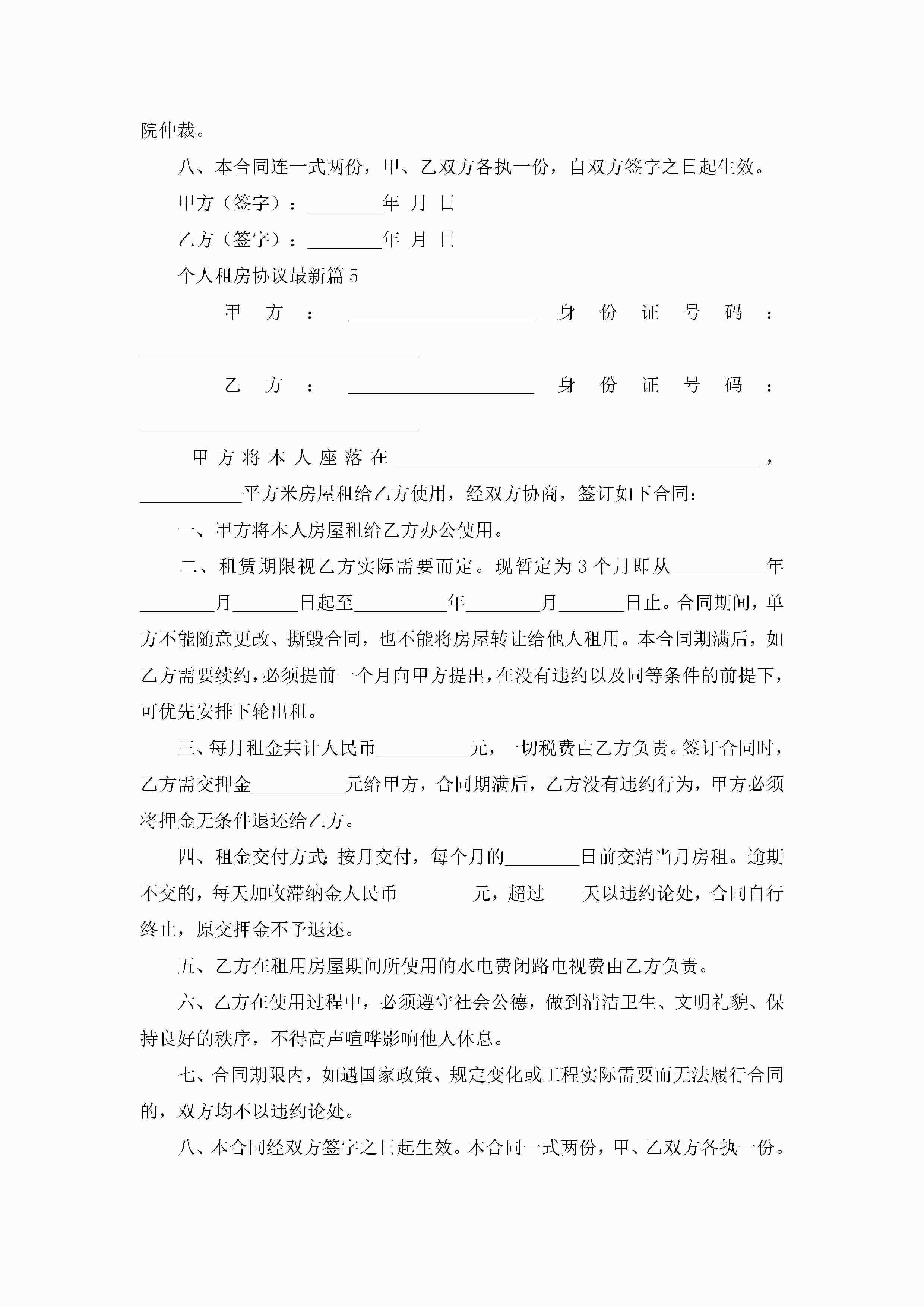 个人租房协议最新(精选10篇)jugei3月22日 12:39更新关注193 个人租房协议最新(精选10篇)此内容为付费资源,请付费后查看¥10.9 单篇文档限时特惠¥15个人会员开通企业会员开通立即下载无需登陆!可直接快捷下载单个模板付费资源© 版权声明THE ENDWord模板# 实用文档# 实用模板# 信函模板# 协议书 如有问题,可点击最底部“联系我们”联系客服 分享QQ空间微博QQ好友海报分享复制链接收藏
