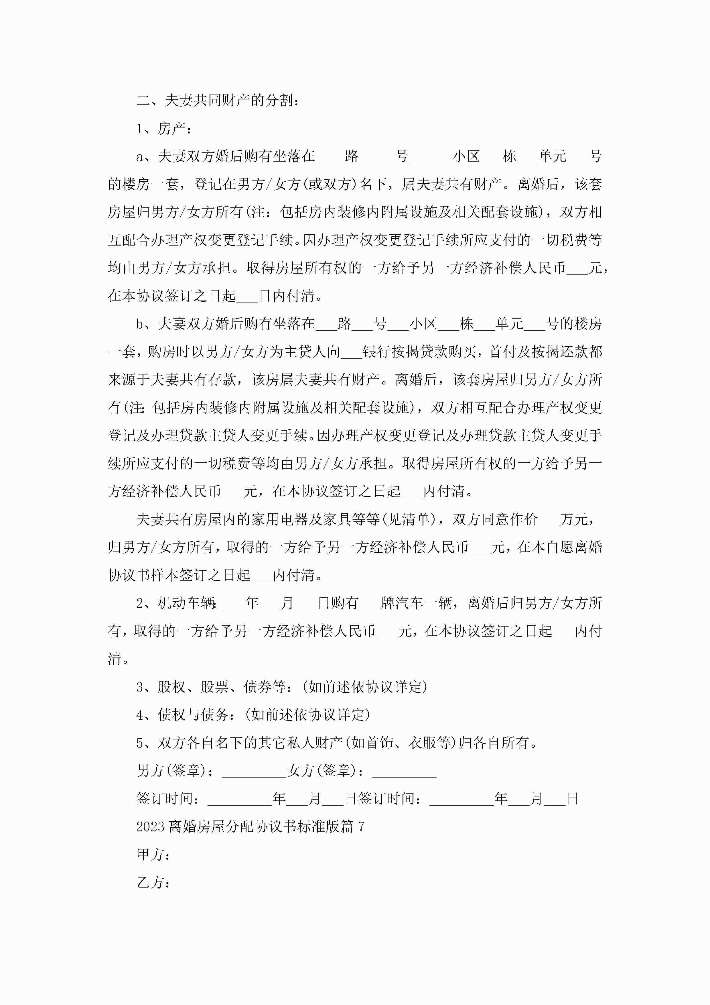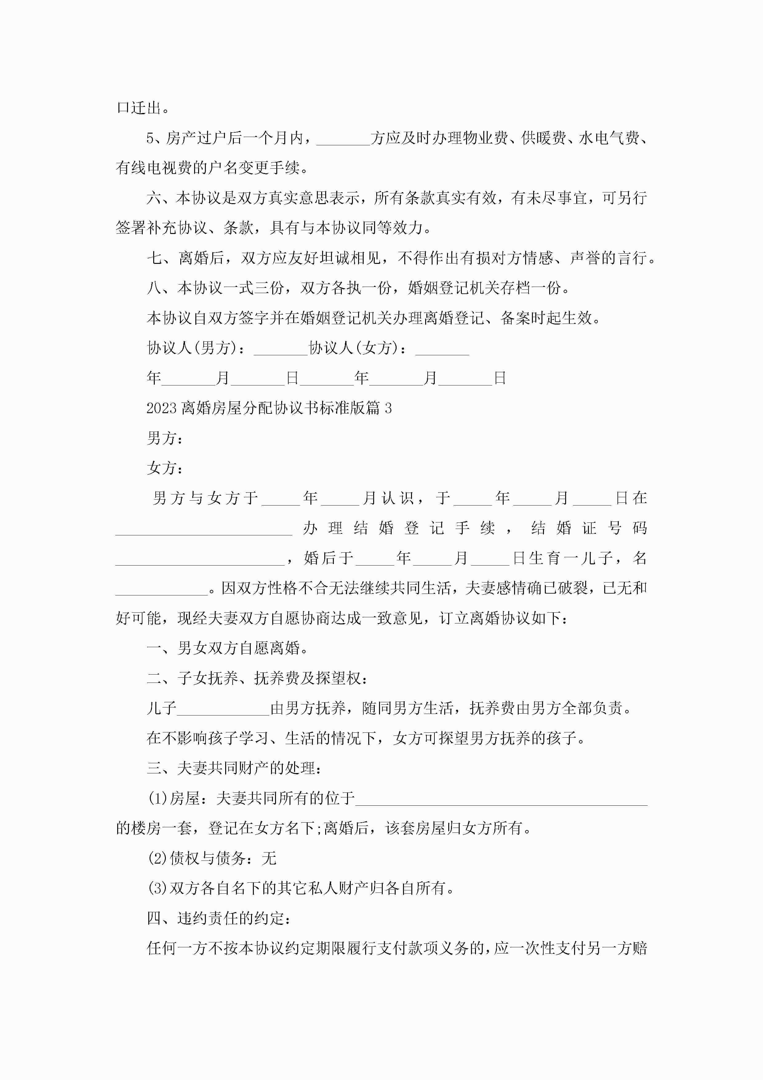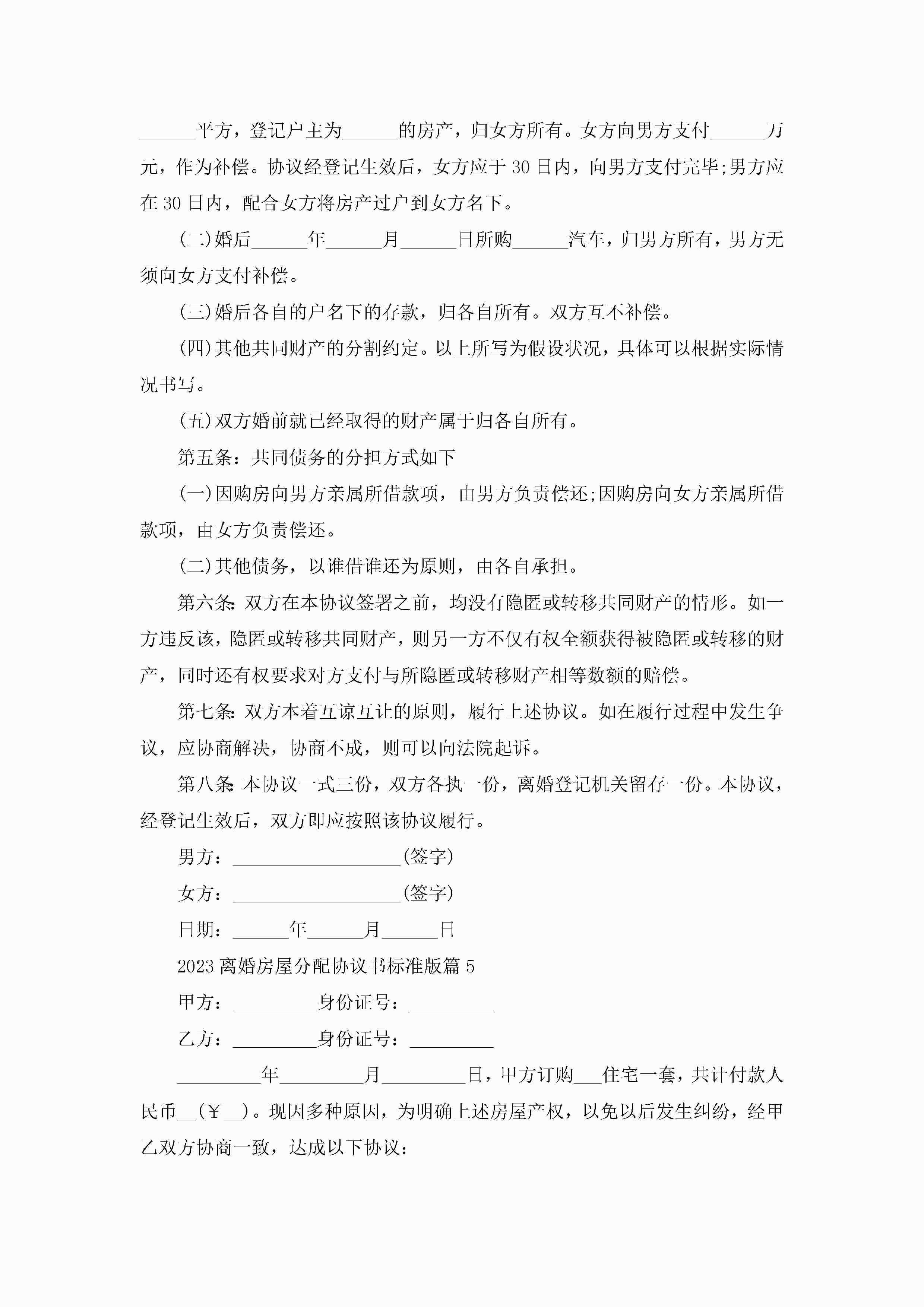 关于离婚房屋分配协议书标准版(10篇)jugei3月22日 12:39更新关注197 关于离婚房屋分配协议书标准版(10篇)此内容为付费资源,请付费后查看¥10.9 单篇文档限时特惠¥15个人会员开通企业会员开通立即下载无需登陆!可直接快捷下载单个模板付费资源© 版权声明THE ENDWord模板# 实用文档# 信函模板# 协议书# 2023离婚房屋分配协议书标准版(10篇) 如有问题,可点击最底部“联系我们”联系客服 分享QQ空间微博QQ好友海报分享复制链接收藏