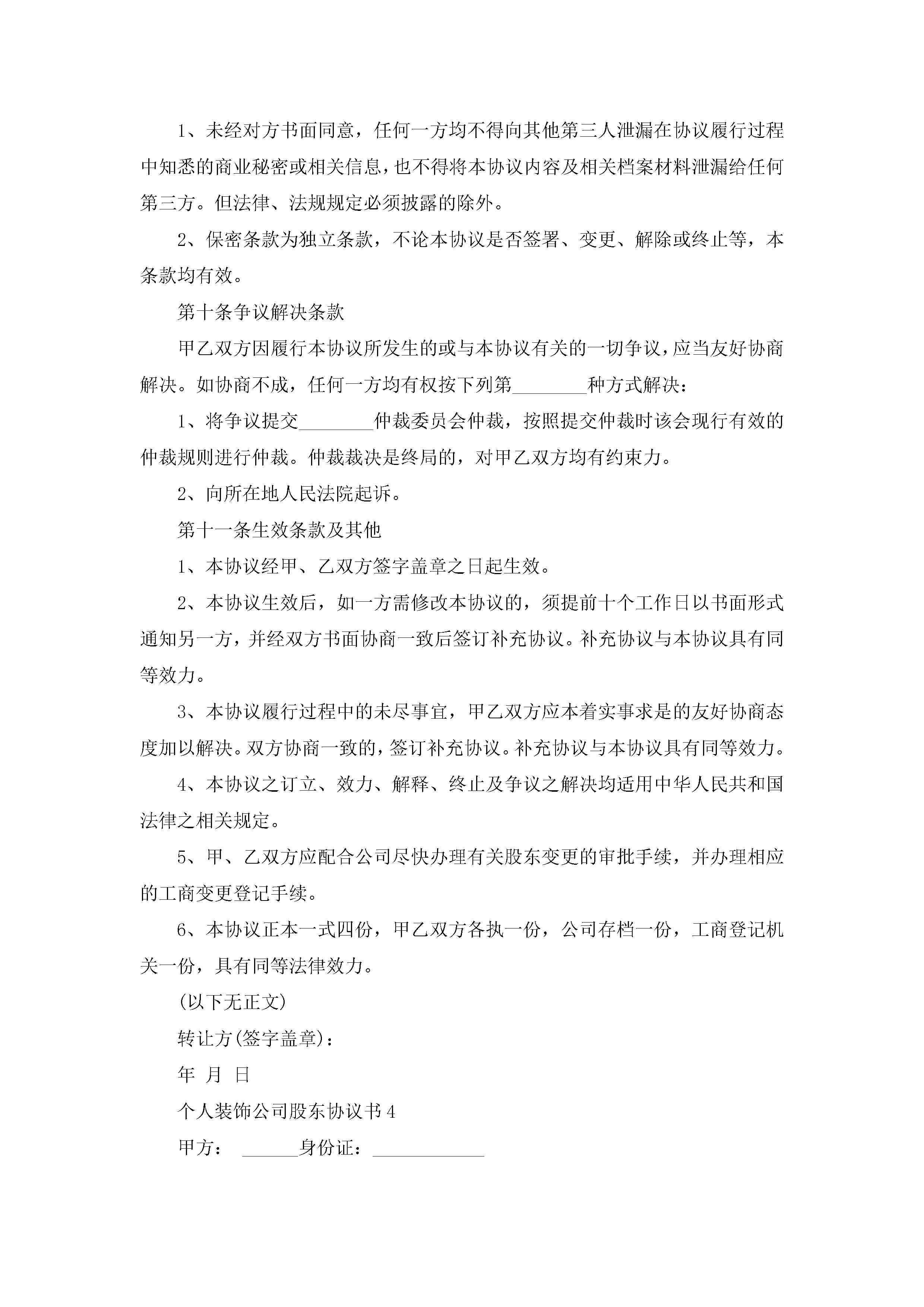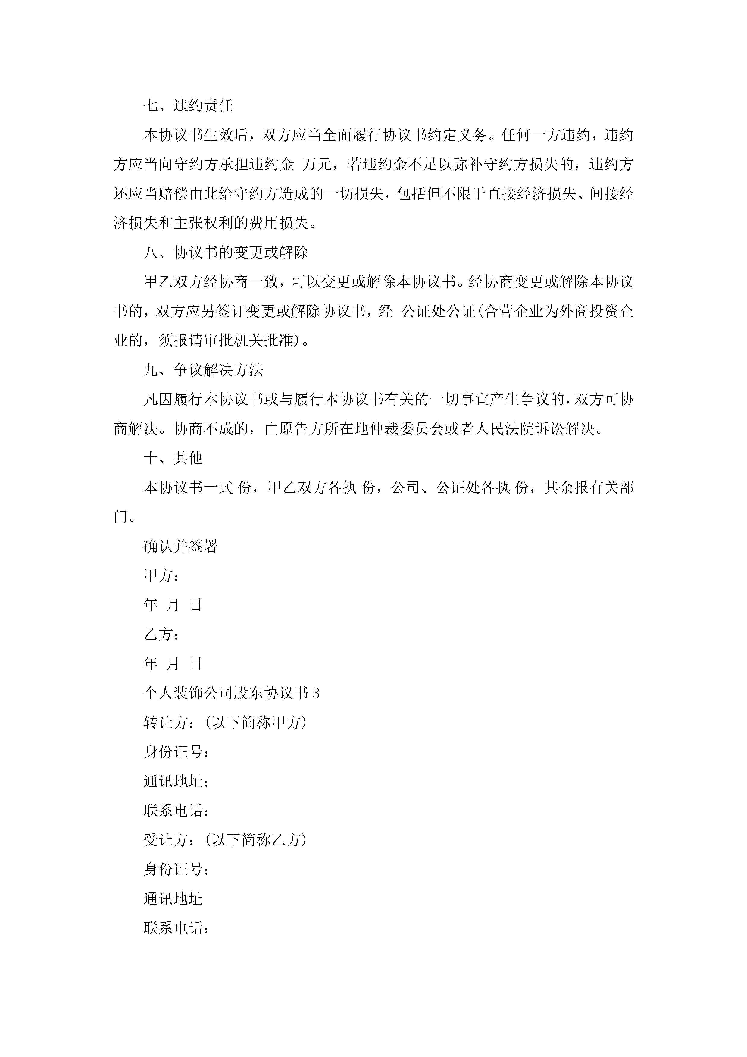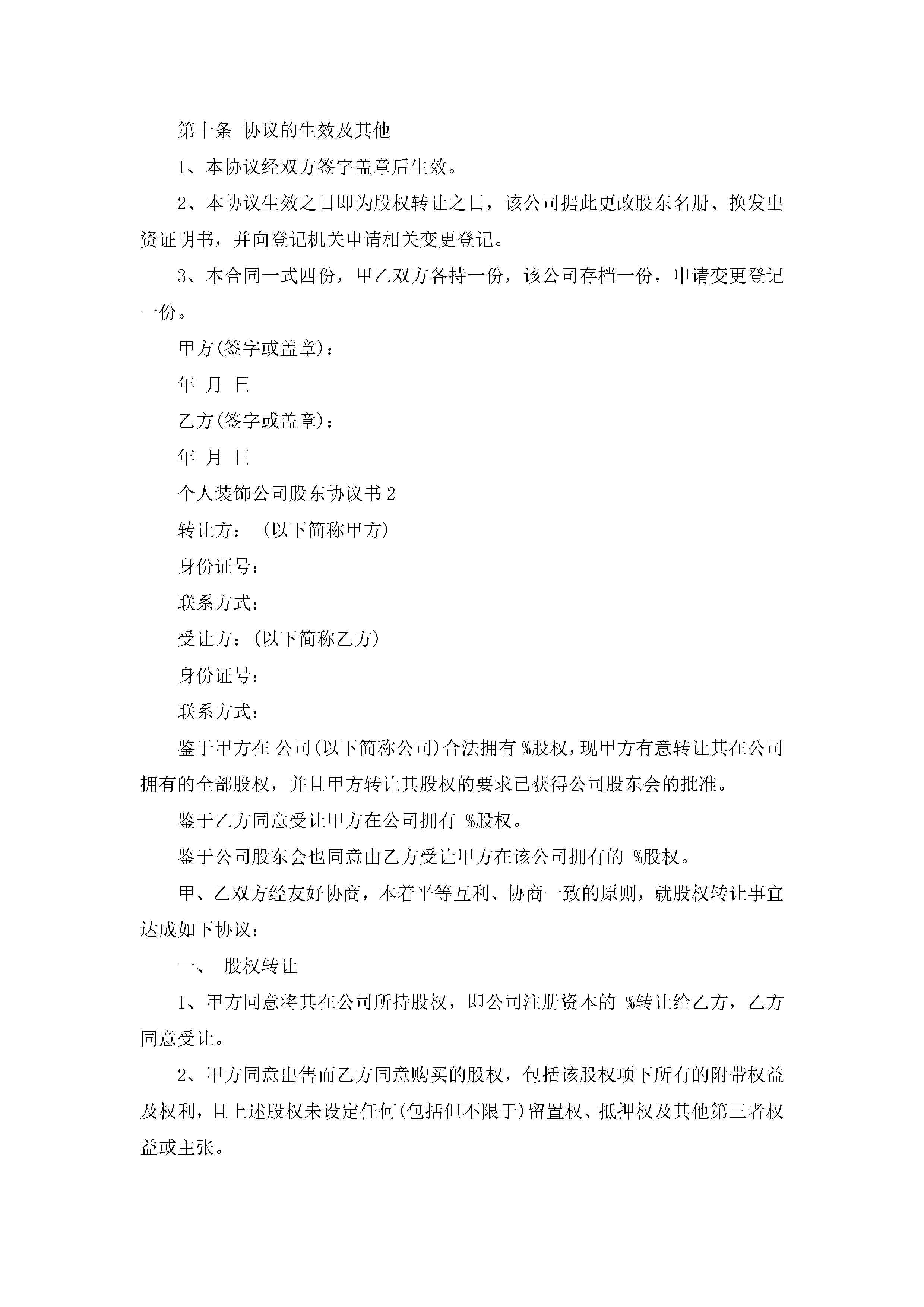 关于个人装饰公司股东协议书5篇jugei3月22日 12:39更新关注200 关于个人装饰公司股东协议书5篇此内容为付费资源,请付费后查看¥10.9 单篇文档限时特惠¥15个人会员开通企业会员开通立即下载无需登陆!可直接快捷下载单个模板付费资源© 版权声明THE ENDWord模板# 实用文档# 实用模板# 信函模板# 协议书 如有问题,可点击最底部“联系我们”联系客服 分享QQ空间微博QQ好友海报分享复制链接收藏