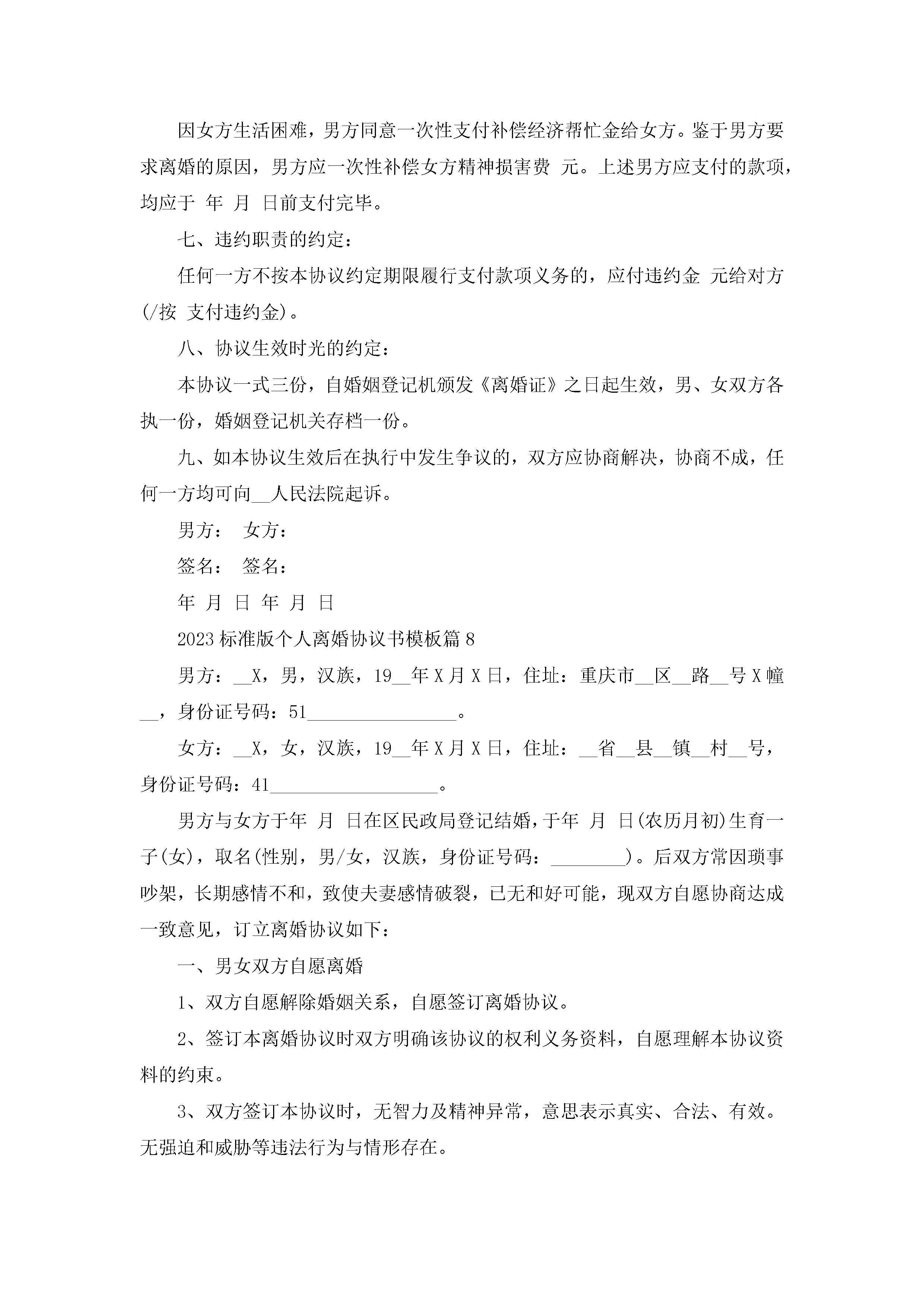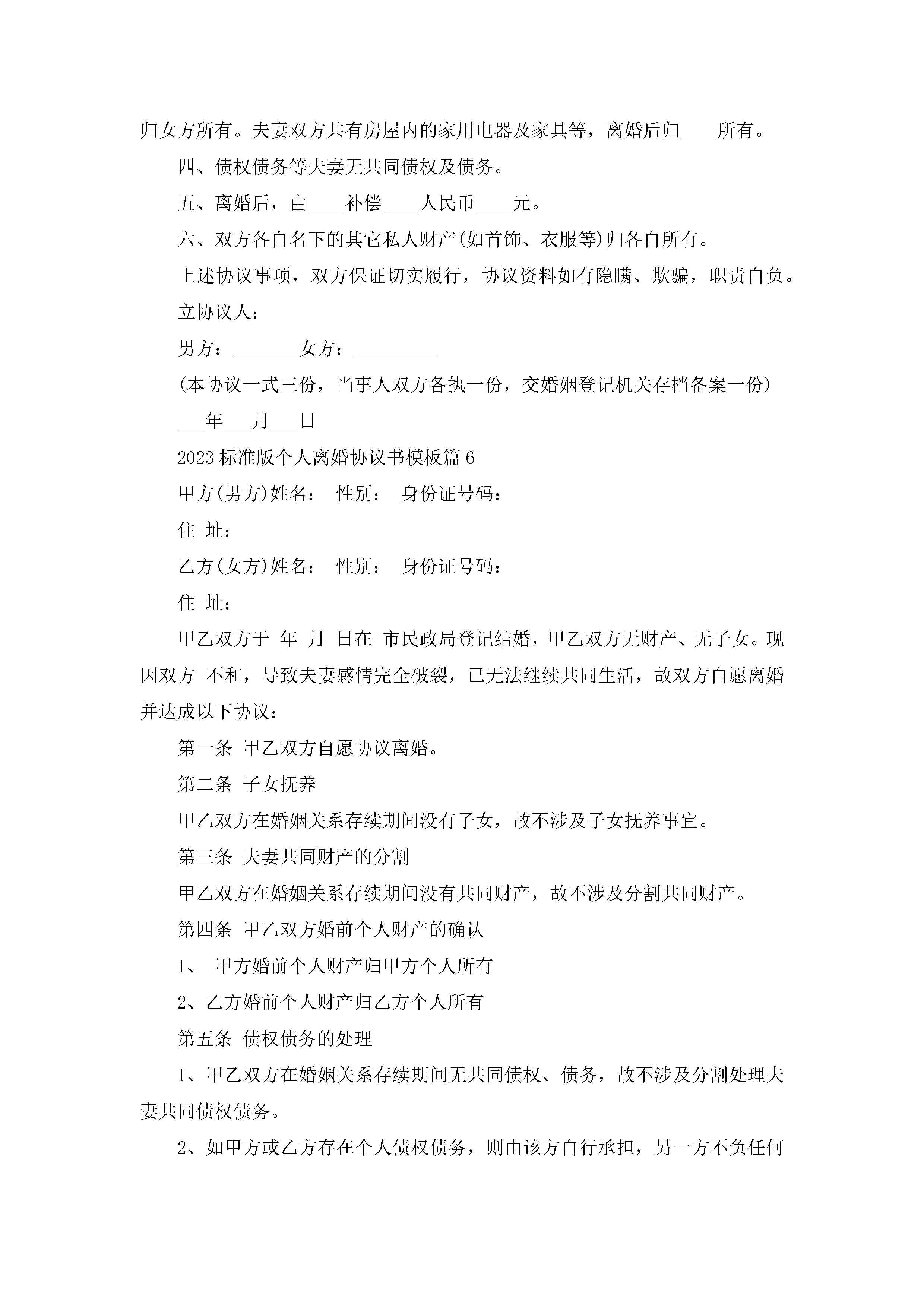 关于标准版个人离婚协议书模板(10篇)jugei3月22日 12:39更新关注199 关于标准版个人离婚协议书模板(10篇)此内容为付费资源,请付费后查看¥10.9 单篇文档限时特惠¥15个人会员开通企业会员开通立即下载无需登陆!可直接快捷下载单个模板付费资源© 版权声明THE ENDWord模板# 实用文档# 信函模板# 协议书# 2023标准版个人离婚协议书模板(10篇) 如有问题,可点击最底部“联系我们”联系客服 分享QQ空间微博QQ好友海报分享复制链接收藏