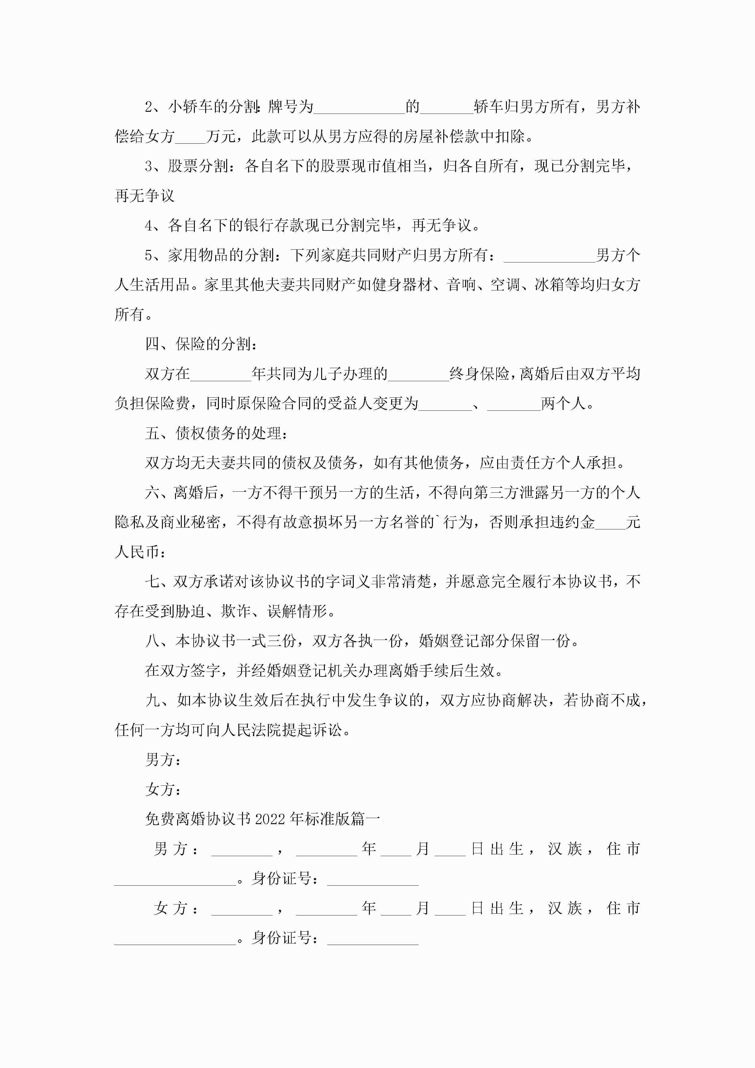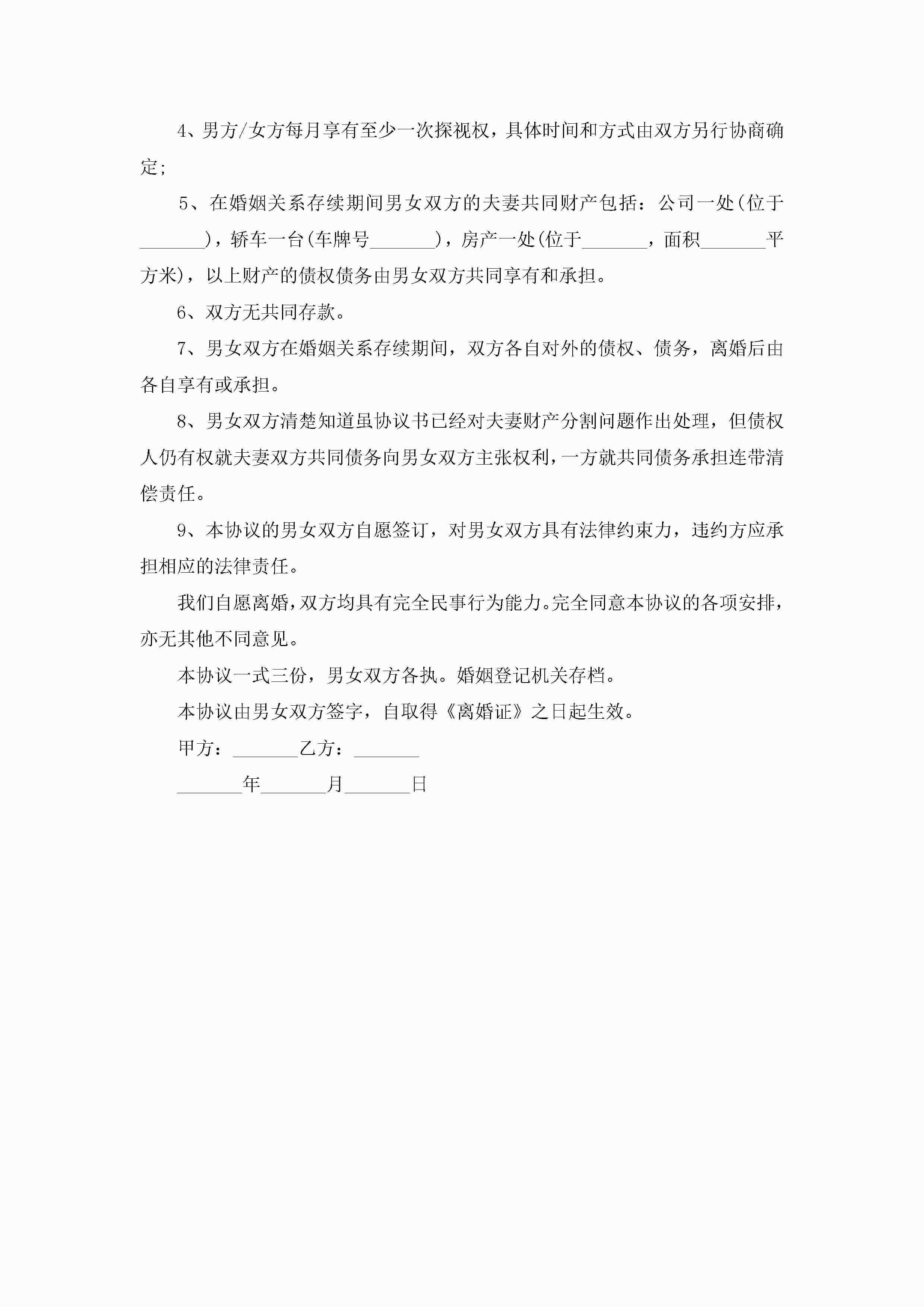 离婚协议书标准版范文(5篇)jugei3月22日 12:39更新关注208 离婚协议书标准版范文(5篇)此内容为付费资源,请付费后查看¥10.9 单篇文档限时特惠¥15个人会员开通企业会员开通立即下载无需登陆!可直接快捷下载单个模板付费资源© 版权声明THE ENDWord模板# 实用文档# 实用模板# 信函模板# 协议书# 离婚协议书2023标准版范文5篇 如有问题,可点击最底部“联系我们”联系客服 分享QQ空间微博QQ好友海报分享复制链接收藏