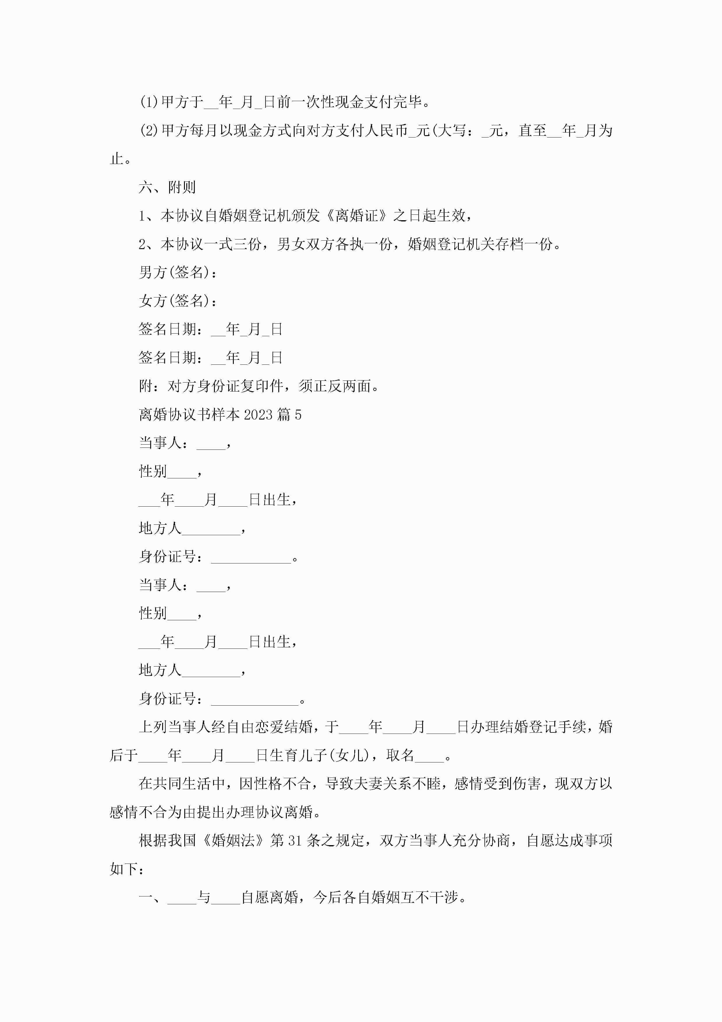 离婚协议书样本(精选14篇)jugei3月22日 12:39更新关注209 离婚协议书样本(精选14篇)此内容为付费资源,请付费后查看¥10.9 单篇文档限时特惠¥15个人会员开通企业会员开通立即下载无需登陆!可直接快捷下载单个模板付费资源© 版权声明THE ENDWord模板# 实用文档# 实用模板# 信函模板# 协议书# 离婚协议书样本2023(14篇) 如有问题,可点击最底部“联系我们”联系客服 分享QQ空间微博QQ好友海报分享复制链接收藏