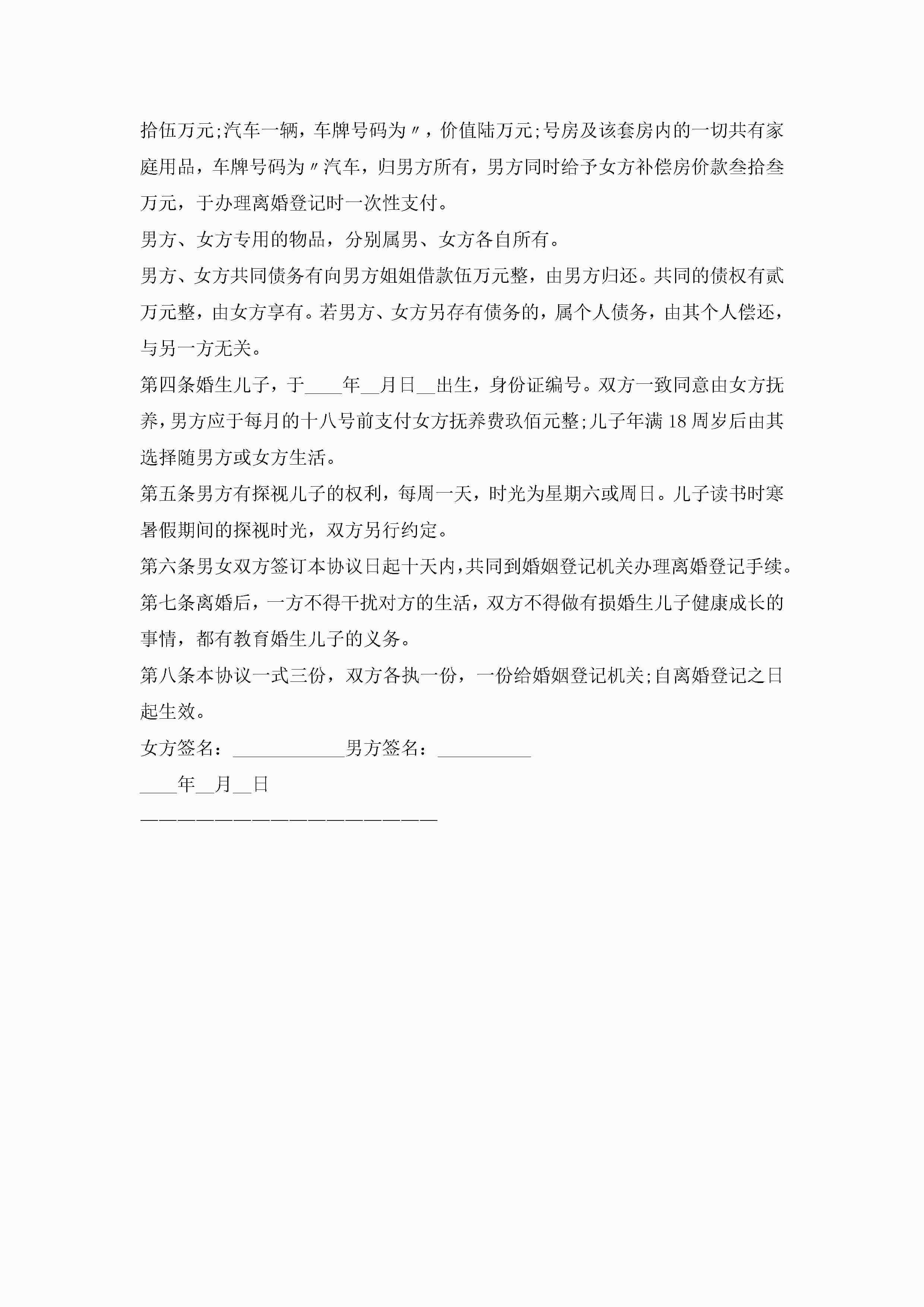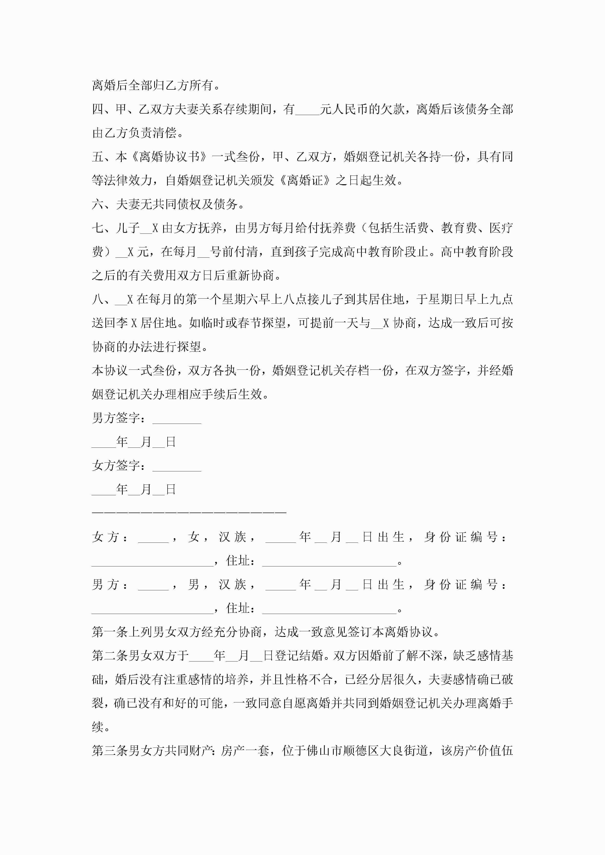分居夫妻离婚协议书7篇jugei3月22日 12:39更新关注199 分居夫妻离婚协议书7篇此内容为付费资源,请付费后查看¥10.9 单篇文档限时特惠¥15个人会员开通企业会员开通立即下载无需登陆!可直接快捷下载单个模板付费资源© 版权声明THE ENDWord模板# 实用文档# 实用模板# 信函模板# 协议书 如有问题,可点击最底部“联系我们”联系客服 分享QQ空间微博QQ好友海报分享复制链接收藏