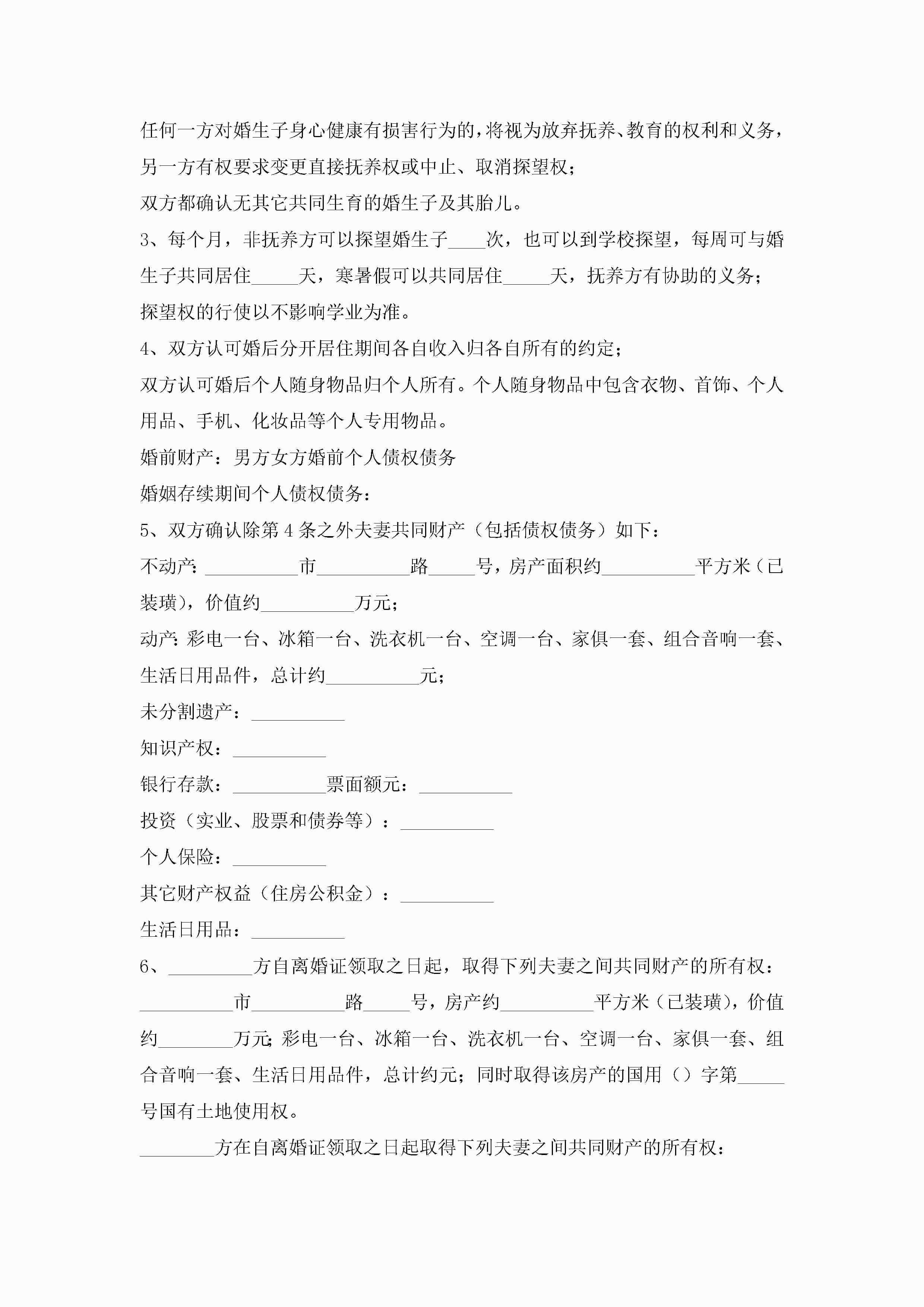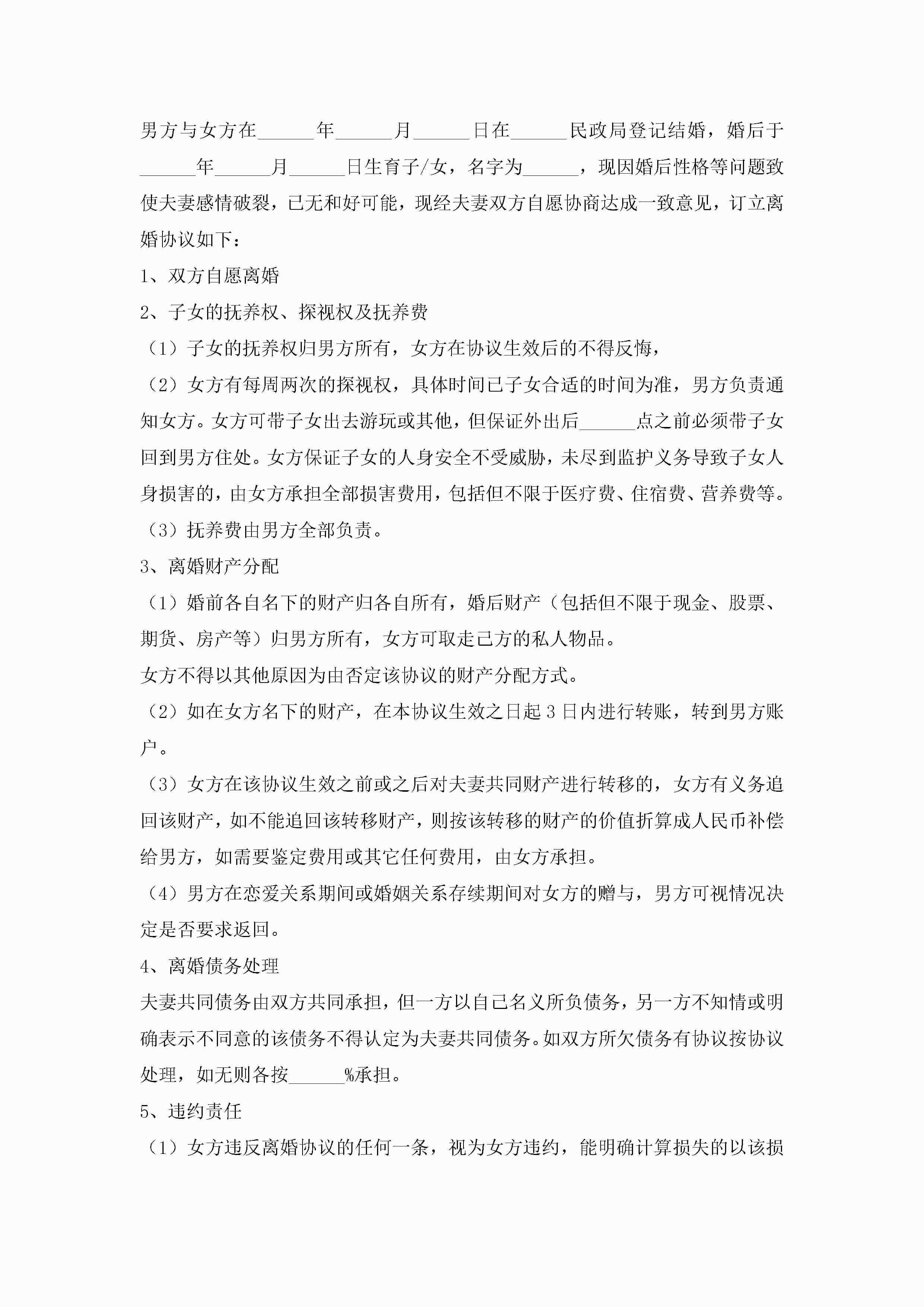 有孩子的离婚协议书7篇jugei3月22日 12:39更新关注198 有孩子的离婚协议书7篇此内容为付费资源,请付费后查看¥10.9 单篇文档限时特惠¥15个人会员开通企业会员开通立即下载无需登陆!可直接快捷下载单个模板付费资源© 版权声明THE ENDWord模板# 实用文档# 实用模板# 信函模板# 协议书 如有问题,可点击最底部“联系我们”联系客服 分享QQ空间微博QQ好友海报分享复制链接收藏