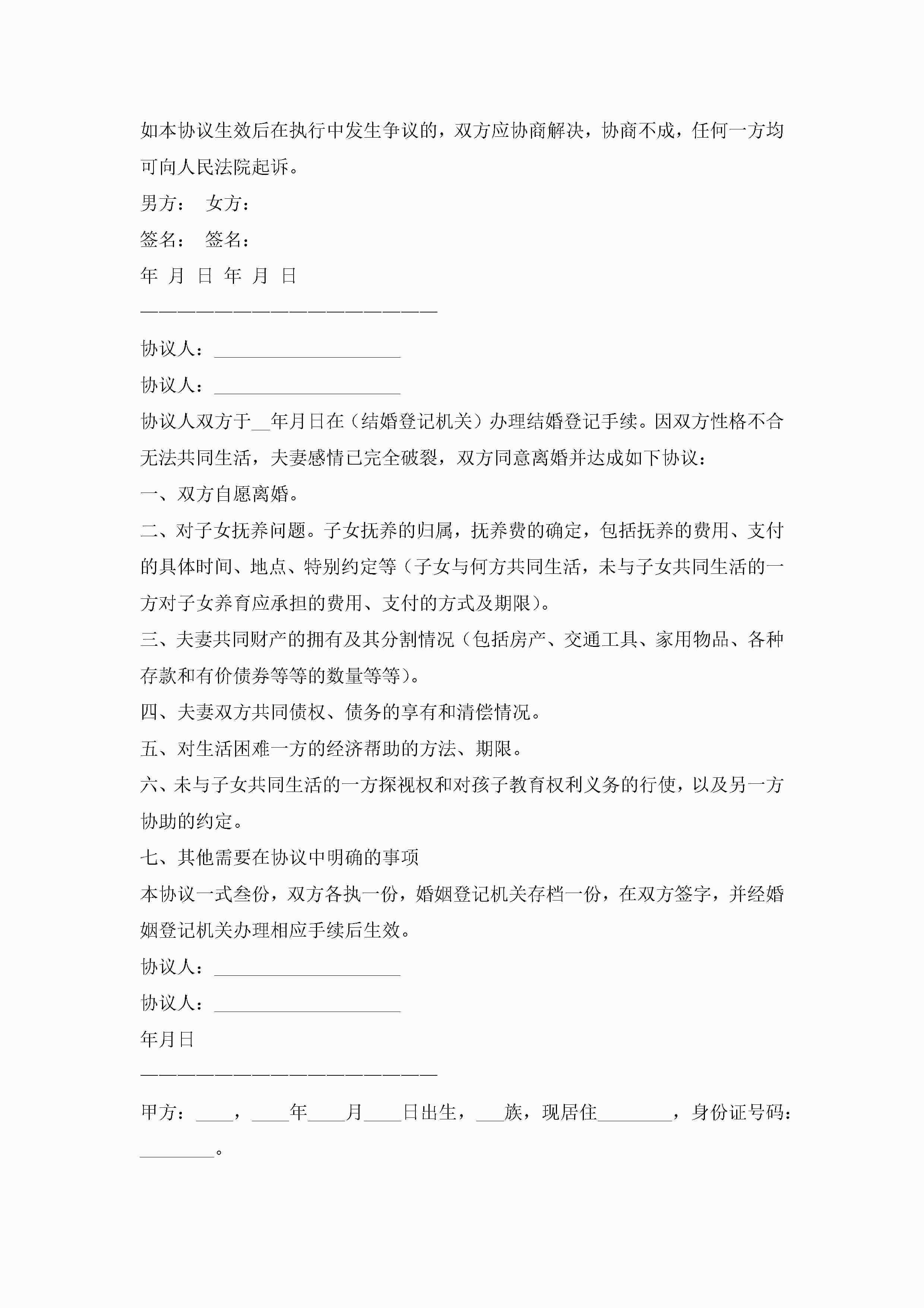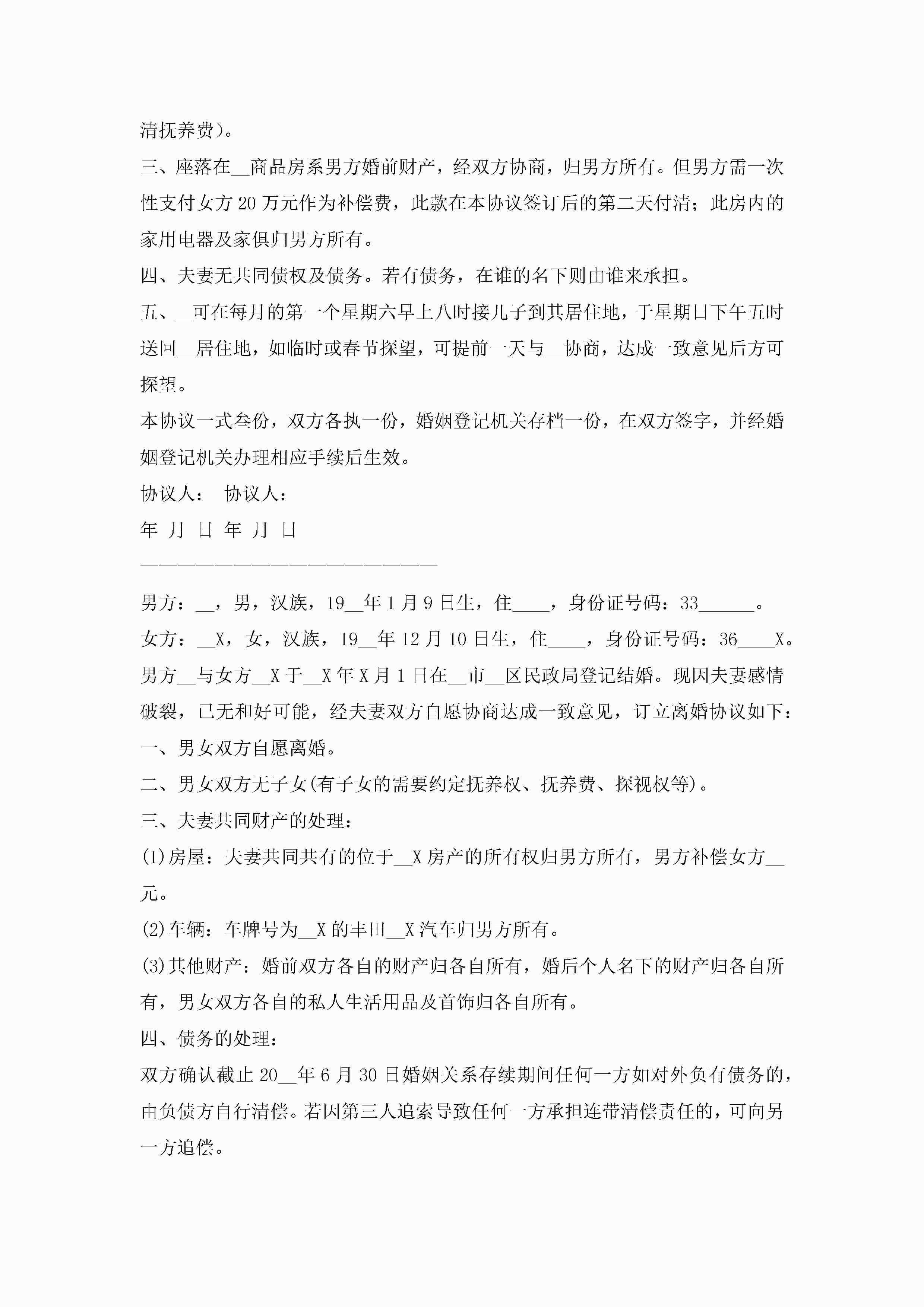 离婚协议书范本最新版【精选10篇】jugei3月22日 12:39更新关注189 离婚协议书范本最新版【精选10篇】此内容为付费资源,请付费后查看¥10.9 单篇文档限时特惠¥15个人会员开通企业会员开通立即下载无需登陆!可直接快捷下载单个模板付费资源© 版权声明THE ENDWord模板# 实用文档# 实用模板# 信函模板# 协议书 如有问题,可点击最底部“联系我们”联系客服 分享QQ空间微博QQ好友海报分享复制链接收藏