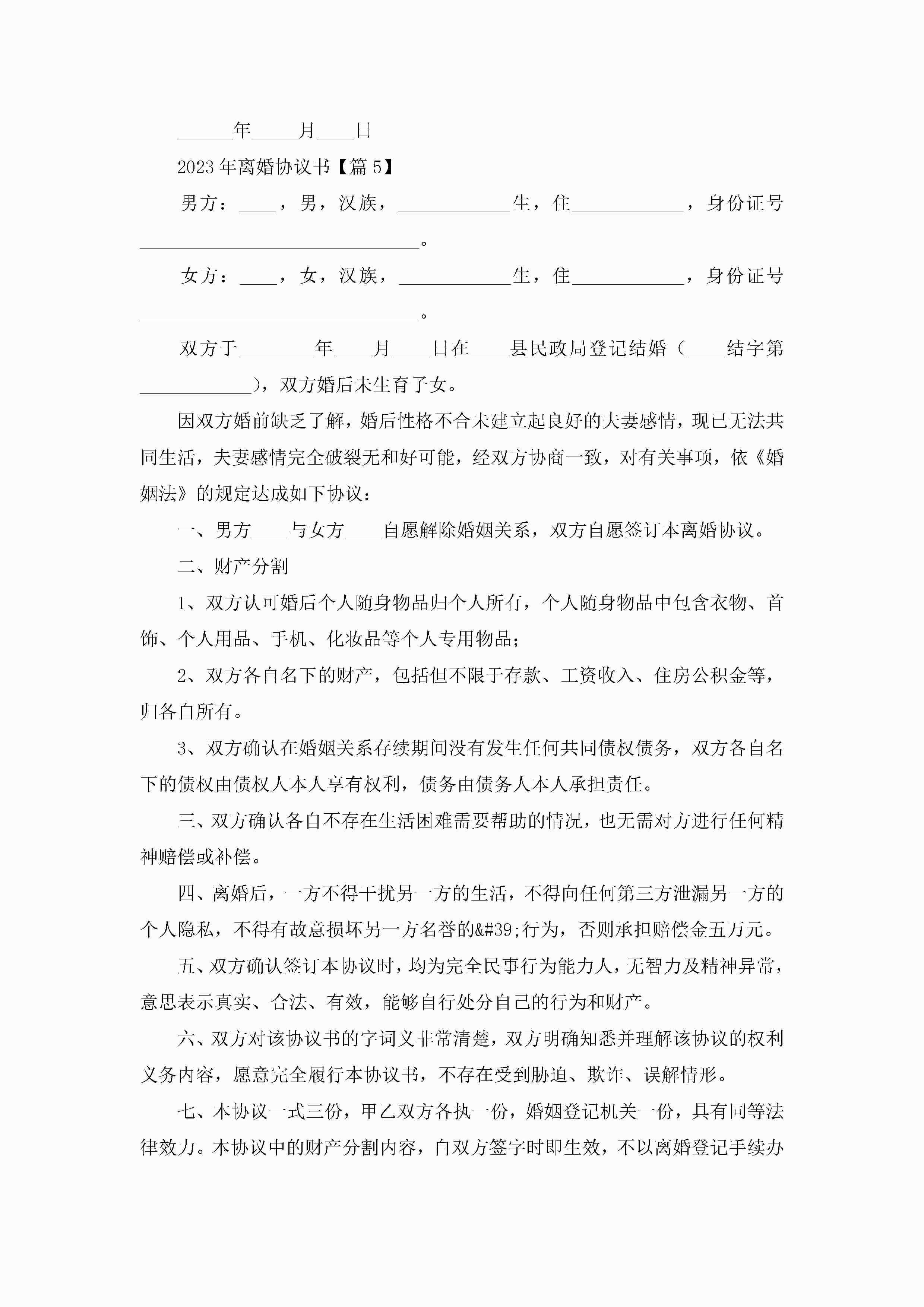 年离婚协议书(最新版)jugei3月22日 12:39更新关注206 年离婚协议书(最新版)此内容为付费资源,请付费后查看¥10.9 单篇文档限时特惠¥15个人会员开通企业会员开通立即下载无需登陆!可直接快捷下载单个模板付费资源© 版权声明THE ENDWord模板# 实用文档# 实用模板# 信函模板# 协议书 如有问题,可点击最底部“联系我们”联系客服 分享QQ空间微博QQ好友海报分享复制链接收藏