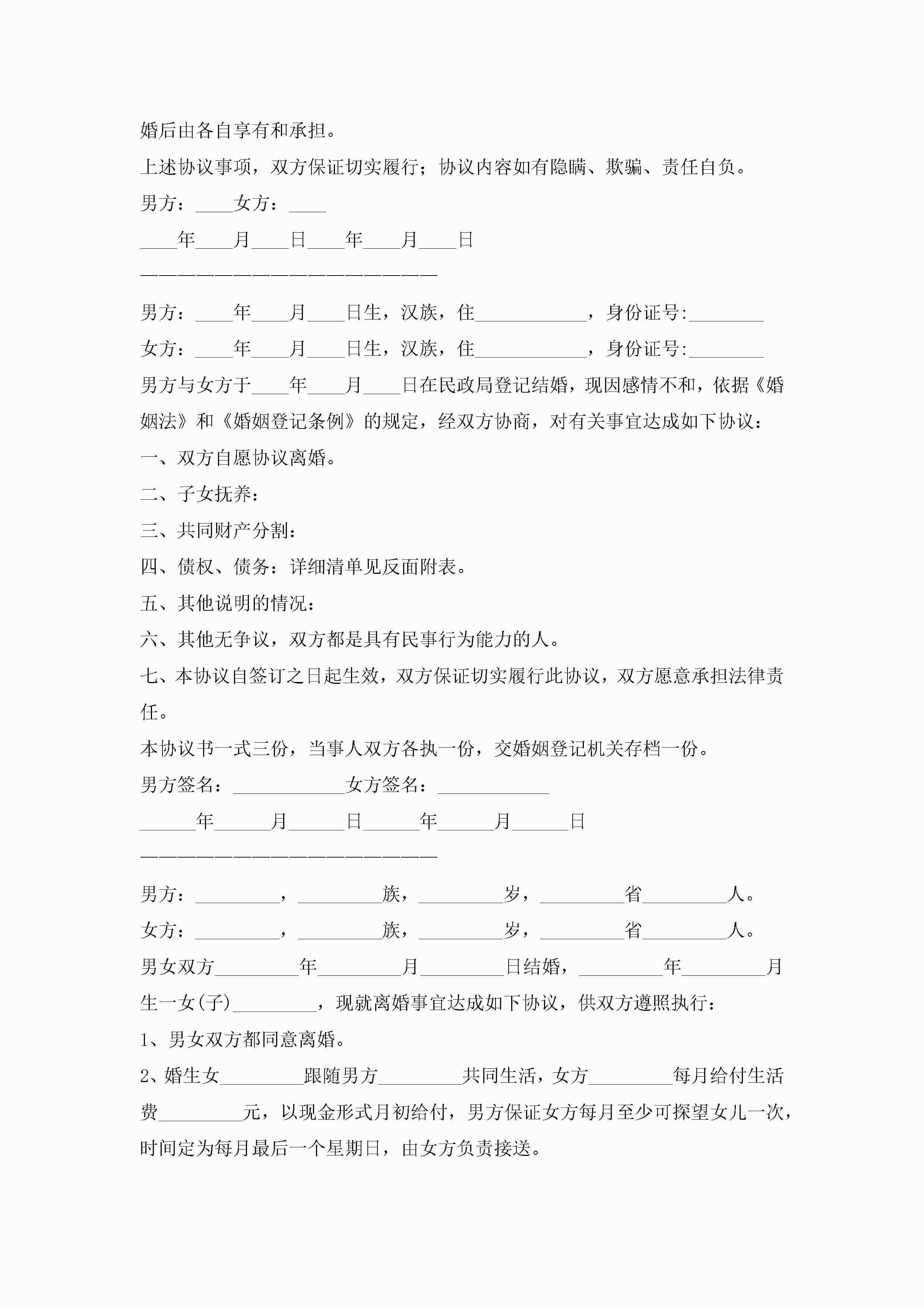 婚姻离婚协议书范本7篇jugei3月22日 12:39更新关注243 婚姻离婚协议书范本7篇此内容为付费资源,请付费后查看¥10.9 单篇文档限时特惠¥15个人会员开通企业会员开通立即下载无需登陆!可直接快捷下载单个模板付费资源© 版权声明THE ENDWord模板# 实用文档# 实用模板# 信函模板# 协议书 如有问题,可点击最底部“联系我们”联系客服 分享QQ空间微博QQ好友海报分享复制链接收藏